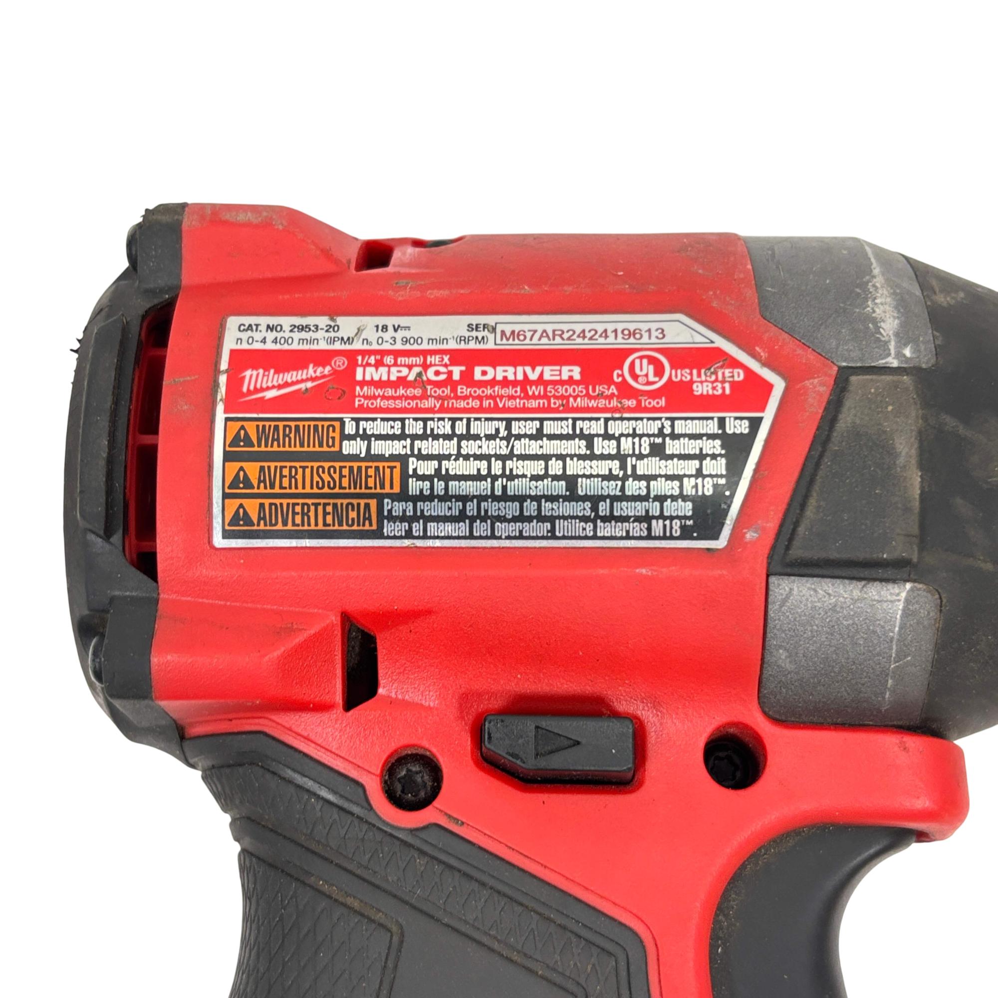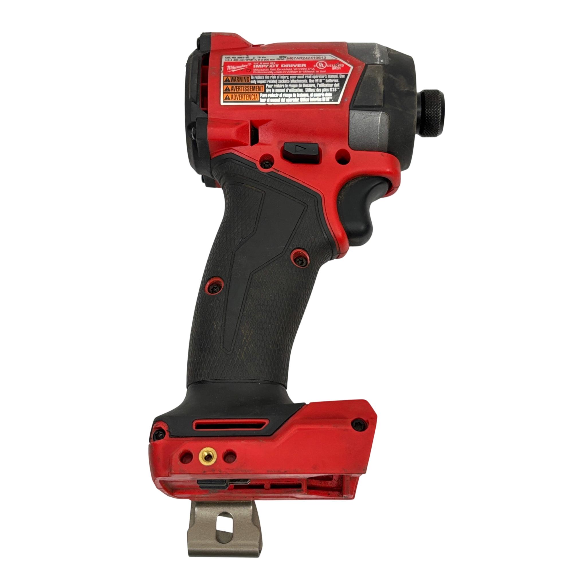 Milwaukee M18 FUEL 2953-20 1/4" Hex Impact Driver is a high-performance power tool designed for heavy-duty fastening applications. Featuring a brushless motor and a compact, lightweight design, it delivers impressive torque and speed for increased efficiency on the job. This cordless impact driver offers durable construction and advanced technology for reliable operation in demanding work environments.