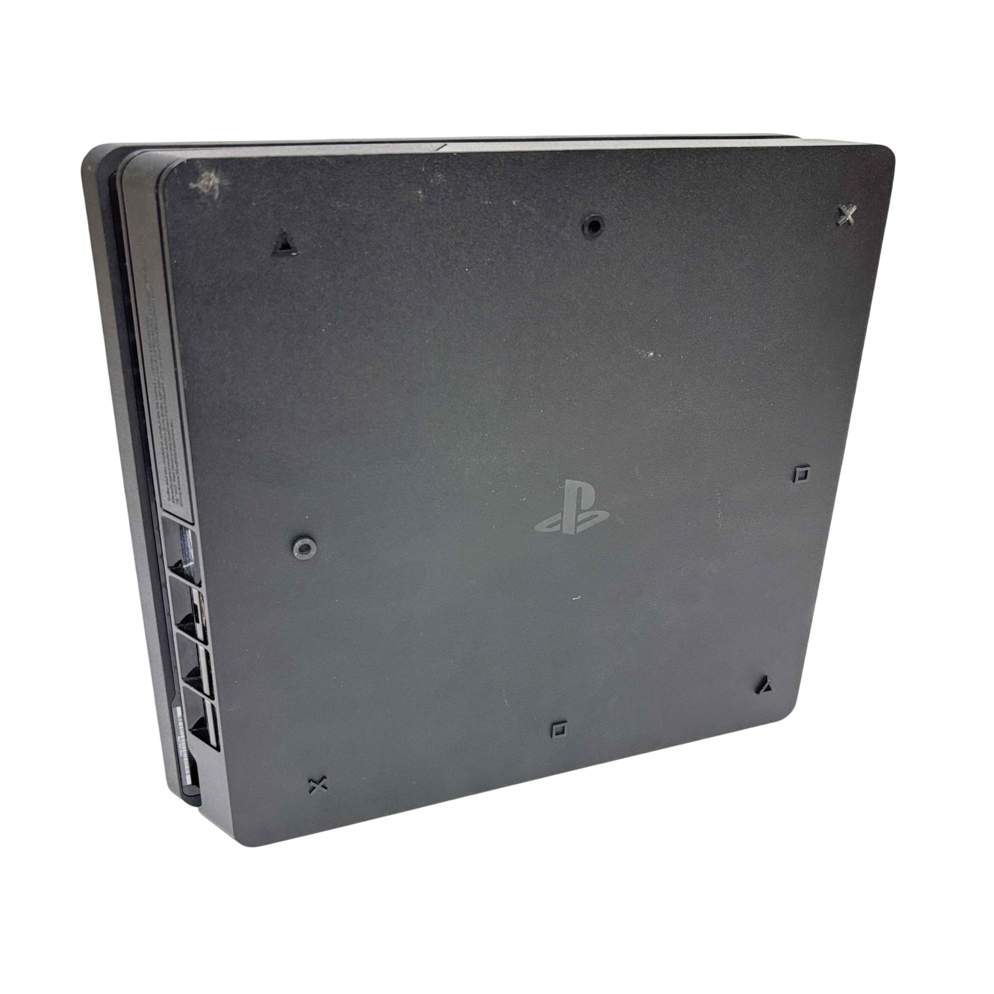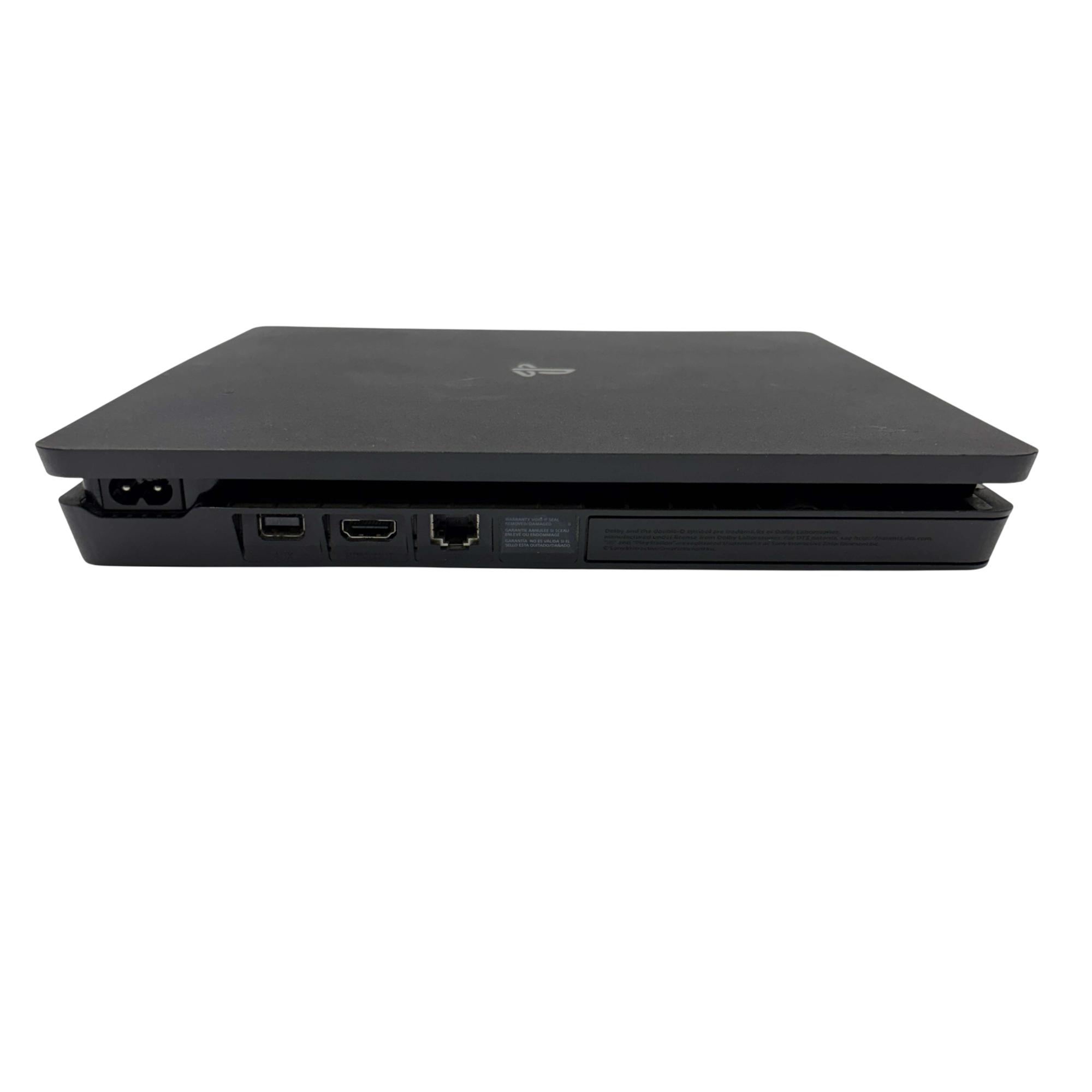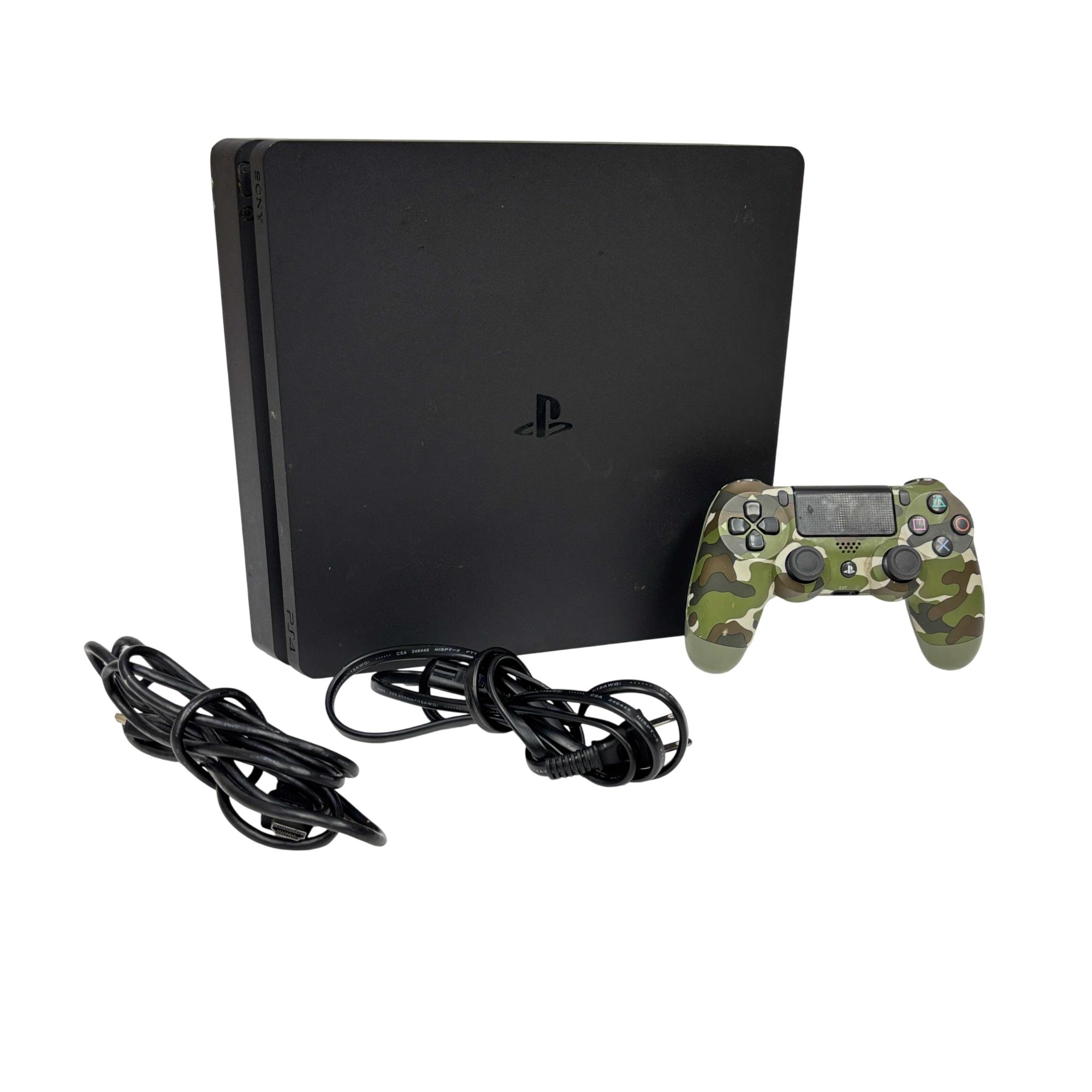 Sony PlayStation 4 Slim CUH-2115B 1TB Console with Camo DualShock 4 Controller offers a sleek and compact design featuring a powerful 1TB hard drive for extensive game storage. This black rectangular video game console delivers smooth gameplay and immersive graphics, complemented by a camouflage-patterned controller that provides precise and comfortable control for an enhanced gaming experience.