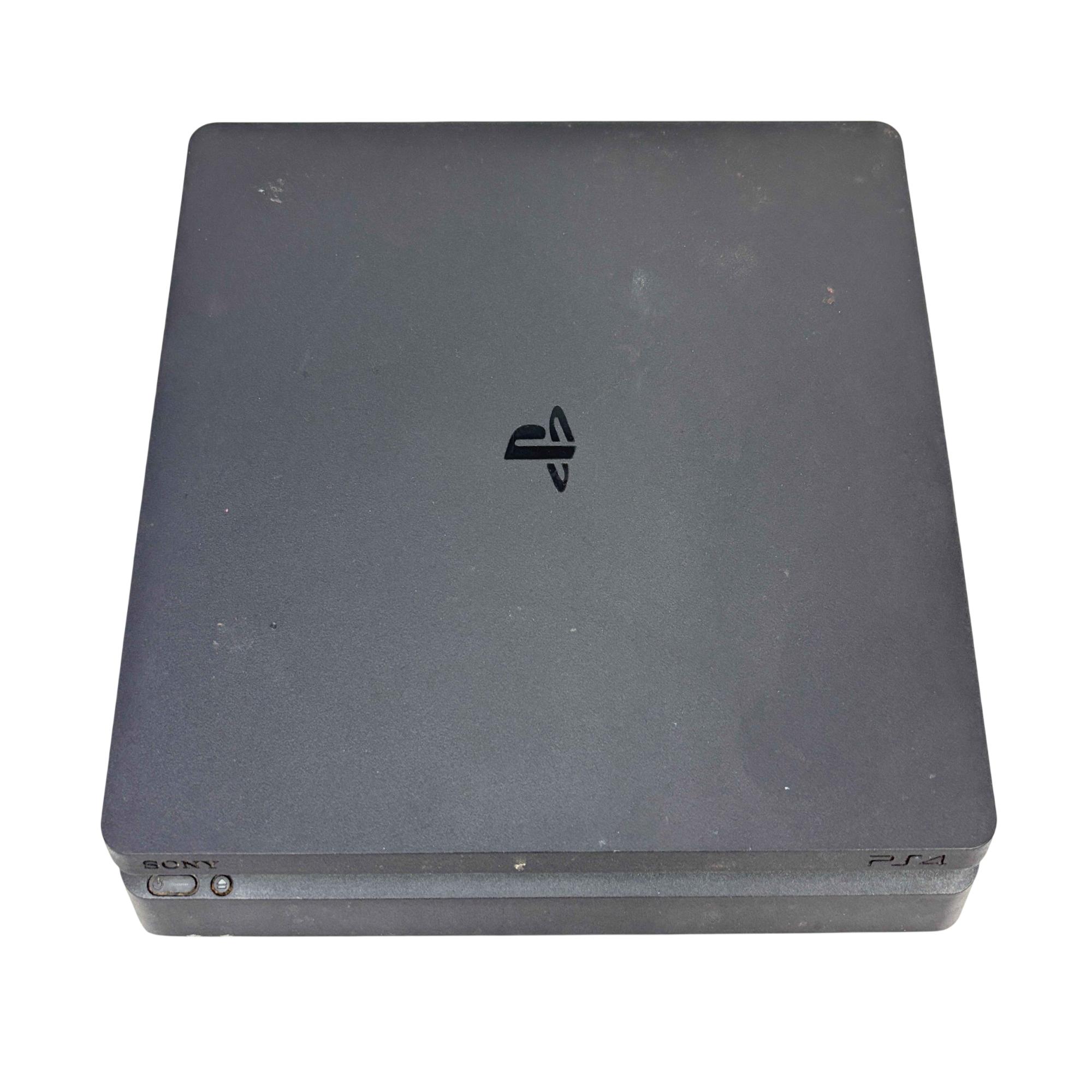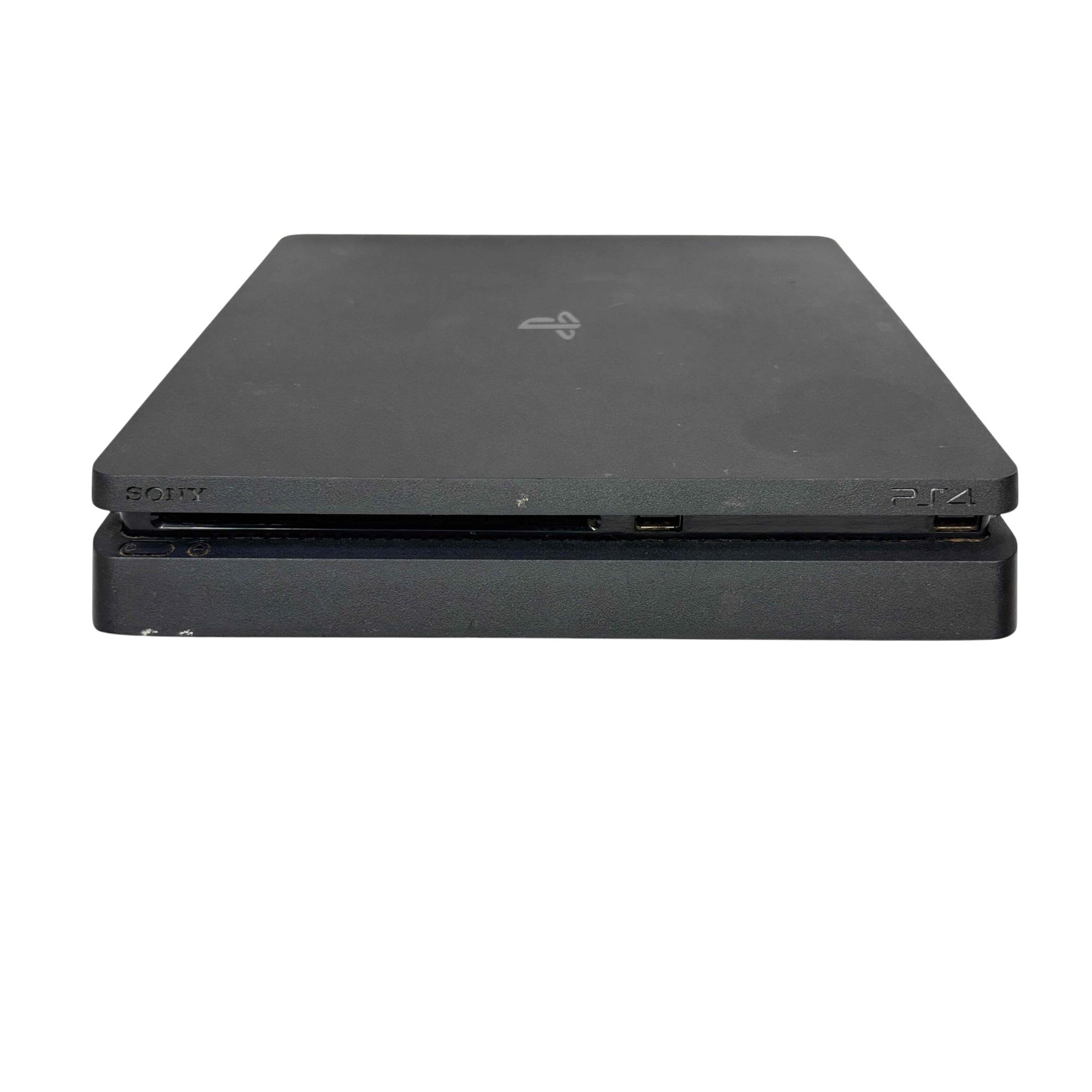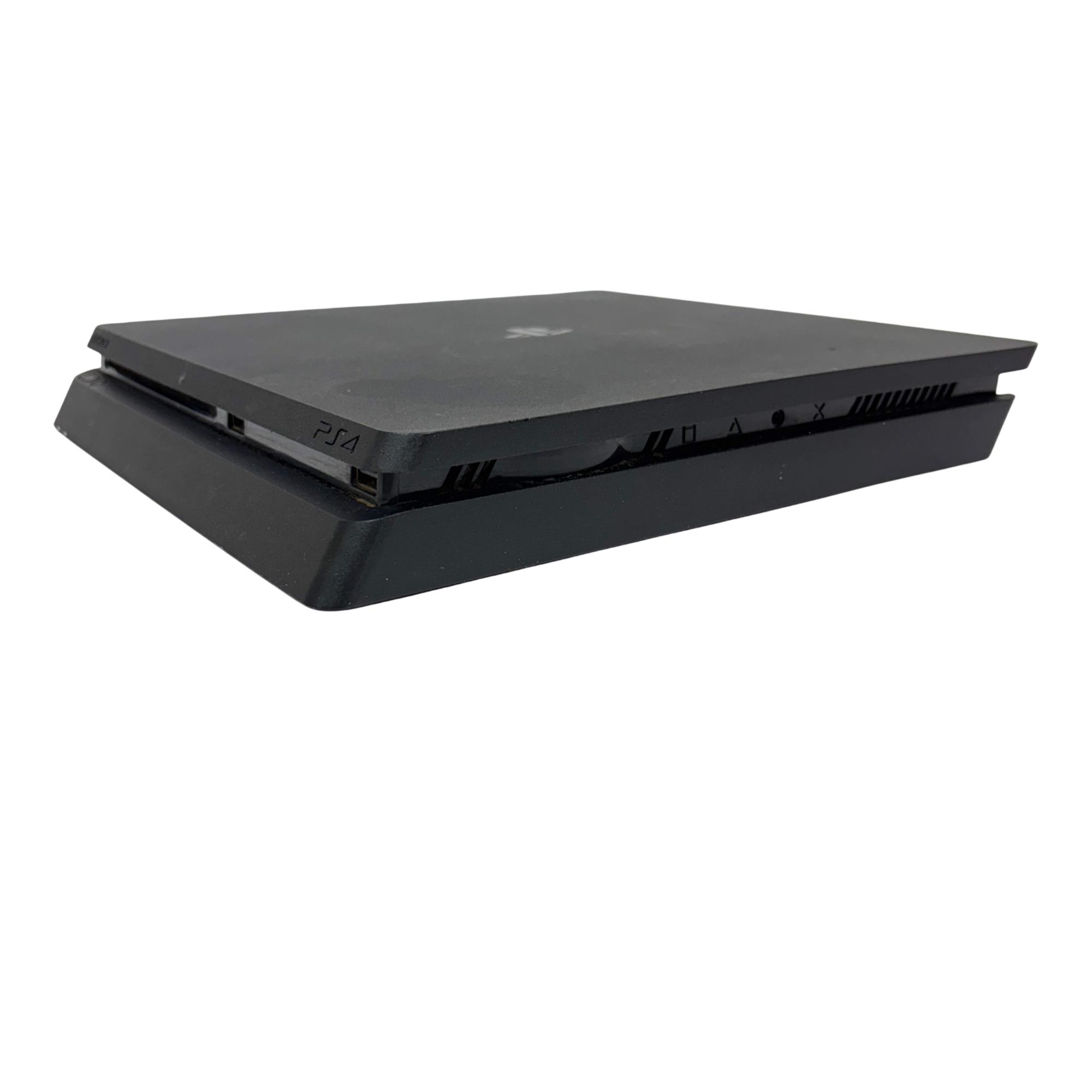 Sony PlayStation 4 Slim CUH-2115B 1TB Console with Camo DualShock 4 Controller offers a sleek and compact design featuring a powerful 1TB hard drive for extensive game storage. This black rectangular video game console delivers smooth gameplay and immersive graphics, complemented by a camouflage-patterned controller that provides precise and comfortable control for an enhanced gaming experience.