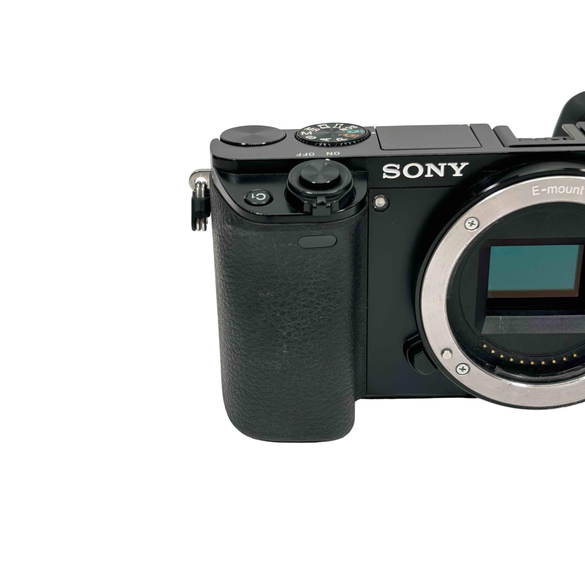Sony Alpha a6000 ILCE-6000 APS-C Mirrorless Digital Camera features a 24.3MP APS-C sensor with an E-mount system that allows interchangeable lenses for versatile shooting. This compact mirrorless camera delivers high-speed autofocus and continuous shooting at up to 11 frames per second, making it ideal for capturing fast action with impressive image clarity. Its sleek black design integrates advanced imaging technology suitable for both photography enthusiasts and professionals.