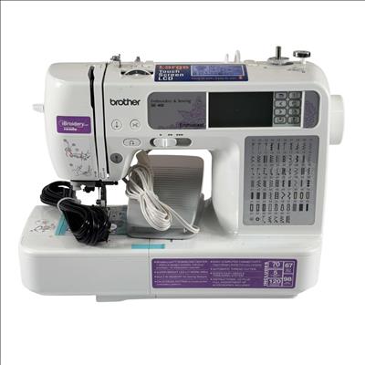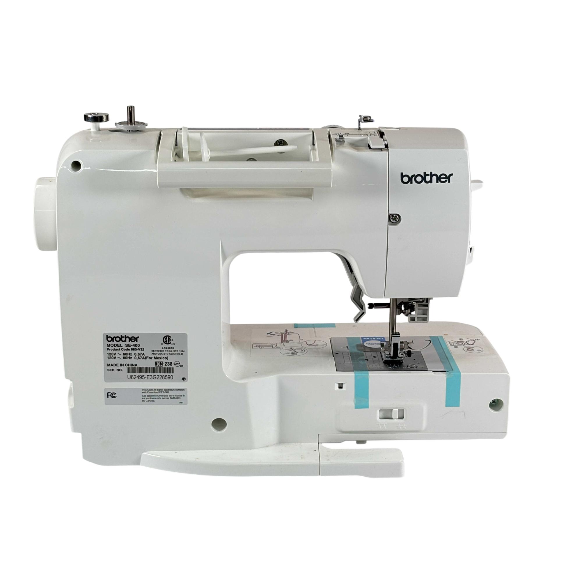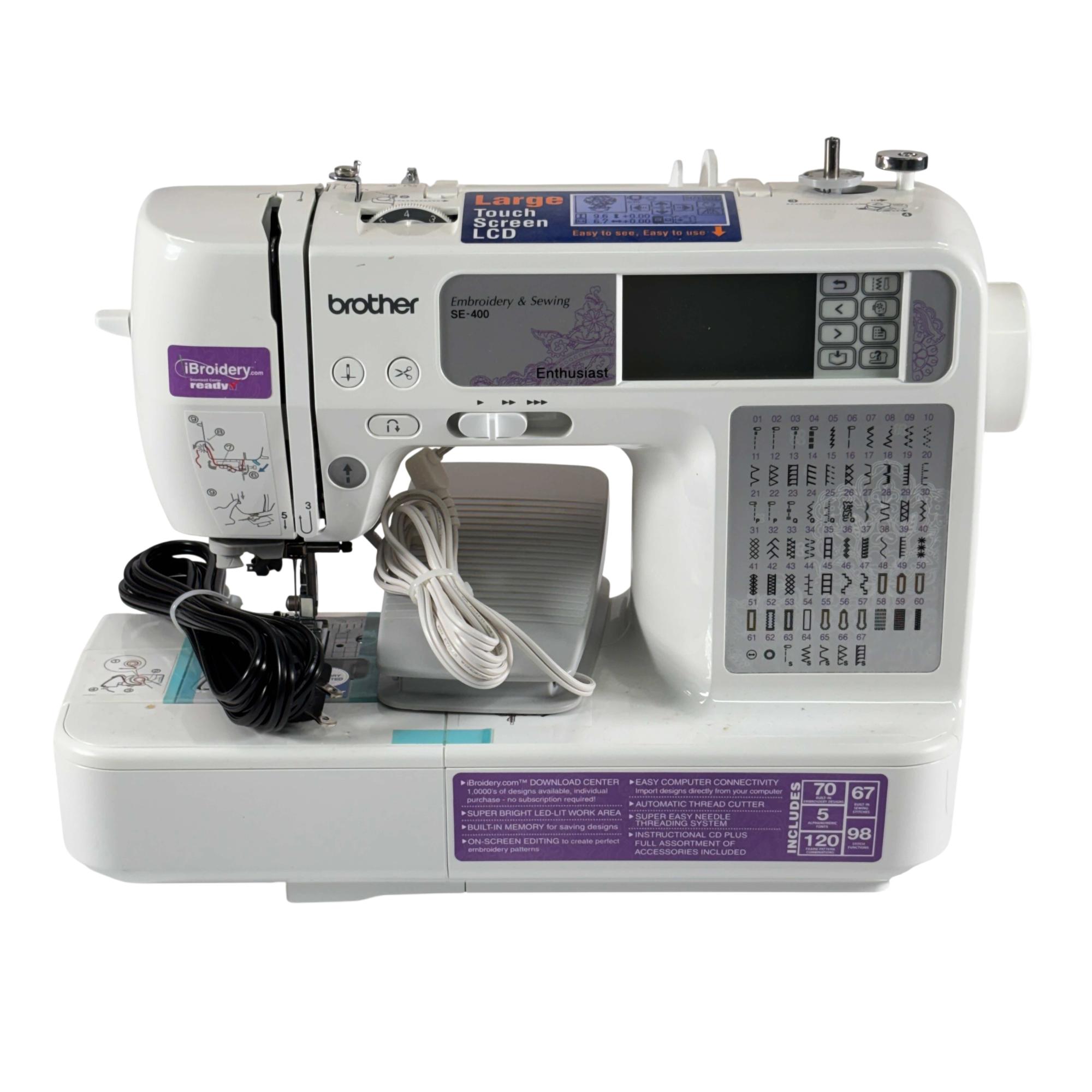 Brother SE-400 Computerized Embroidery & Sewing Machine offers advanced sewing and embroidery capabilities with a built-in memory for saving designs and a bright LED-lit work area that ensures visibility. It features easy computer connectivity for importing thousands of designs without subscription and includes an automatic thread cutter and superior threading system for efficient operation.
