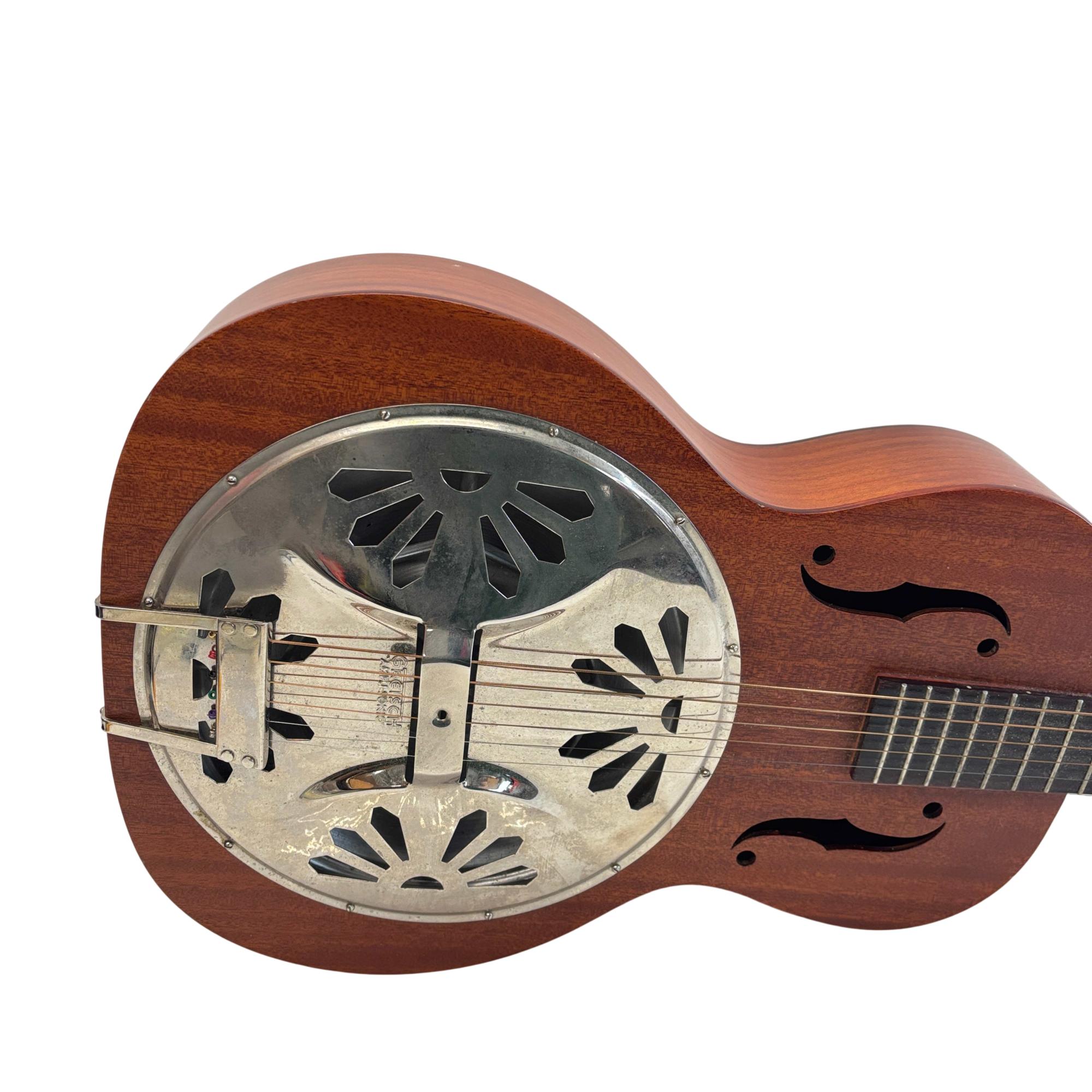 Gretsch G9200 Boxcar Round-Neck Resonator Guitar, Mahogany Body features a classic round-neck design crafted from rich mahogany tonewood that enhances warmth and resonance. This resonator guitar combines traditional style with high-quality construction, delivering powerful and vibrant acoustic tones ideal for blues and folk music.