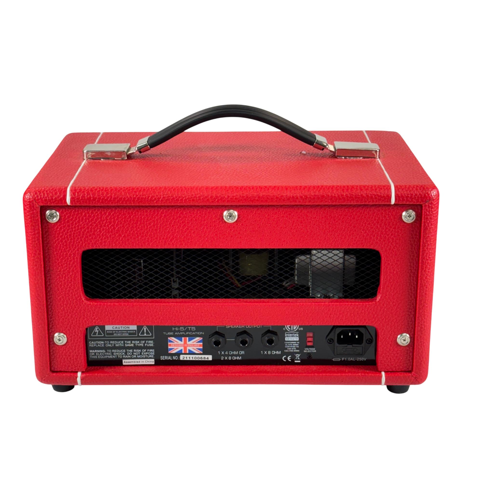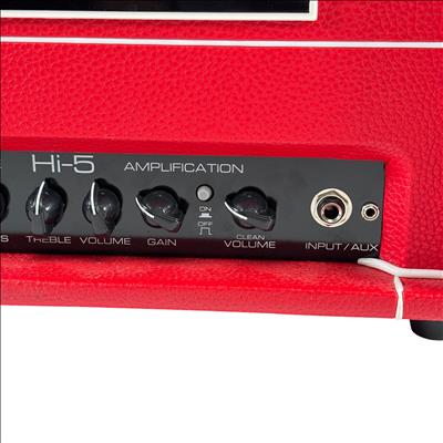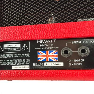 The Hiwatt Hi-5 is a 5-watt tube head guitar amplifier featuring two channels for clean and gain-driven tones. It includes a 1/4" instrument input, a 3.5mm AUX input, and multiple speaker outputs for flexible cabinet configurations. Powered by a 12AX7 preamp tube and an EL84 output tube, it offers responsive tube-driven sound with controls for channel volume, gain, and a shared 2-band EQ for treble and bass. Standby and mains switches provide easy operation, and the amp supports 4- or 8-ohm speaker cabinets for versatile performance options.