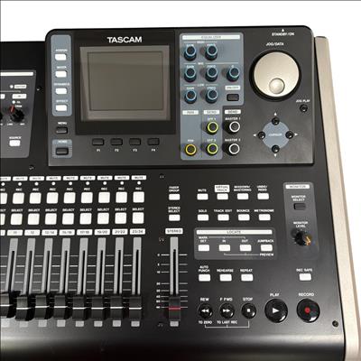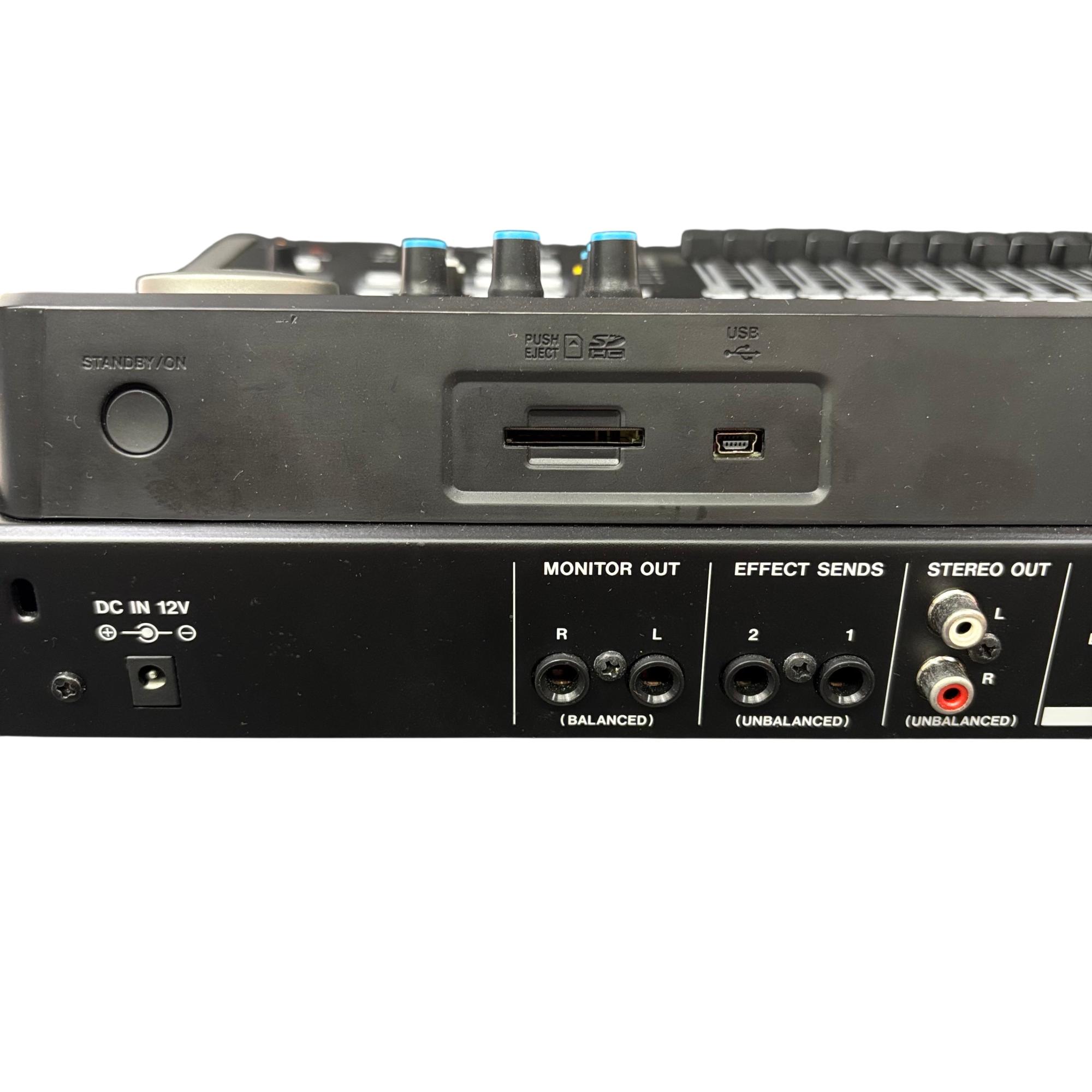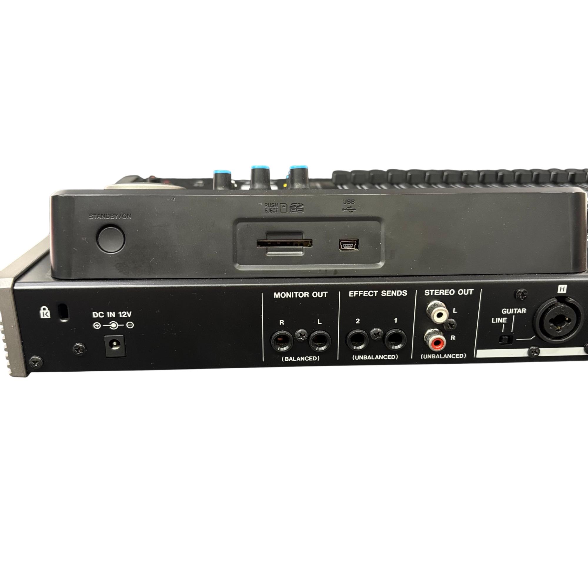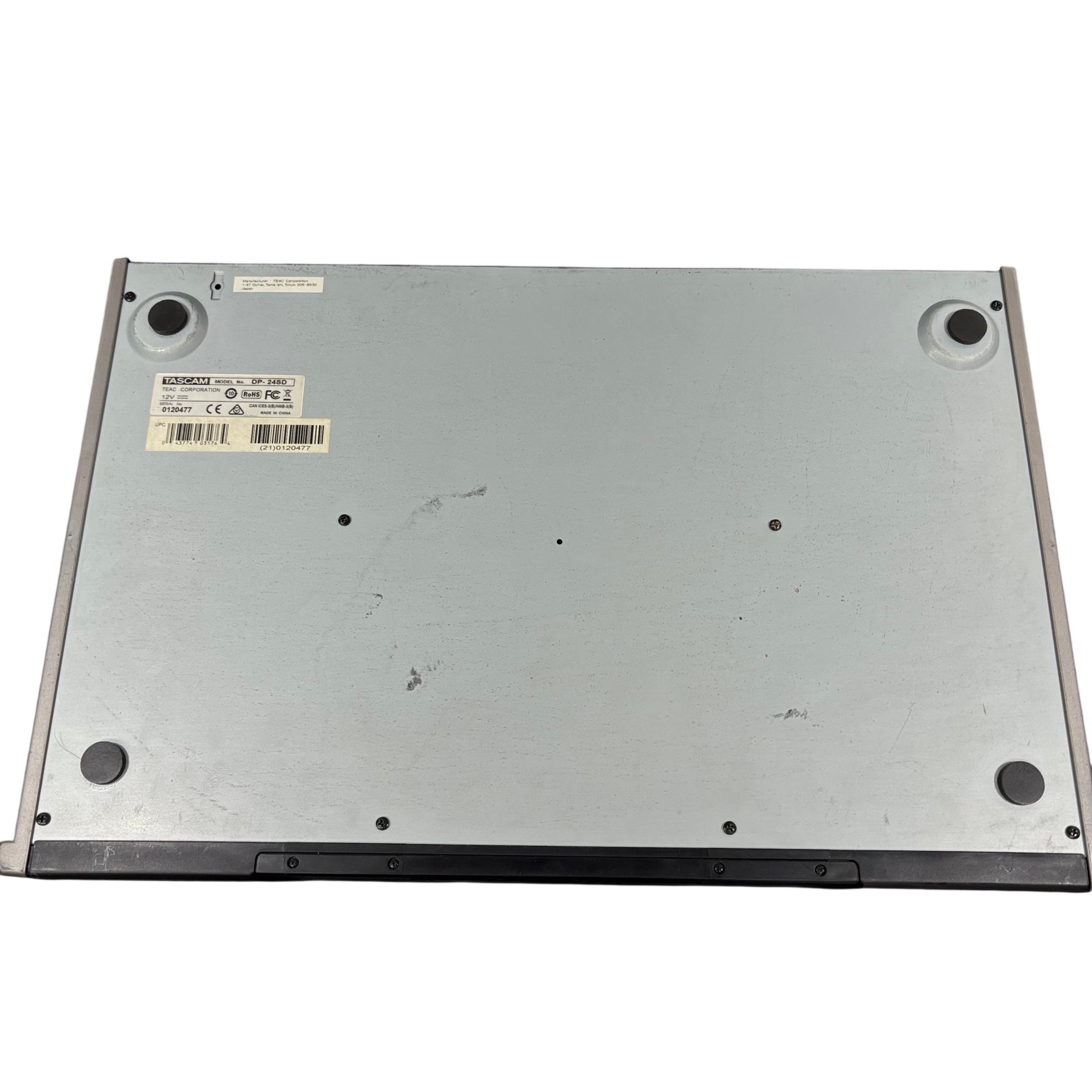 Tascam DP-24SD 24-Track Digital Portastudio Multitrack Recorder is a versatile audio recording device designed for professional and home studio use. It features 24 tracks of digital recording with intuitive button controls, balanced and unbalanced line inputs, and stereo outputs for precise mixing and monitoring. This compact unit integrates a control panel with effects sends, a built-in metronome, and comprehensive playback options to streamline multitrack production workflows.