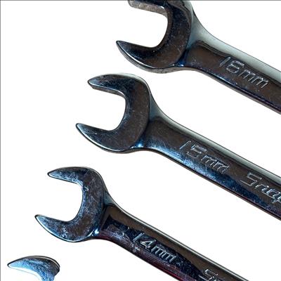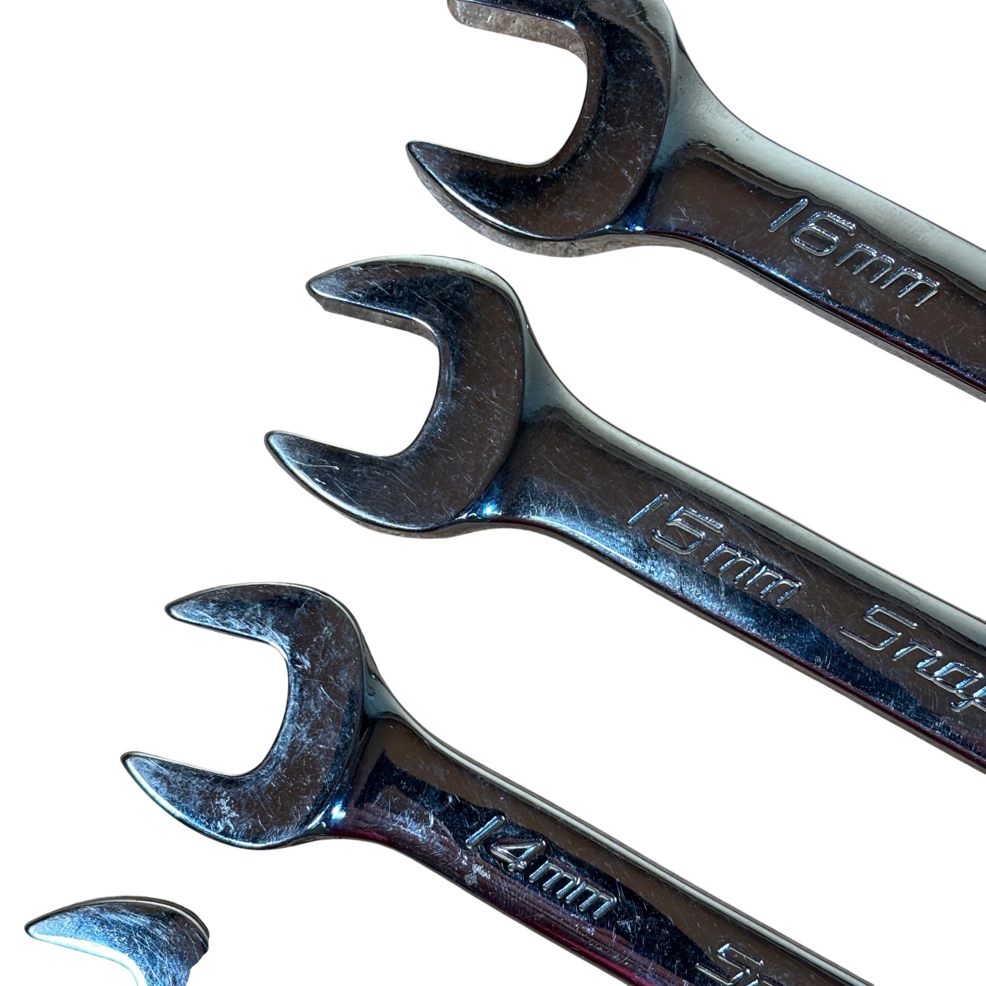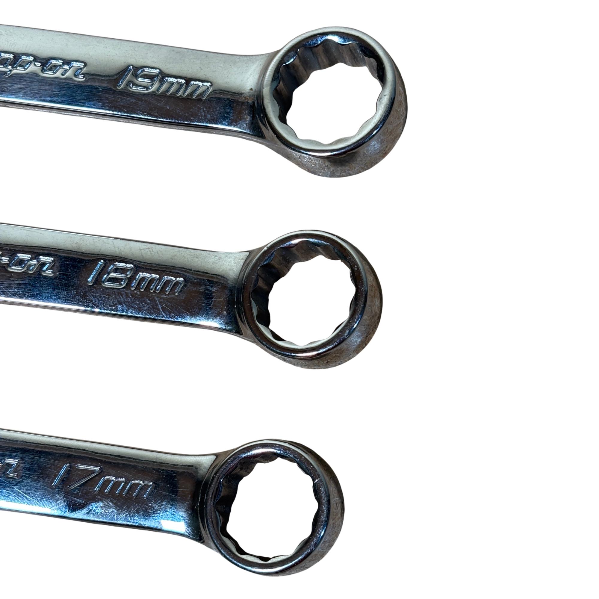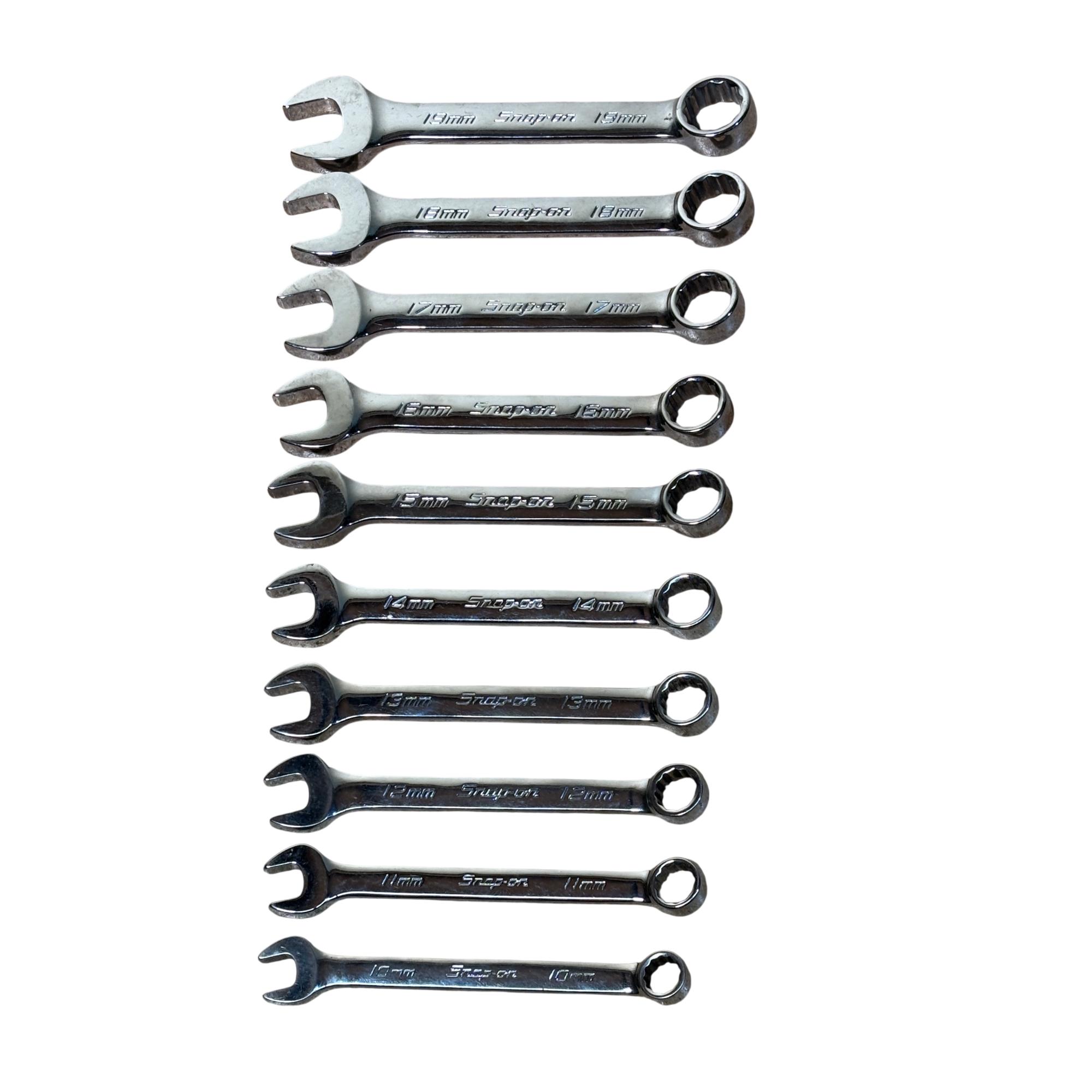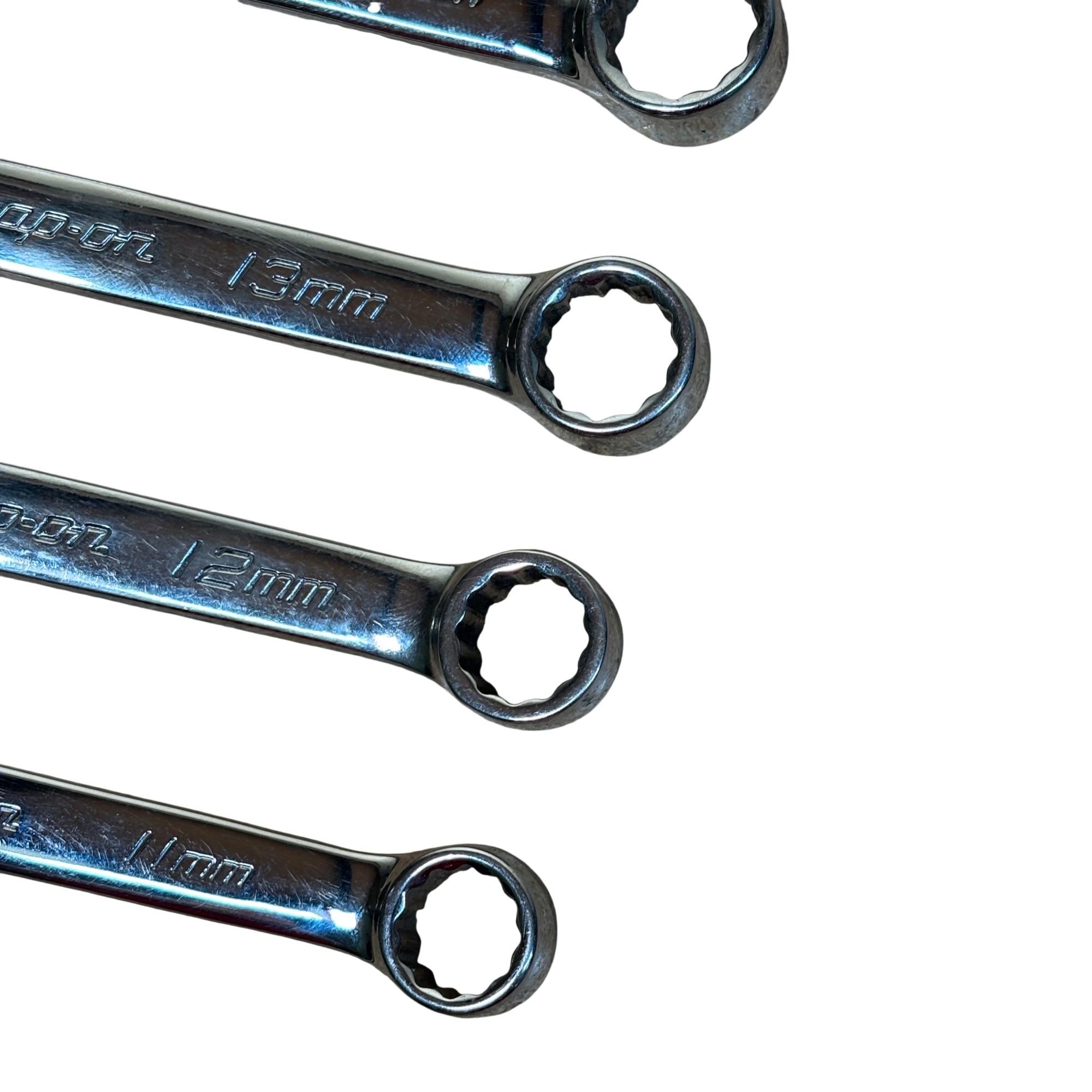 Snap-on OEXM710B 10-Piece 12-Point Metric Flank Drive Combination Wrench Set delivers precision-engineered metalworking hand tools designed for durability and high performance. Each wrench features a 12-point flank drive design to ensure a secure fit on fasteners, reducing wear and enhancing torque application across a range of metric sizes.