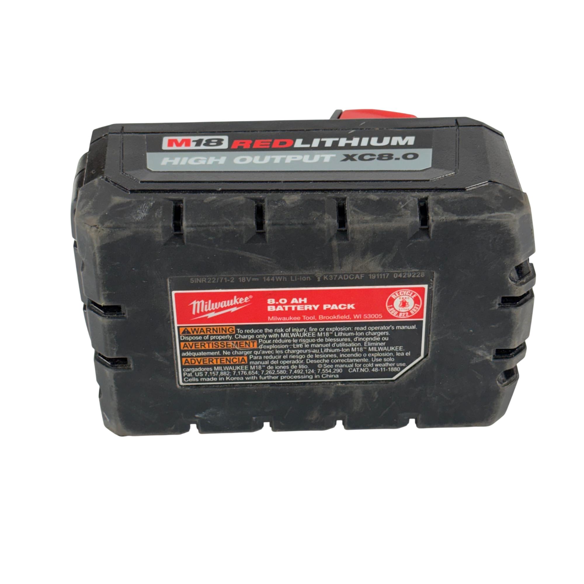 The Milwaukee 48-11-1880 M18 HIGH OUTPUT XC 8.0 Ah battery pack delivers enhanced power and performance for demanding applications. Its REDLINK intelligence helps optimize output and protect against overload through communication with compatible tools and chargers. Built with durable construction for tough jobsite conditions, it offers reliable operation and long service life. The onboard fuel gauge shows remaining charge, and the pack works with the full range of M18 cordless tools.