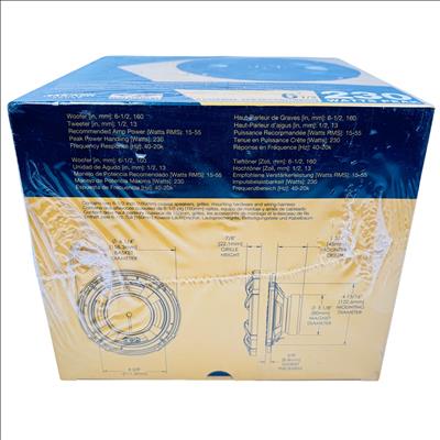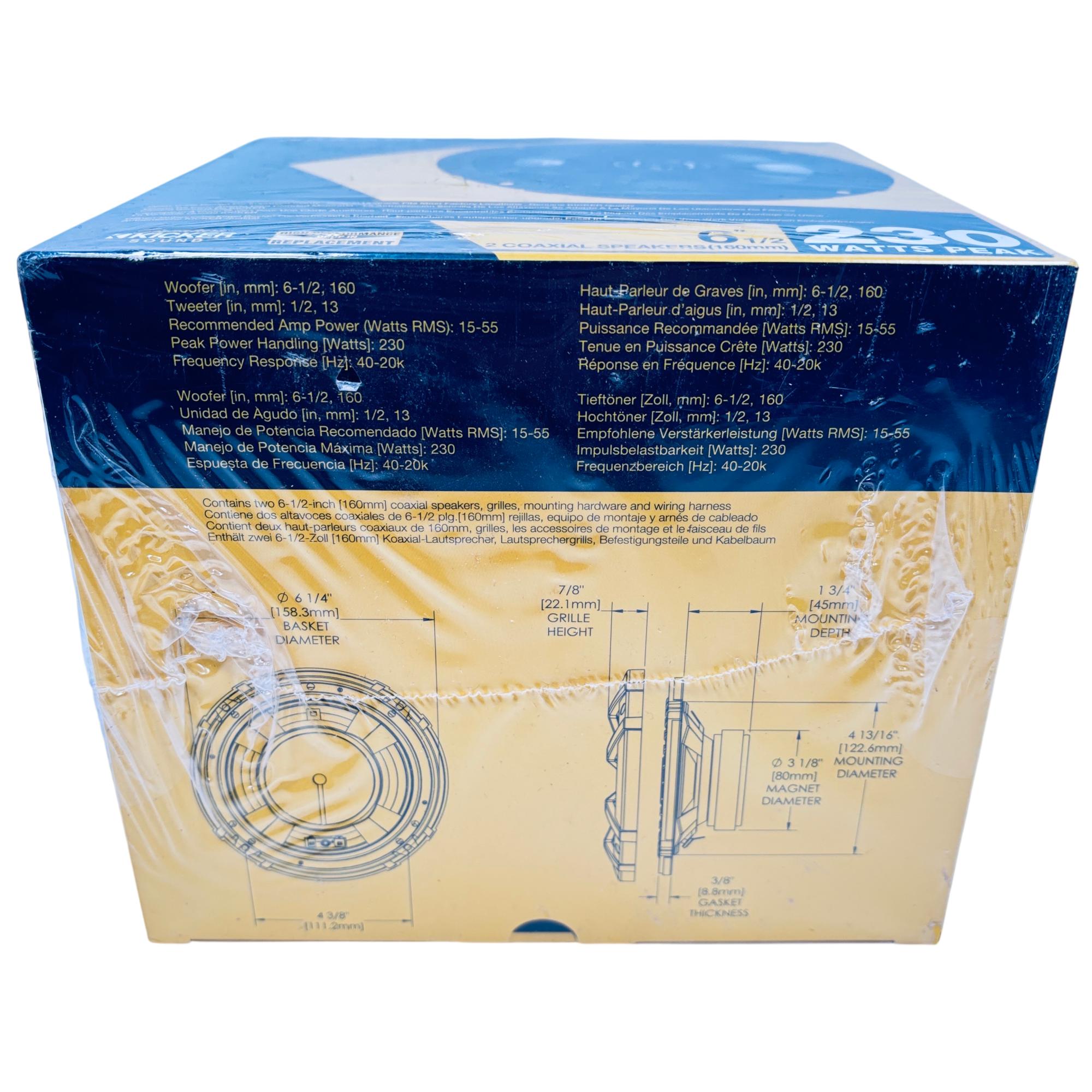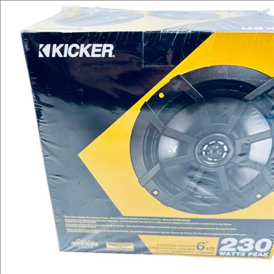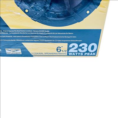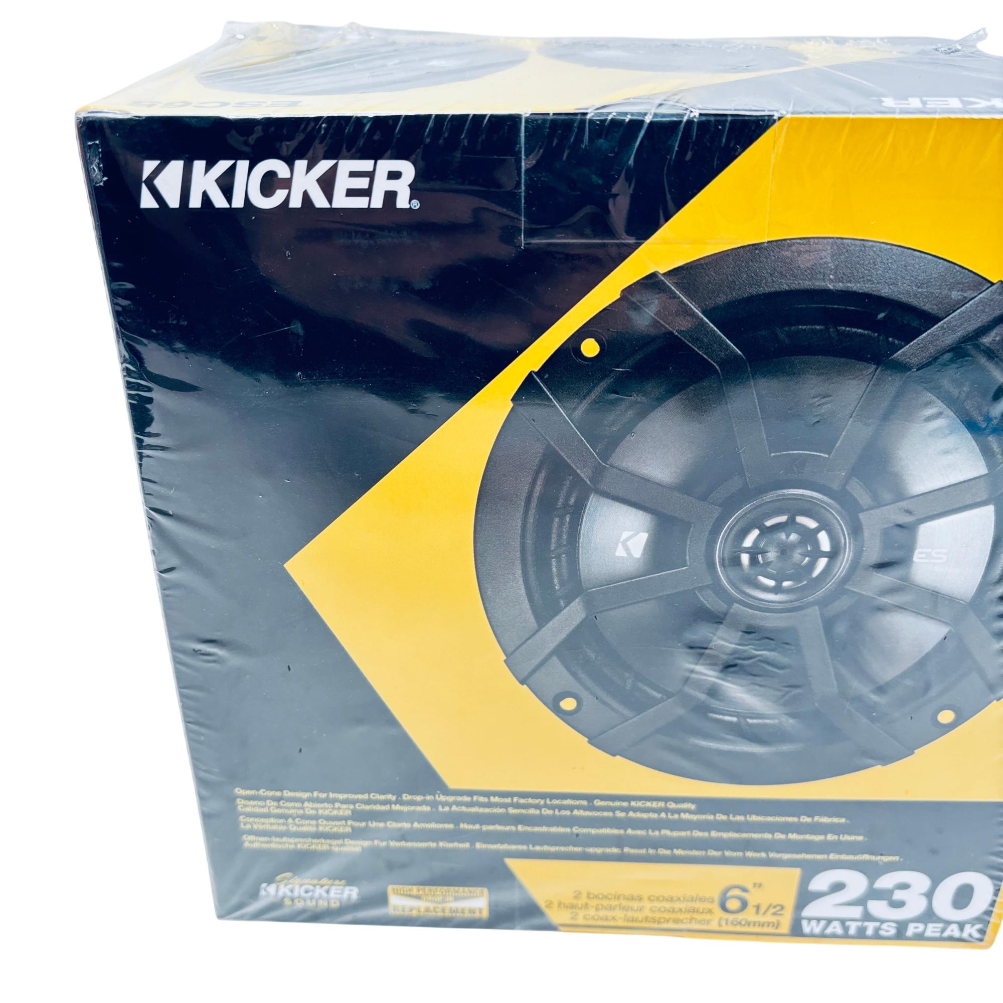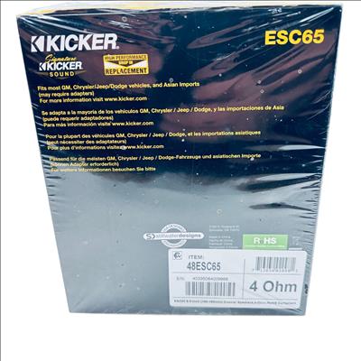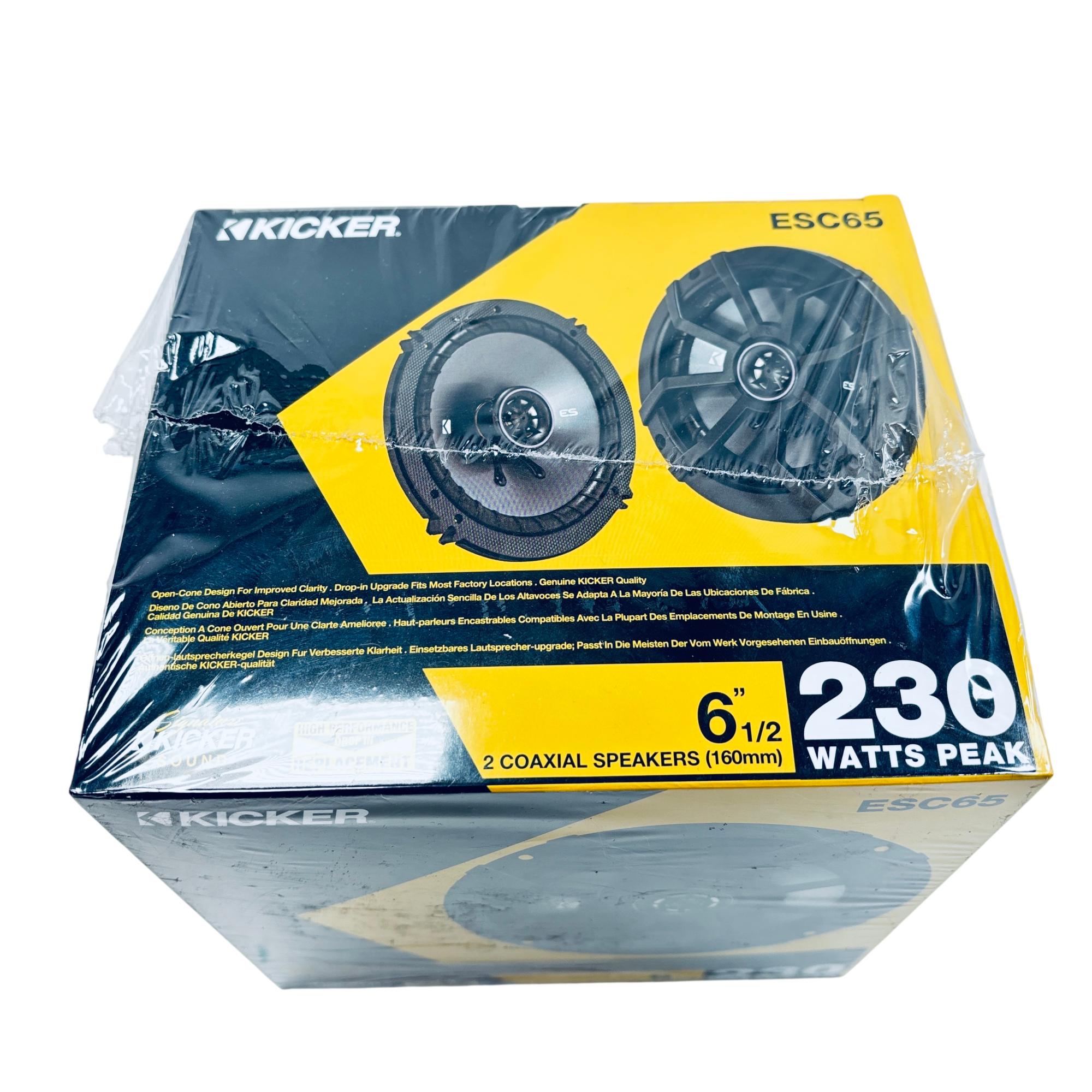 Kicker ESC65 6.5-Inch (160mm) 2-Way Coaxial Car Speakers deliver high performance with a recommended amplifier power range of 15 to 55 watts RMS and peak power handling of 230 watts. These speakers feature a 6.5-inch woofer and a 0.5-inch tweeter designed to provide a frequency response from 40 Hz to 20 kHz, ensuring clear and detailed sound reproduction for car audio systems.