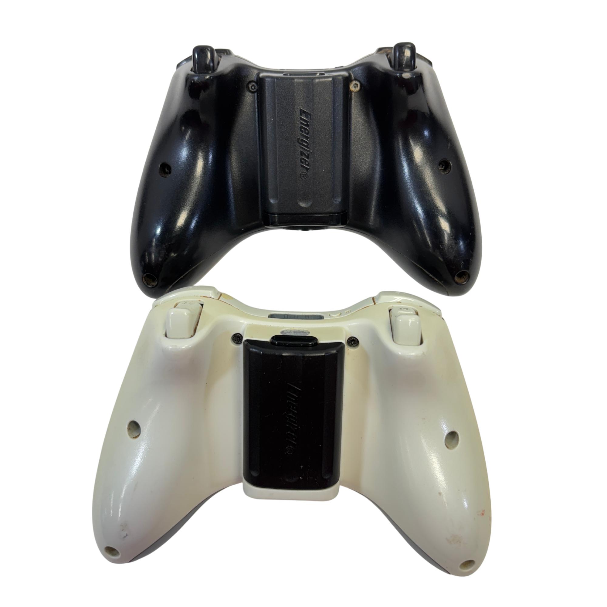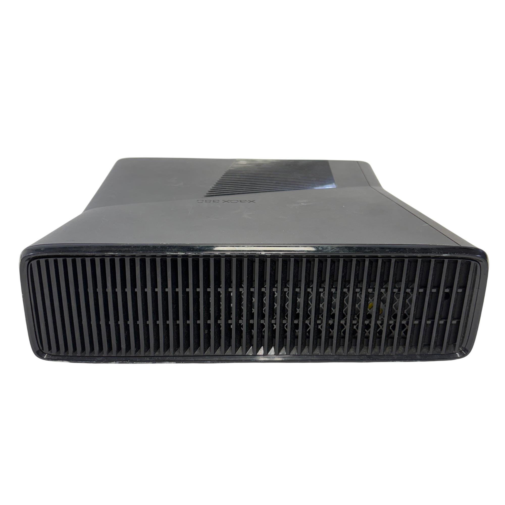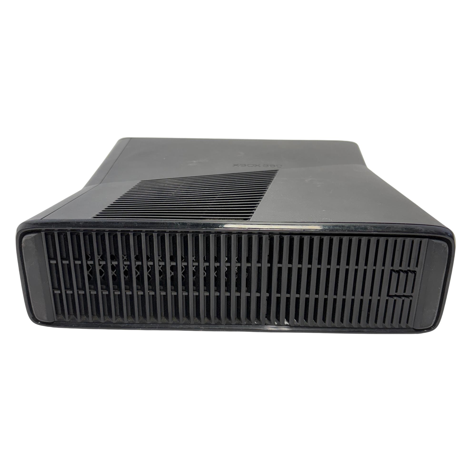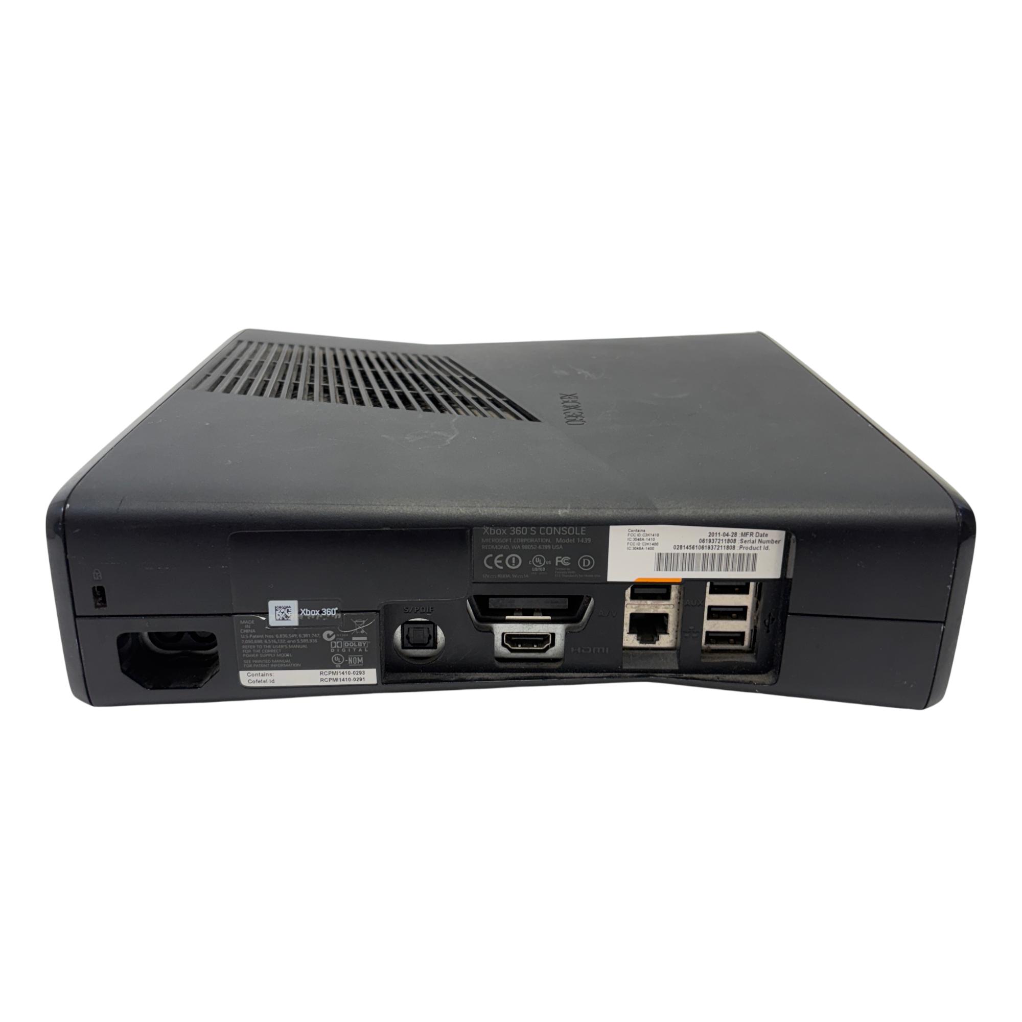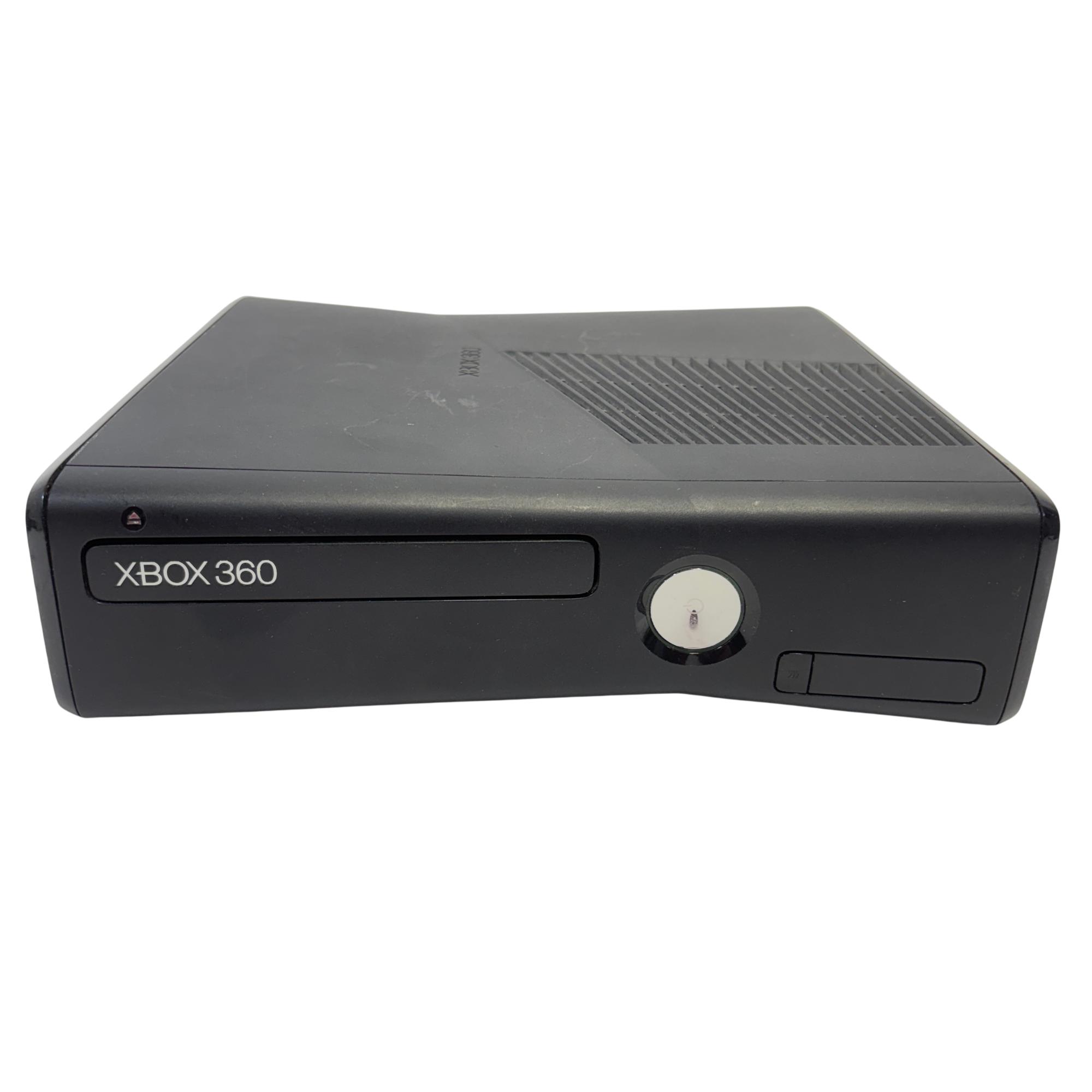 The Microsoft Xbox 360 S Slim Video Game Console with Two Controllers is a sleek black gaming system featuring a streamlined design with enhanced ventilation. This model offers refined hardware performance and supports a wide range of Xbox 360 games, delivering immersive gameplay experiences. Its compact form factor and integrated features make it a popular choice for casual and dedicated gamers alike.