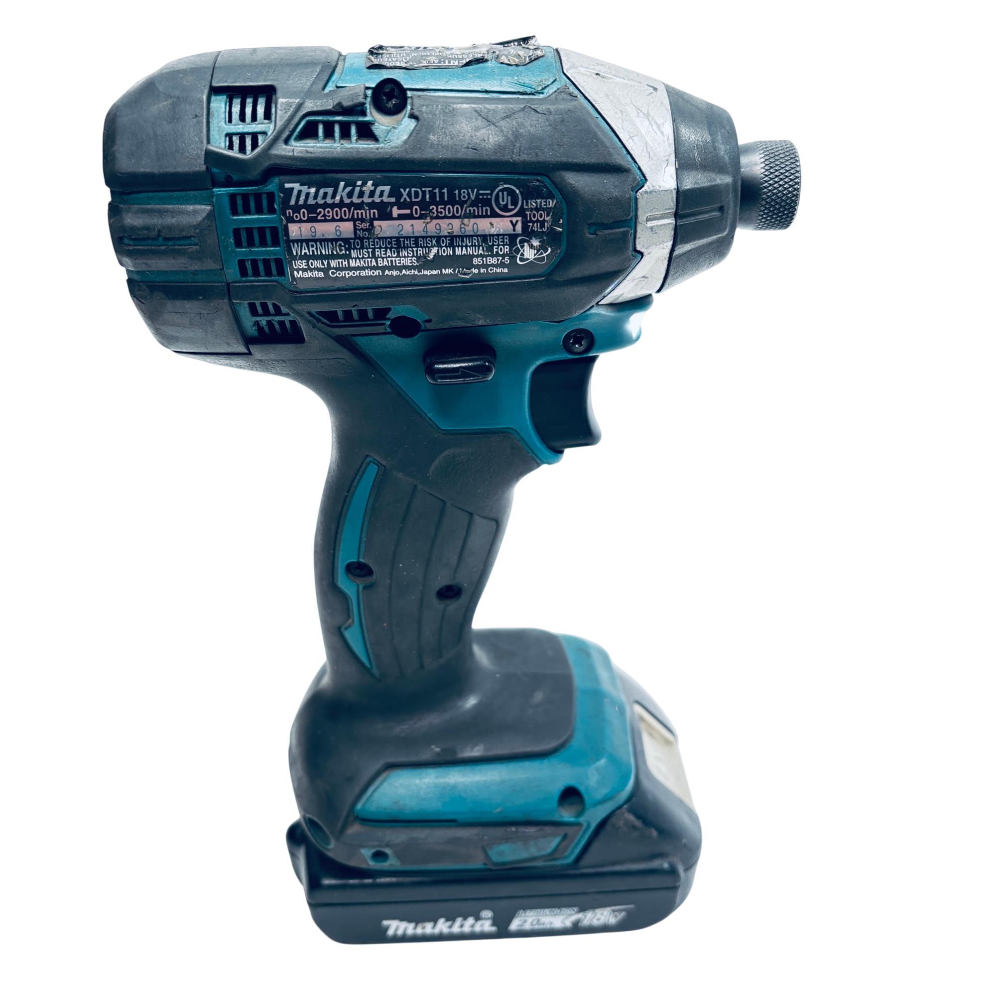 Makita XDT11 18V LXT Lithium-Ion Cordless Impact Driver offers powerful and efficient fastening with its compact, ergonomic design. This tool features variable speed control and brushless motor technology for enhanced performance and durability, making it ideal for both professional and DIY projects.