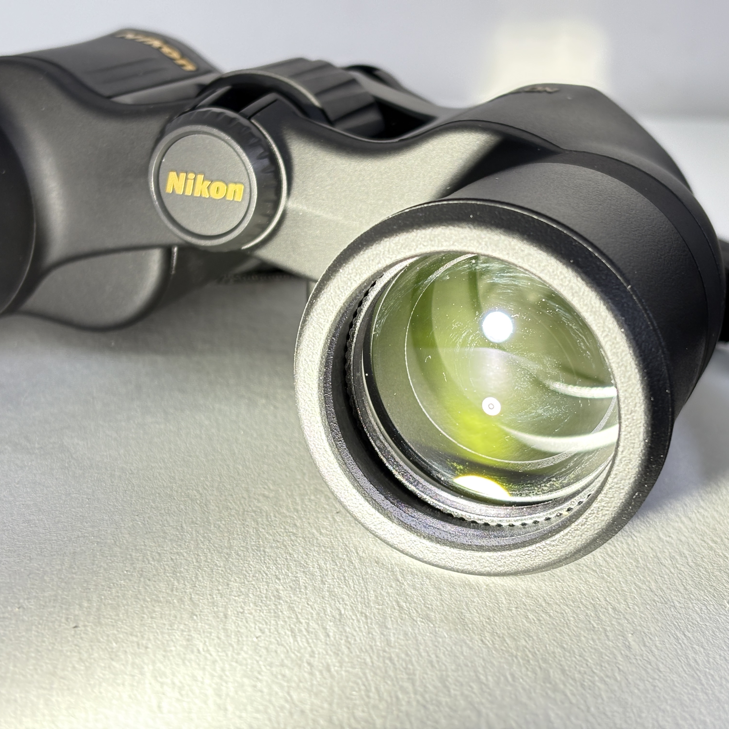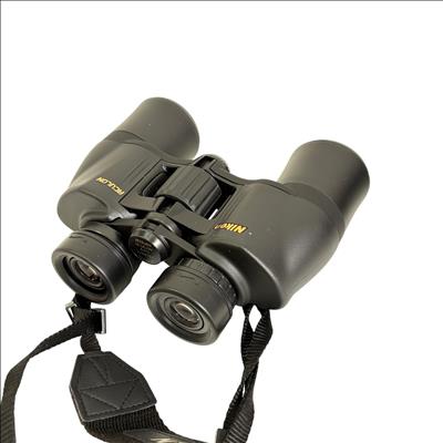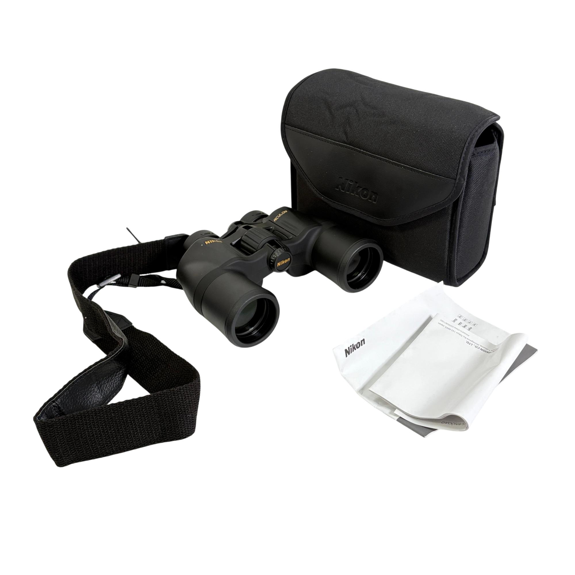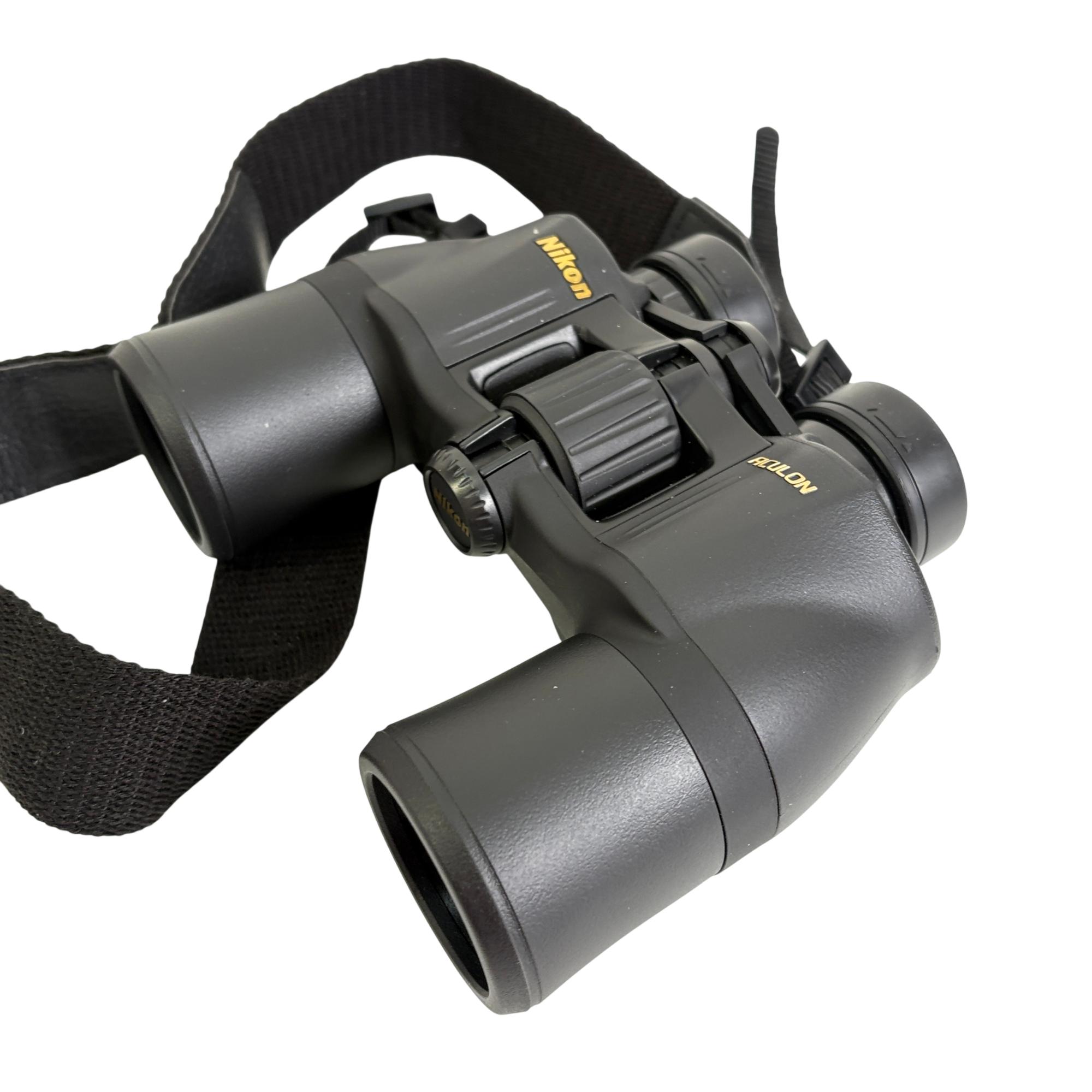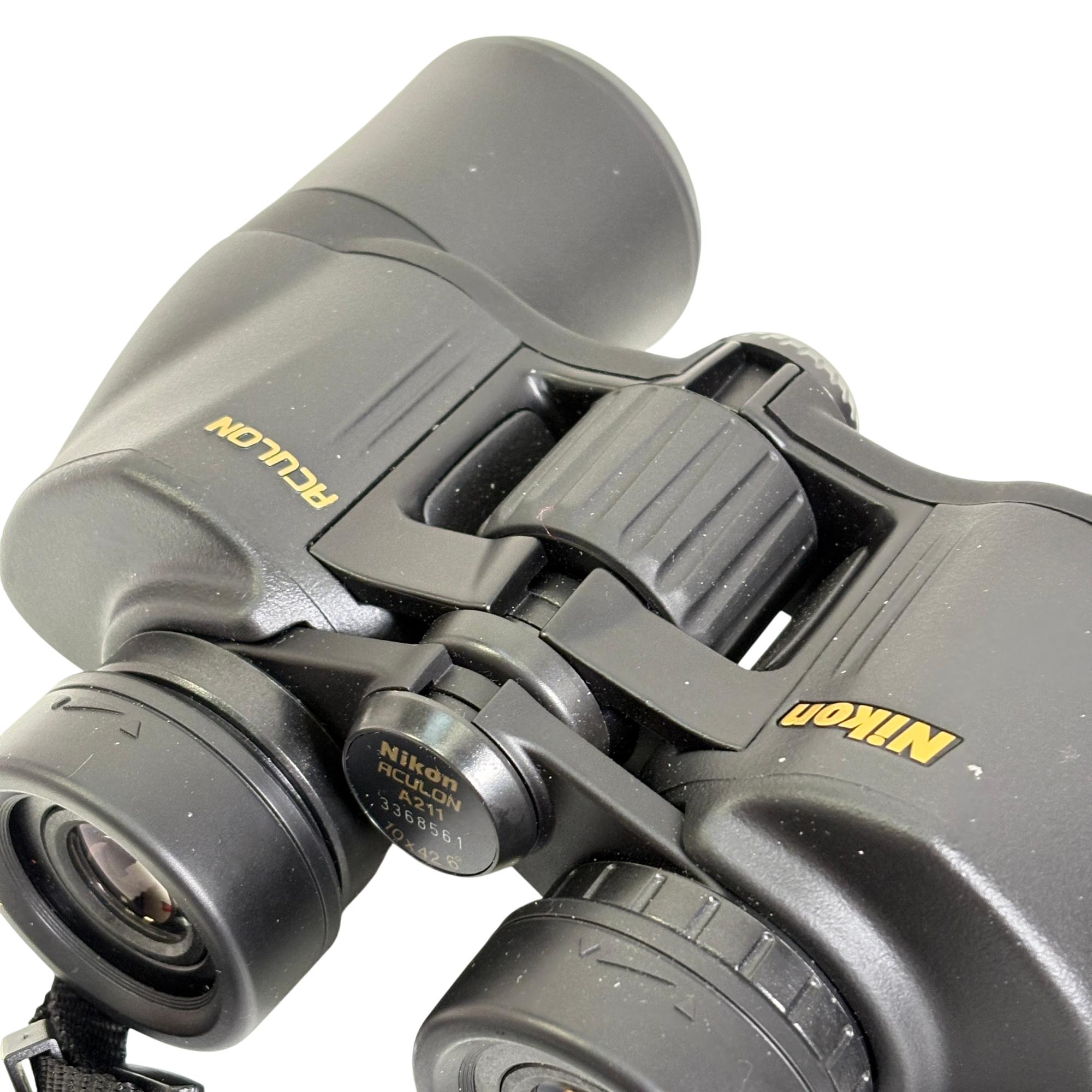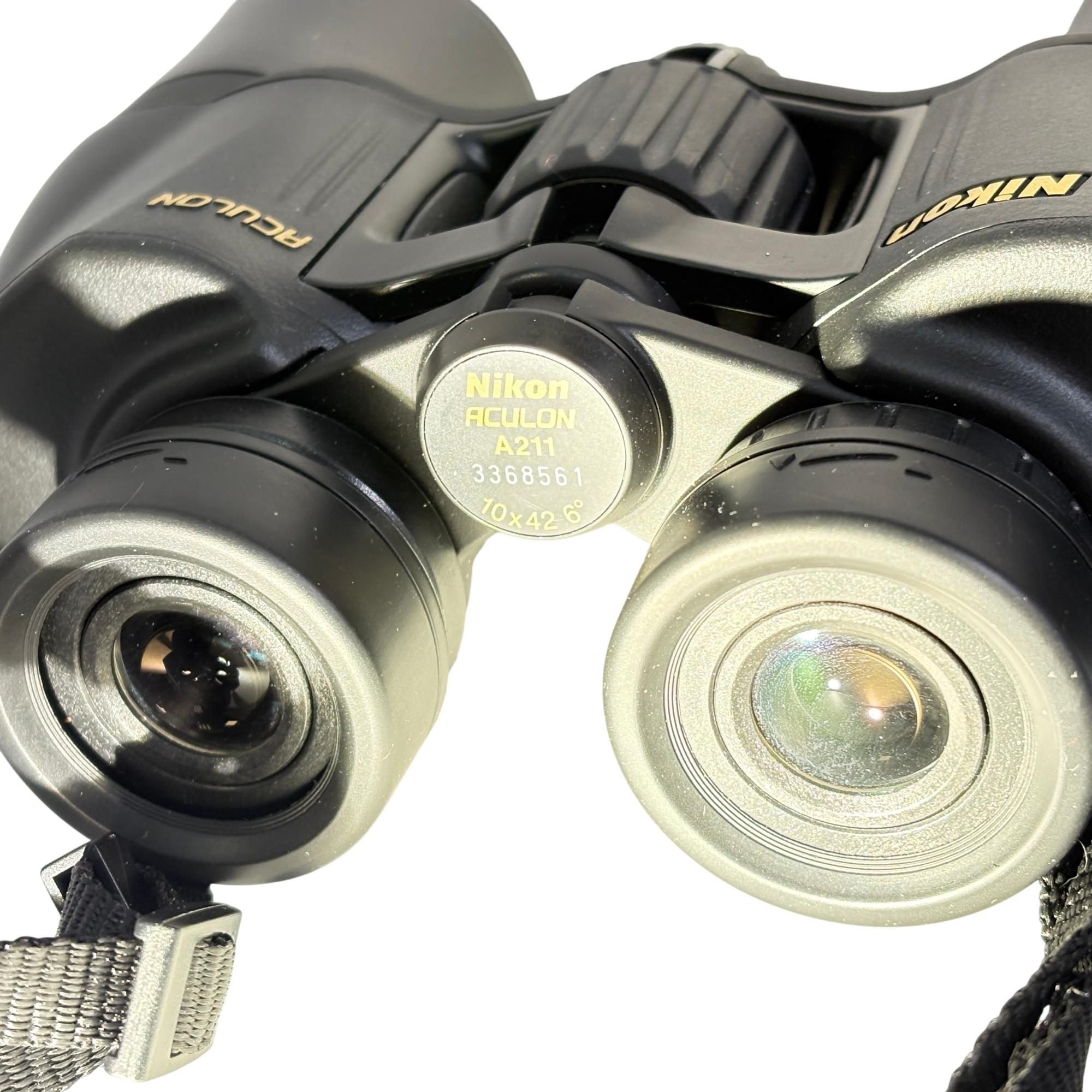 Nikon ACULON A211 10x42 binoculars deliver sharp, bright images with a powerful 10x magnification and 42mm objective lenses designed for excellent light transmission. Featuring a sleek black design with yellow accents, these binoculars combine ergonomic comfort with precision optical performance for outdoor and wildlife viewing.