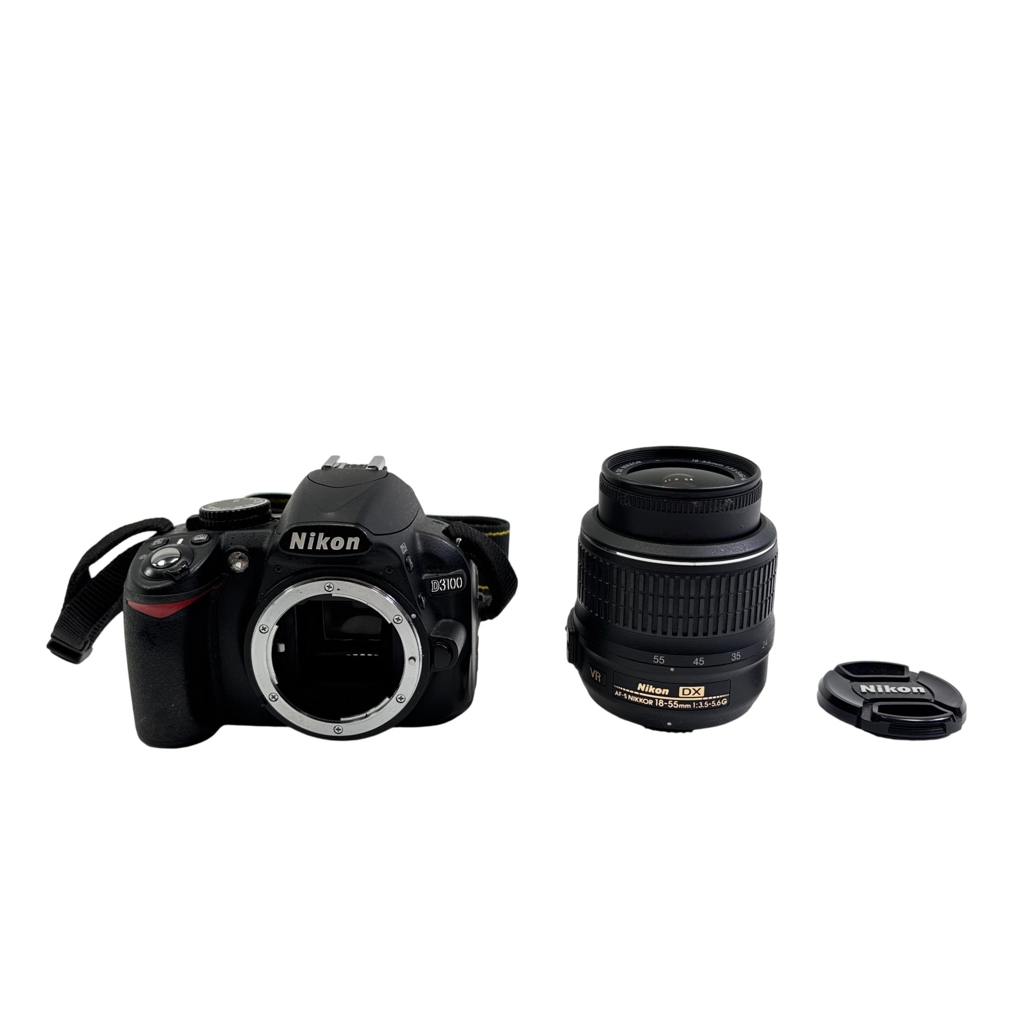 Nikon D3100 14.2MP Digital SLR Camera with AF-S DX NIKKOR 18-55mm f/3.5-5.6G VR Lens delivers high-resolution images with a 14.2-megapixel DX-format CMOS sensor and features a versatile 18-55mm VR lens for sharp, vibration-reduced photos. This DSLR offers full HD 1080p video recording and an intuitive design with easy-to-use controls and a clear 3-inch LCD screen, making it ideal for both beginner and enthusiast photographers.