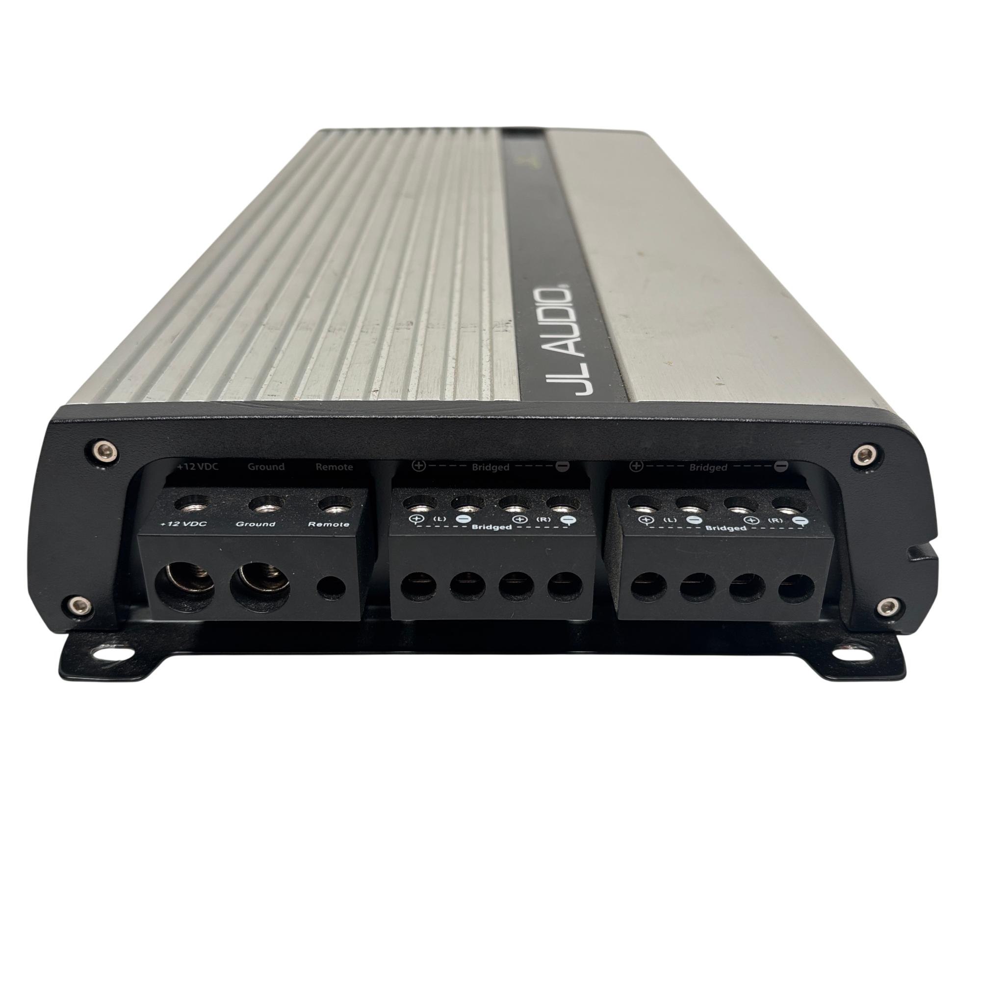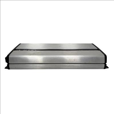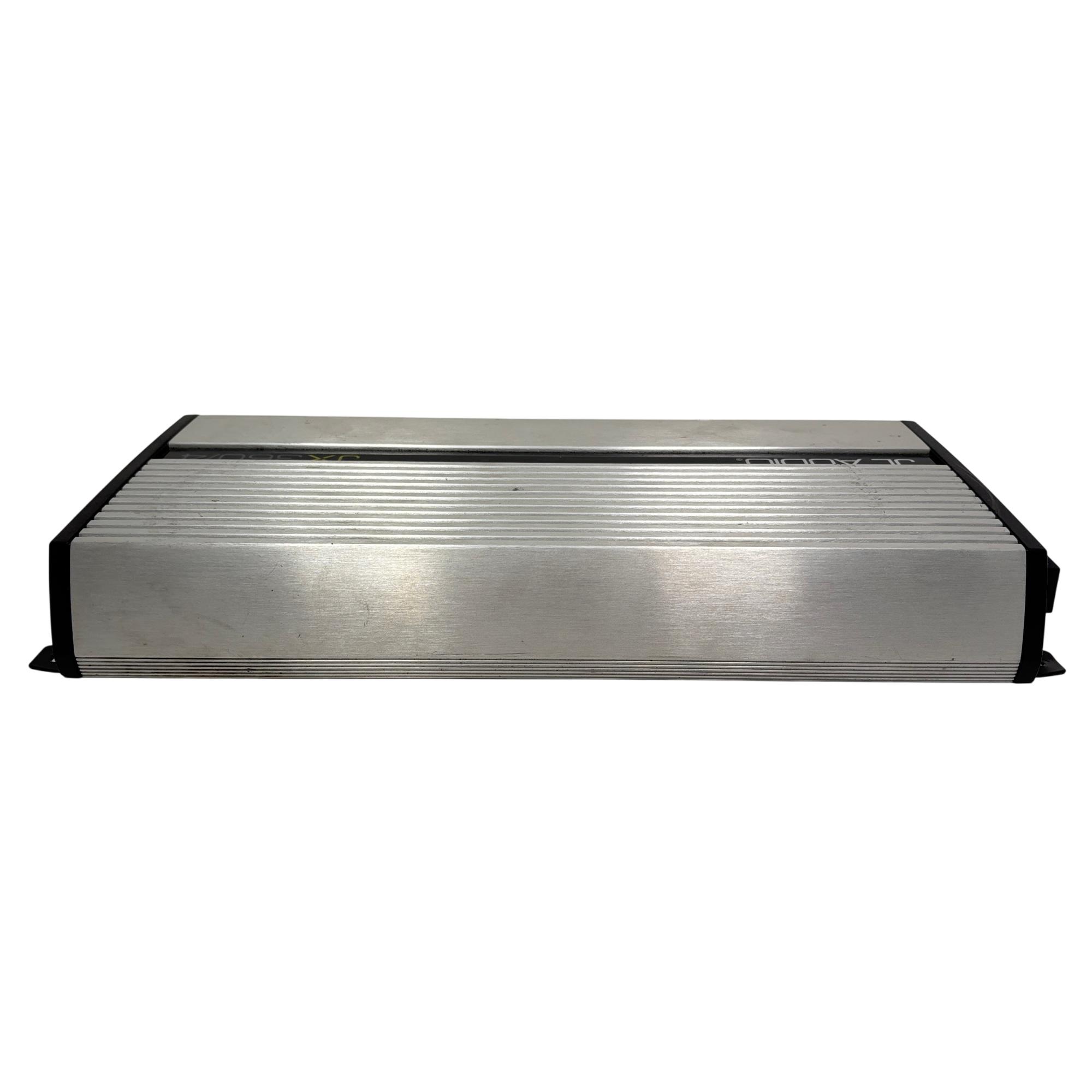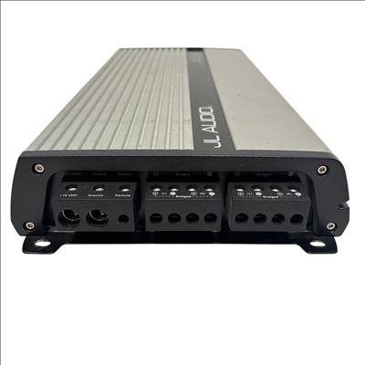JL Audio JX360/4 360W 4-Channel Class A/B Car Amplifier delivers high-quality audio performance with a robust Class A/B design, providing clear and dynamic sound output. This silver rectangular amplifier features distinct black edges and stripes, designed to fit seamlessly into automotive audio systems while ensuring efficient power distribution across four channels.