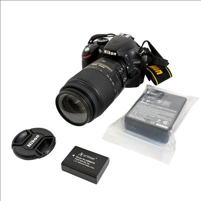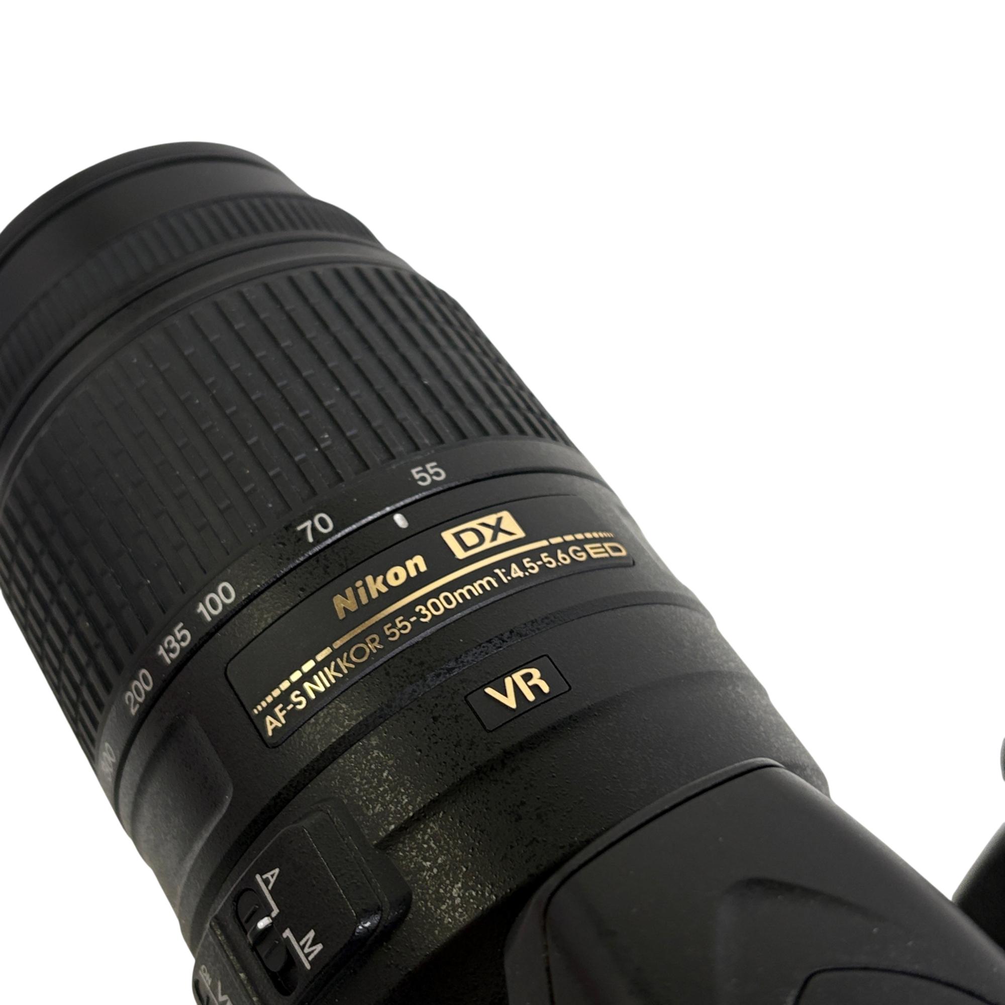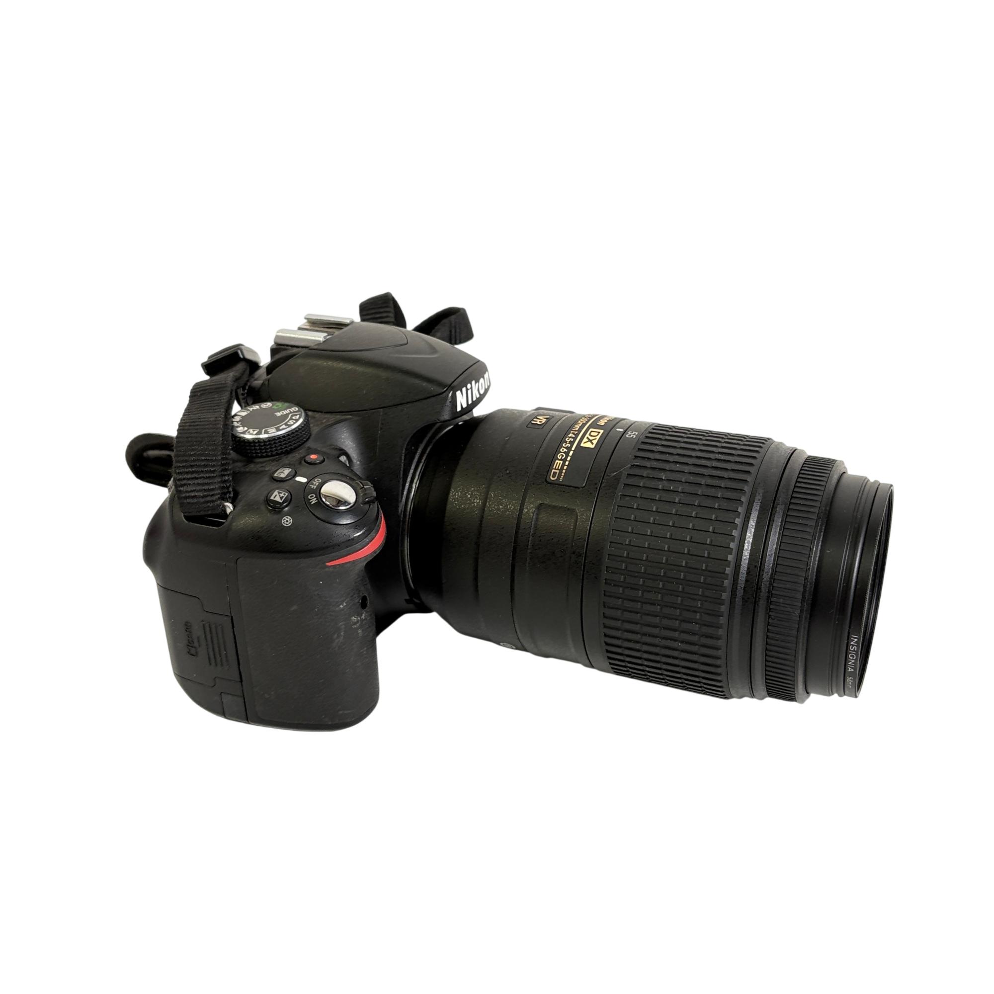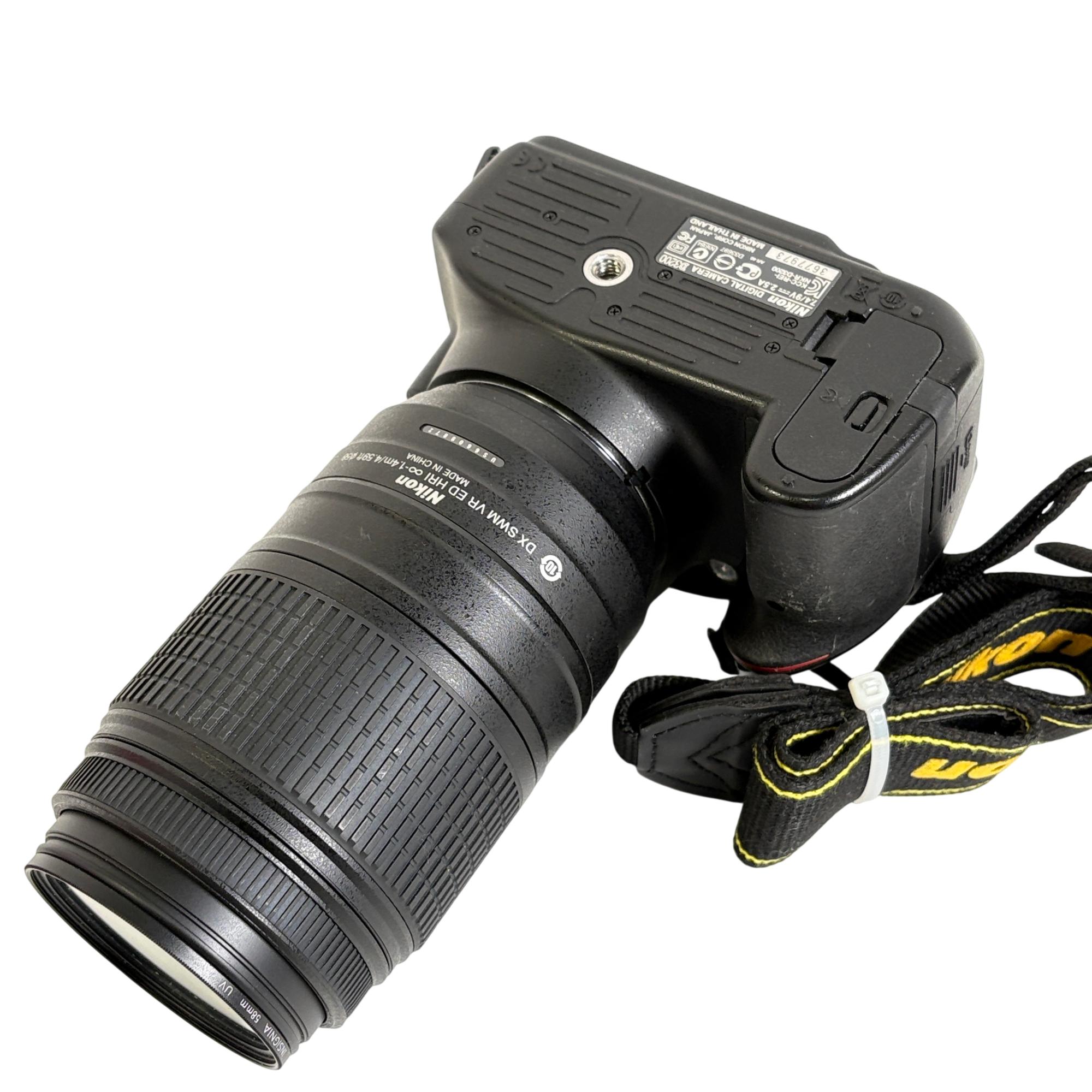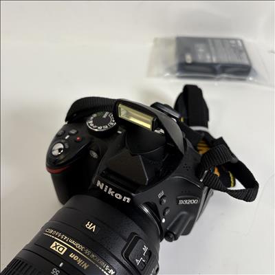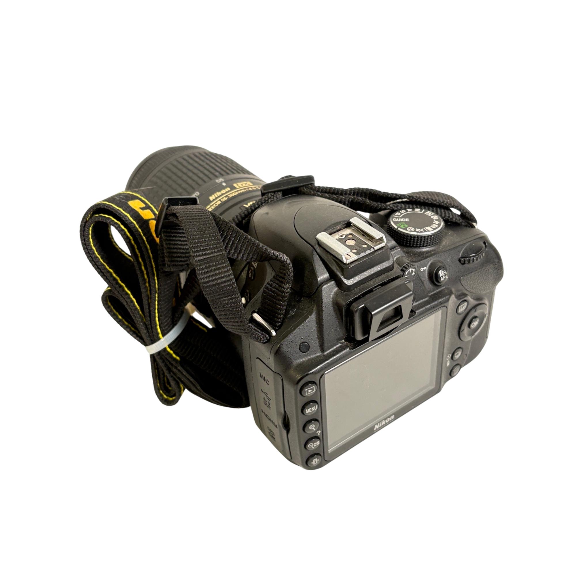 Nikon D3200 DSLR Camera with Nikon AF-S DX NIKKOR 55-300mm f/4.5-5.6G ED VR Lens offers versatile telephoto zoom capabilities and vibration reduction technology for sharp, clear images. This digital single-lens reflex camera features a high-resolution sensor designed to capture detailed photos and videos with excellent clarity and color accuracy.