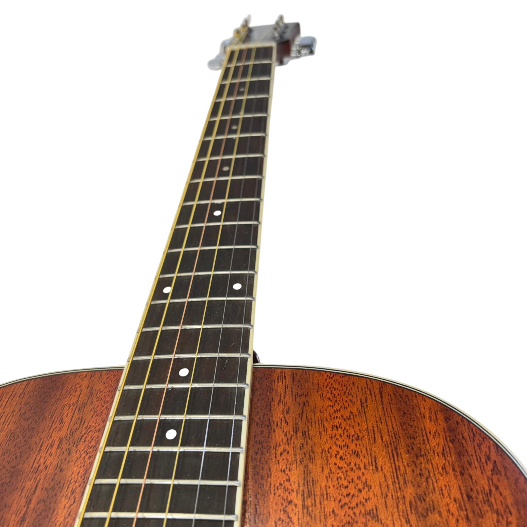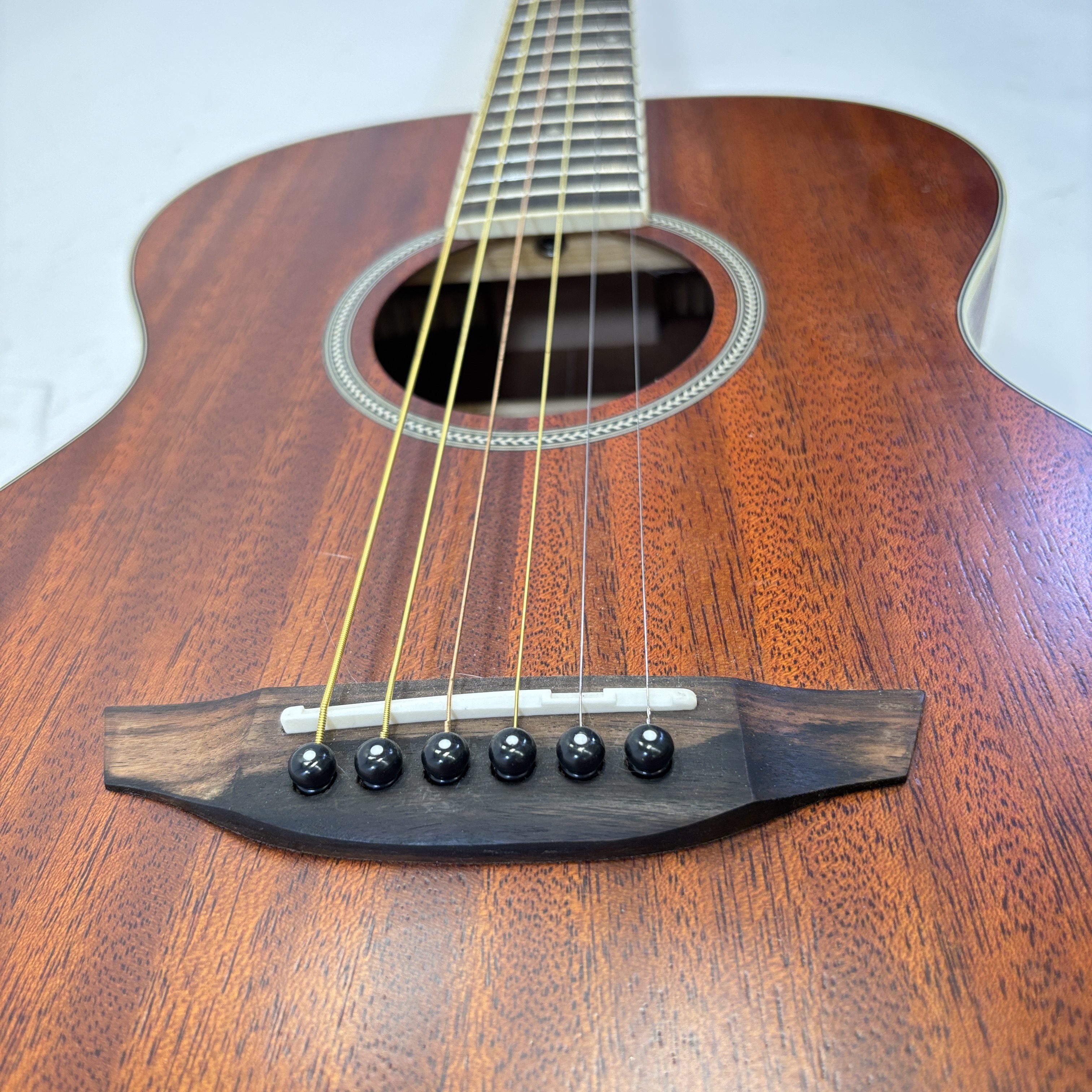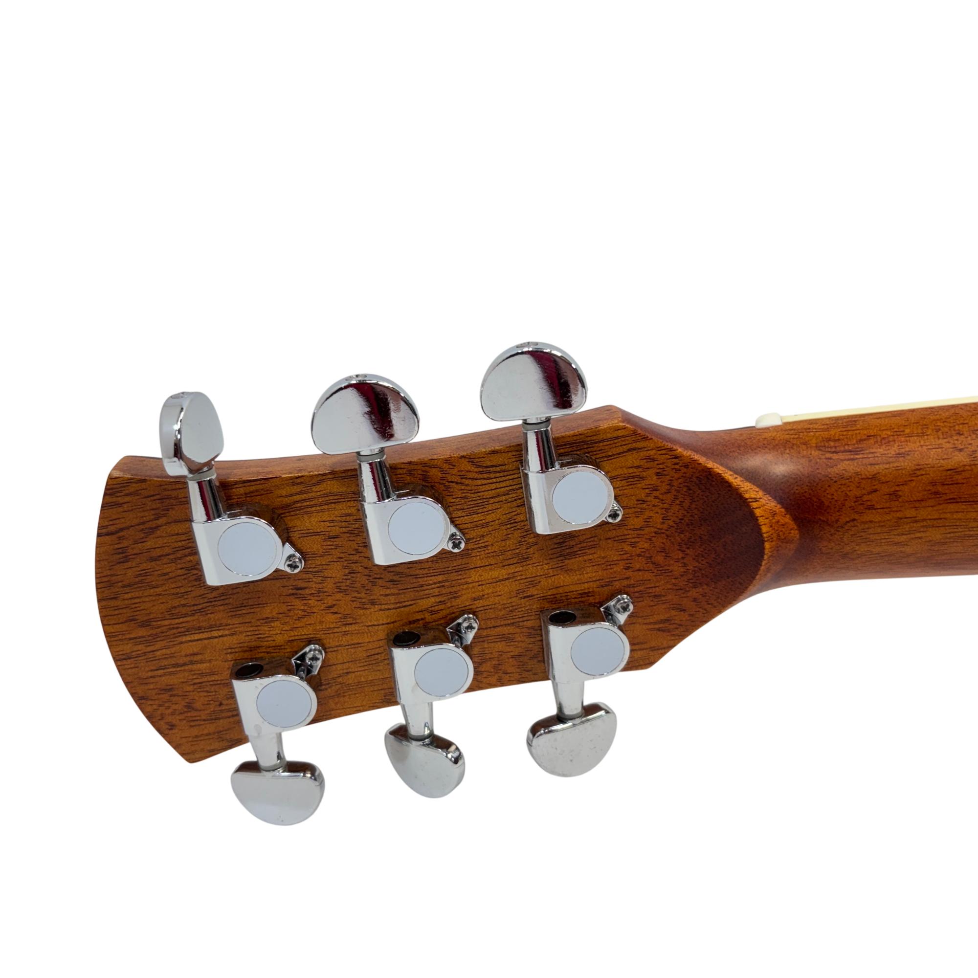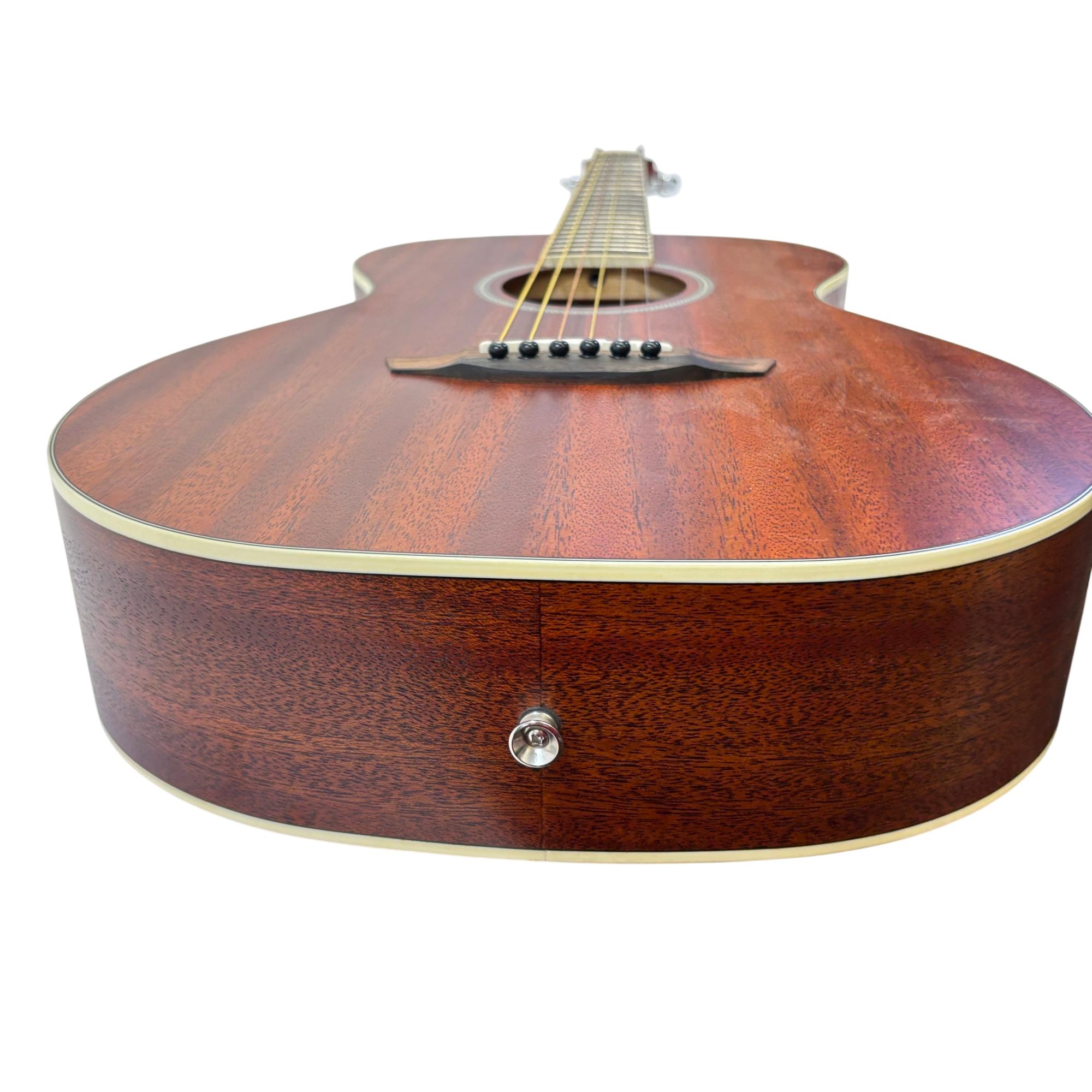 Orangewood Dana Mahogany Mini Travel Acoustic Guitar features a layered mahogany top known for delivering warm, balanced tones ideal for travel and practice. Its compact design and quality craftsmanship make this guitar a reliable choice for musicians seeking portability without sacrificing sound performance.