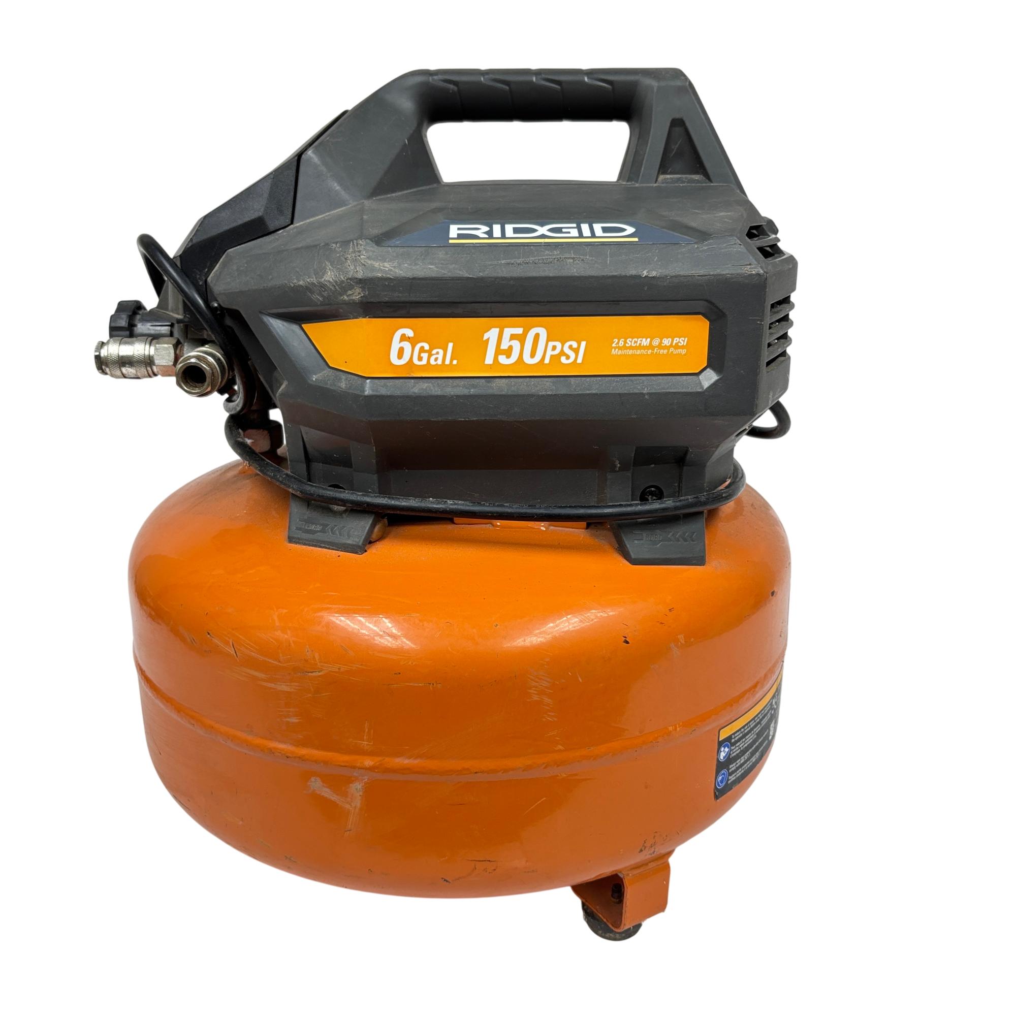The RIDGID 6-Gallon 150 PSI Portable Electric Pancake Air Compressor Model OF60150HA offers reliable, maintenance-free performance with a durable oil-free pump. Designed for portability and efficiency, this compact air compressor delivers up to 150 PSI, making it ideal for various jobsite tasks. Its sturdy construction and convenient size ensure easy transport and dependable operation in demanding work environments.