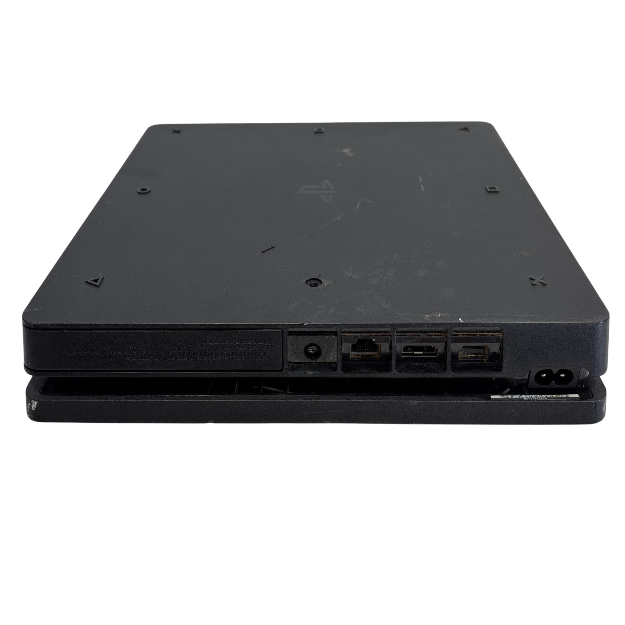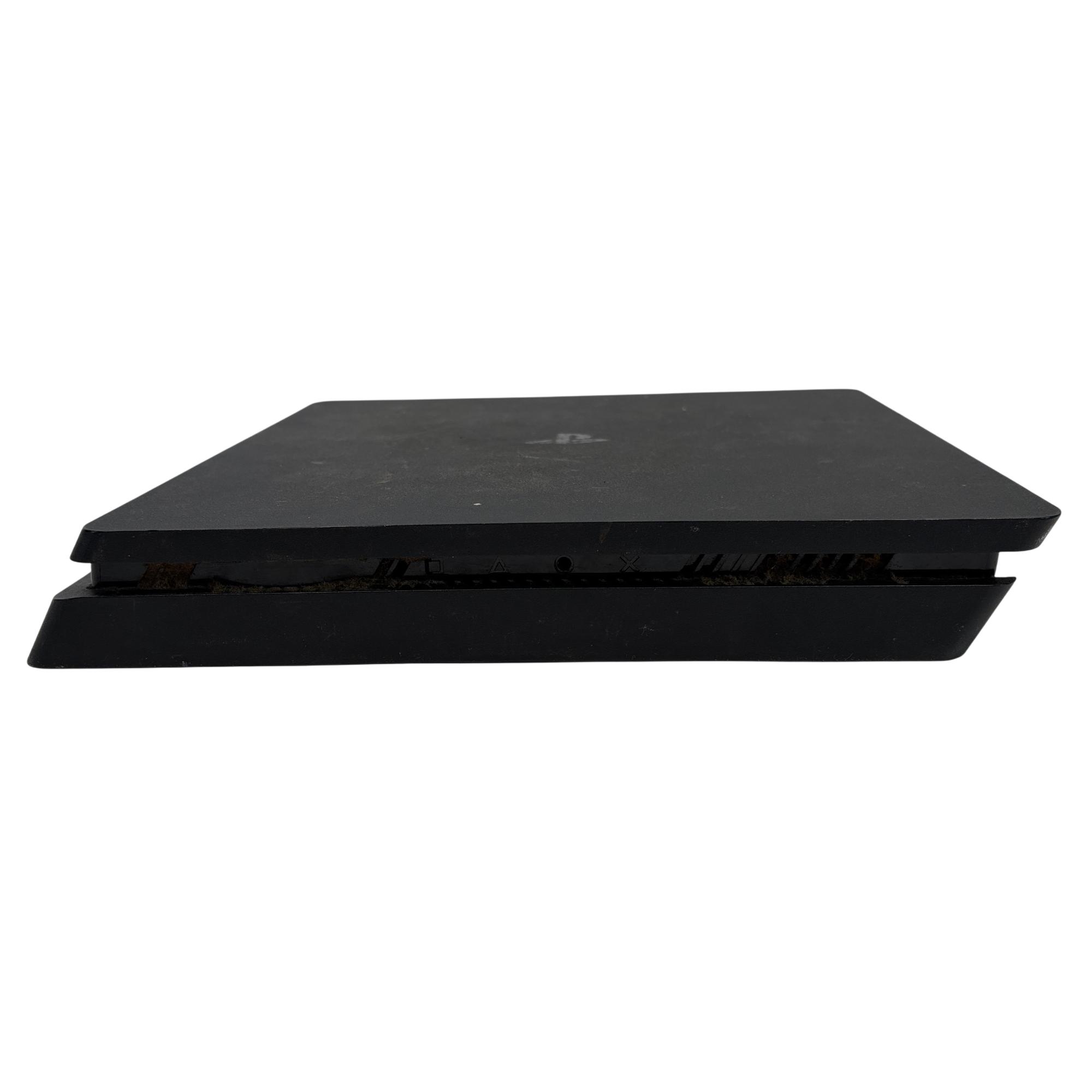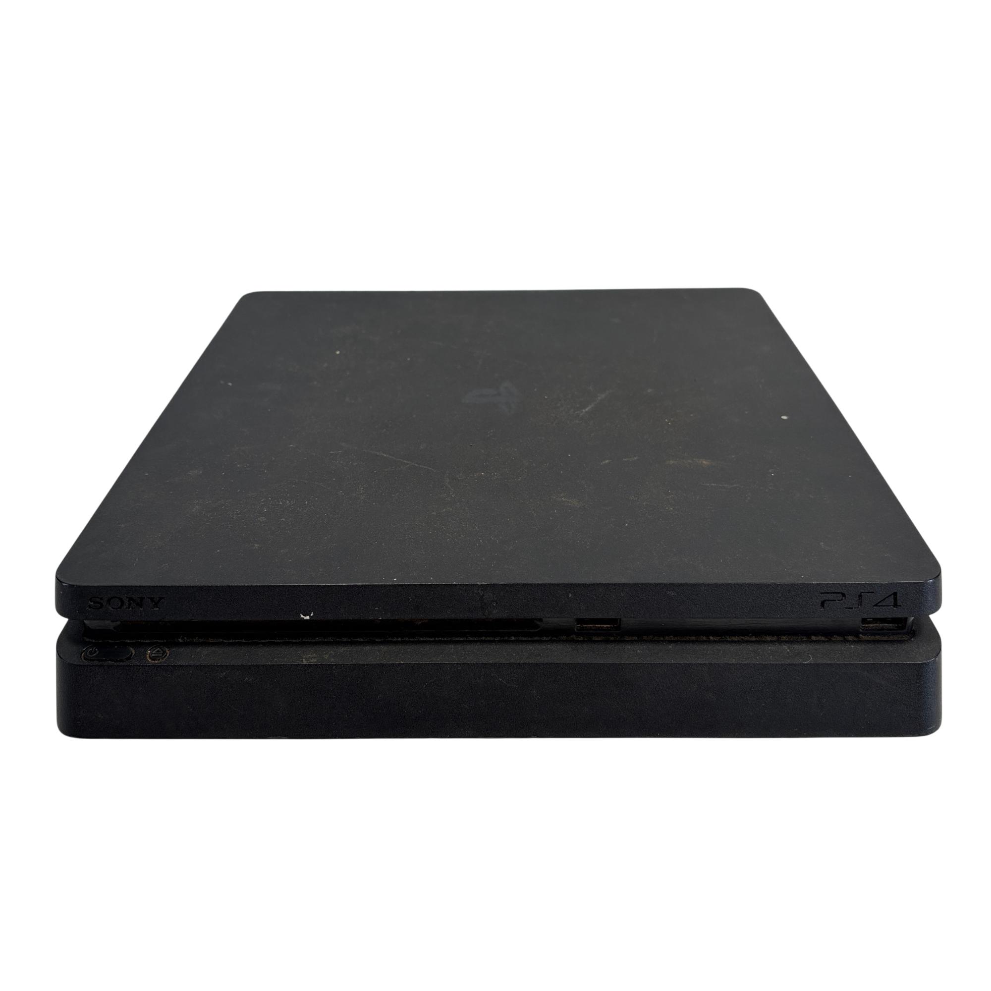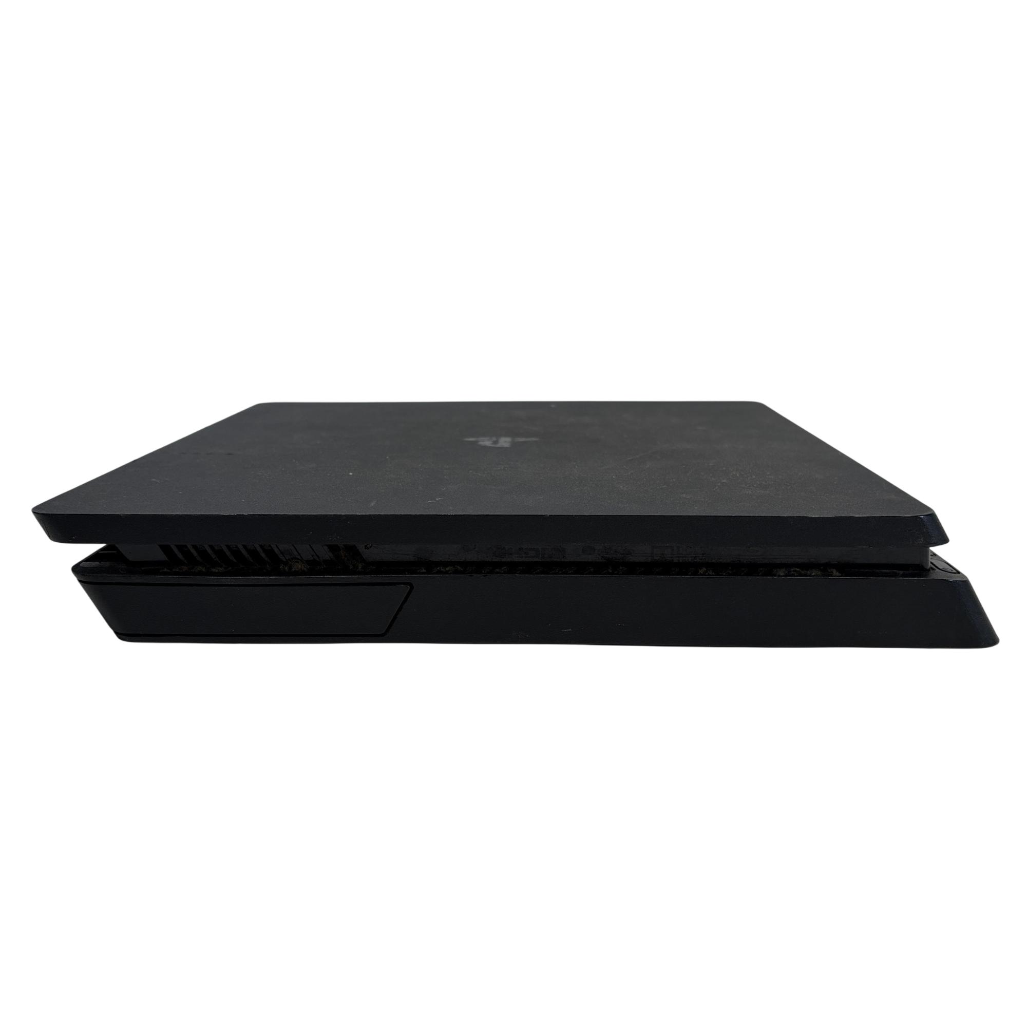 The Sony PlayStation 4 Slim CUH-2015A offers a sleek, compact design with enhanced cooling and a quieter operation compared to its predecessors. This black rectangular device features a 500GB hard drive and supports high-speed HDMI connectivity, delivering smooth gameplay and vibrant graphics for an immersive gaming experience.