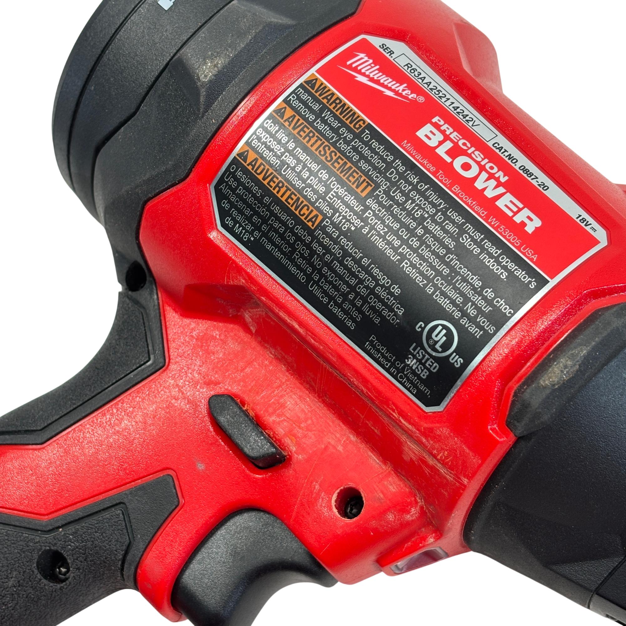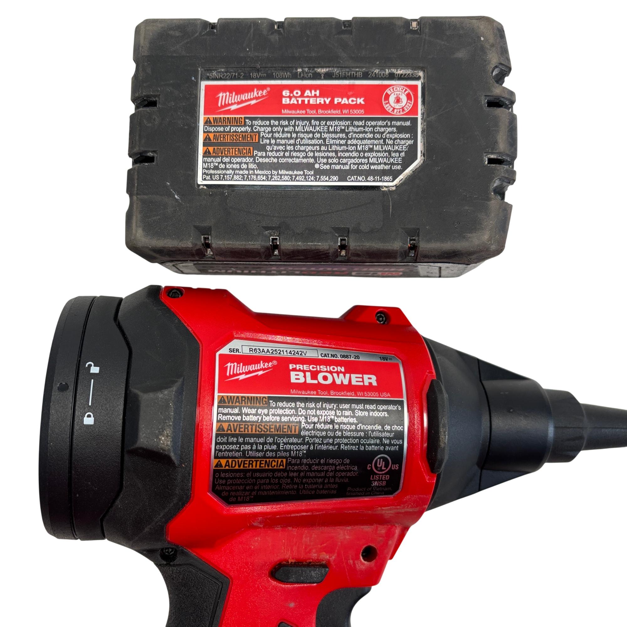 The Milwaukee 0887-20 M18 Brushless Cordless Precision Blower delivers up to 570 MPH airflow for efficient debris clearing and workspace cleanup. This high-performance tool features a brushless motor and includes a Milwaukee REDLITHIUM High Output XC6.0 battery, ensuring maximum power and durability for demanding tasks.
