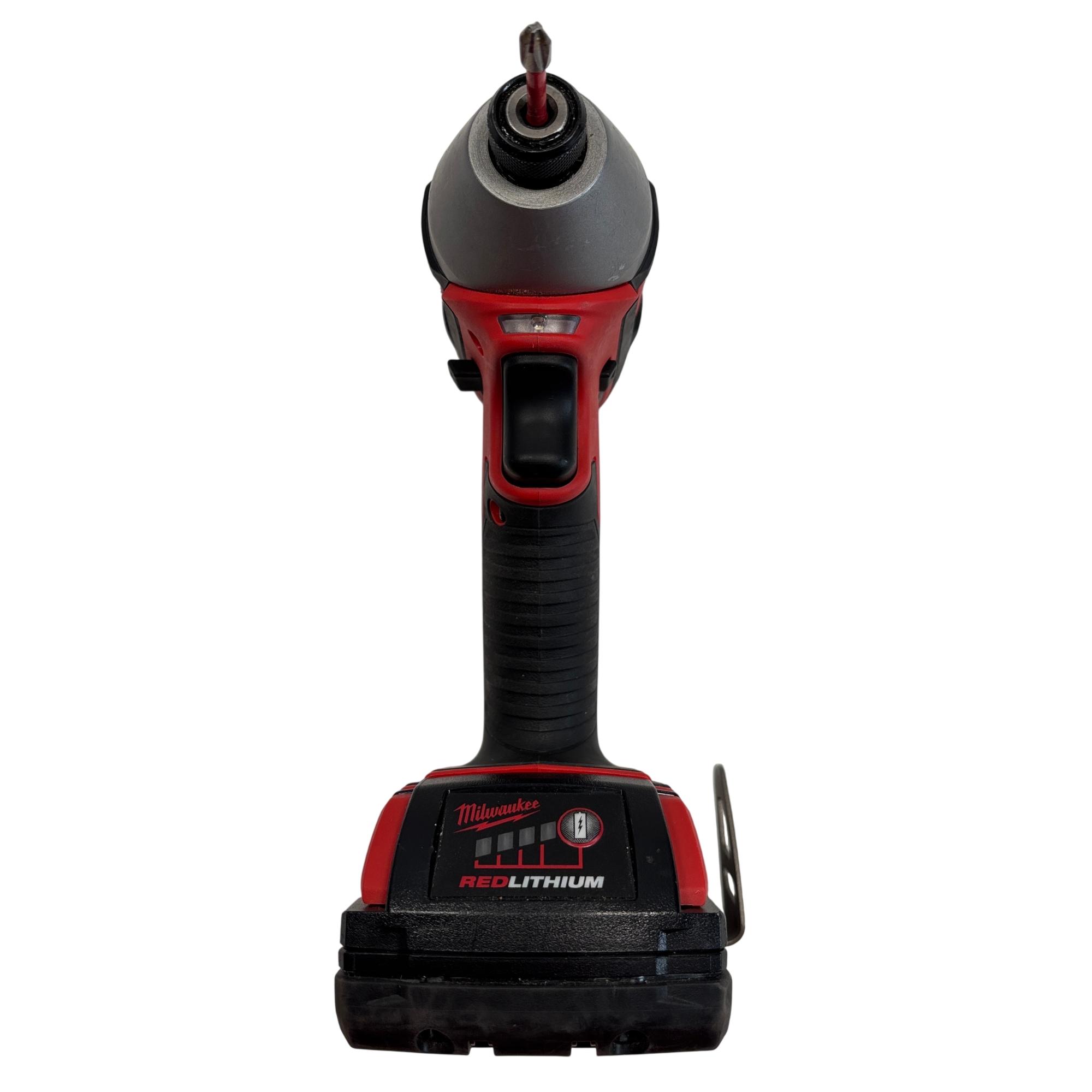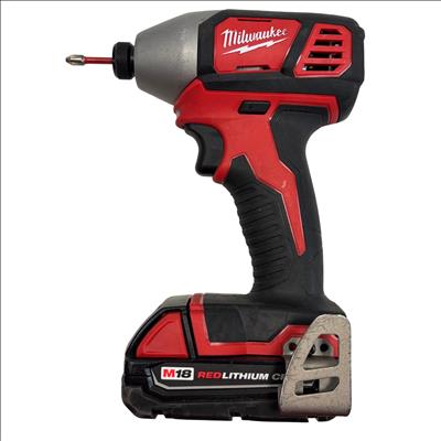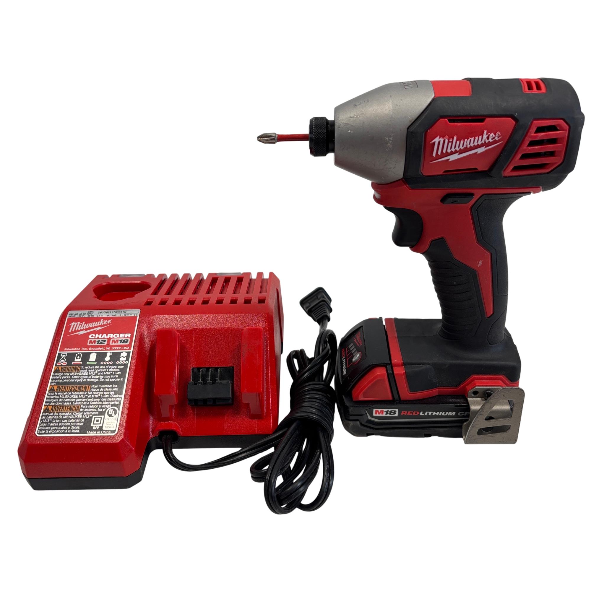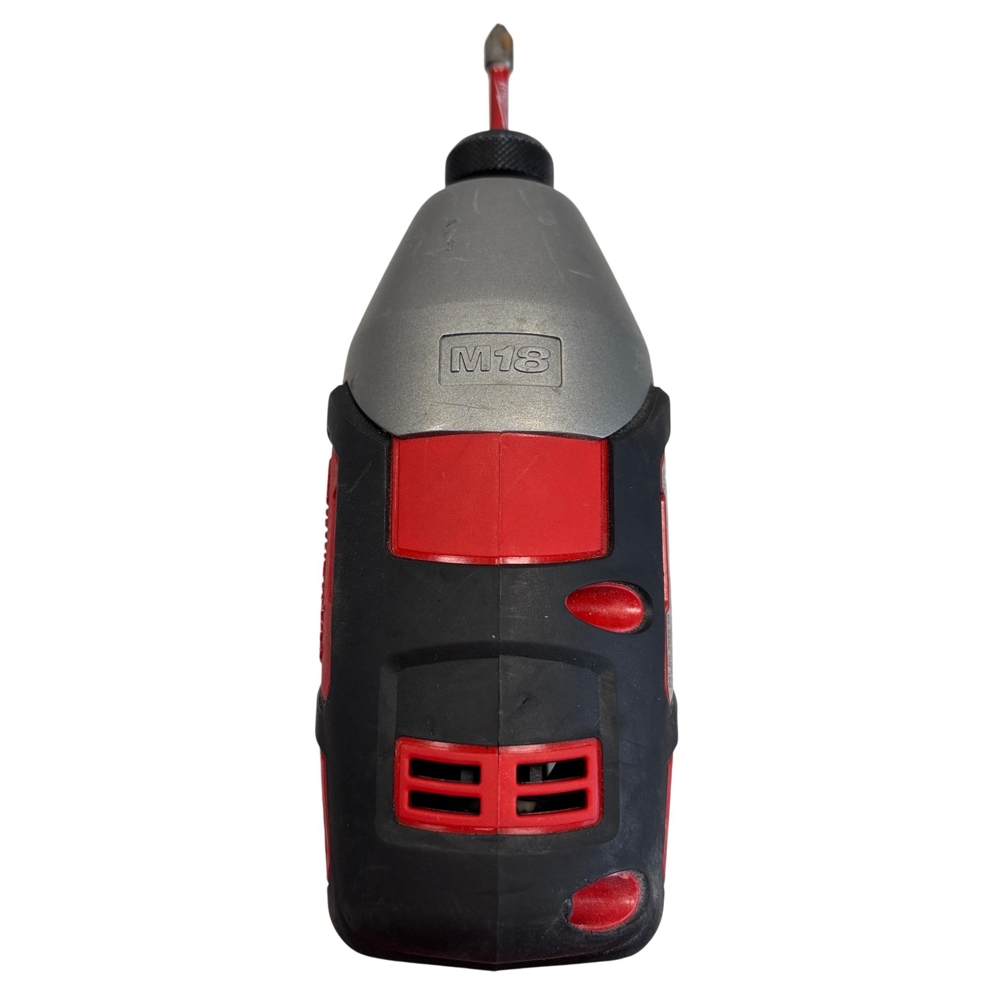 The Milwaukee 2656-20 M18 Cordless 1/4" Hex Impact Driver delivers powerful performance with its compact design. This cordless impact driver features an ergonomic red and black body for comfortable handling and precise control, making it ideal for fastening and drilling applications in tight spaces.