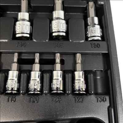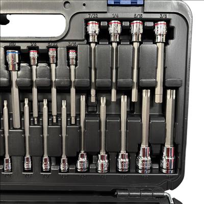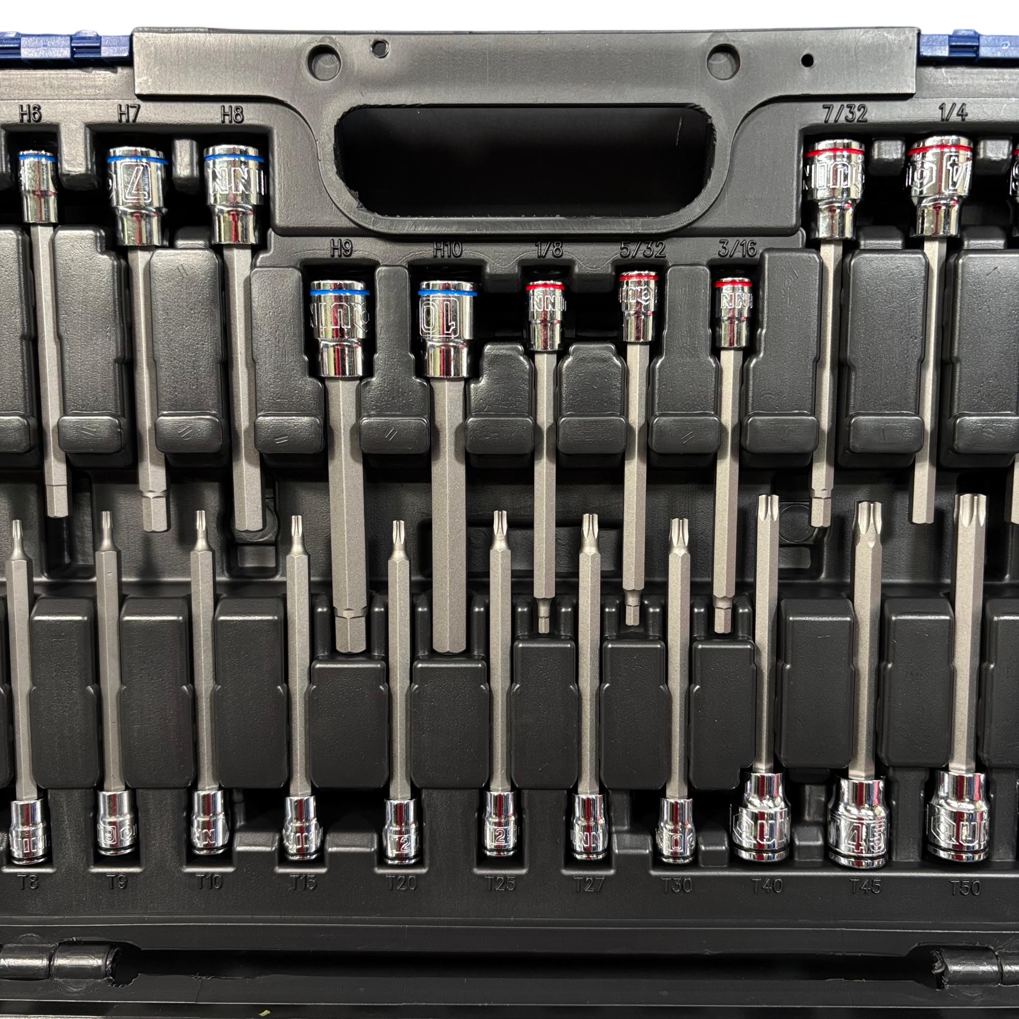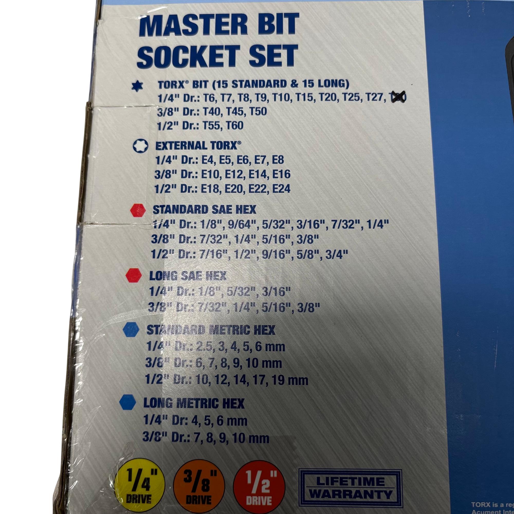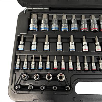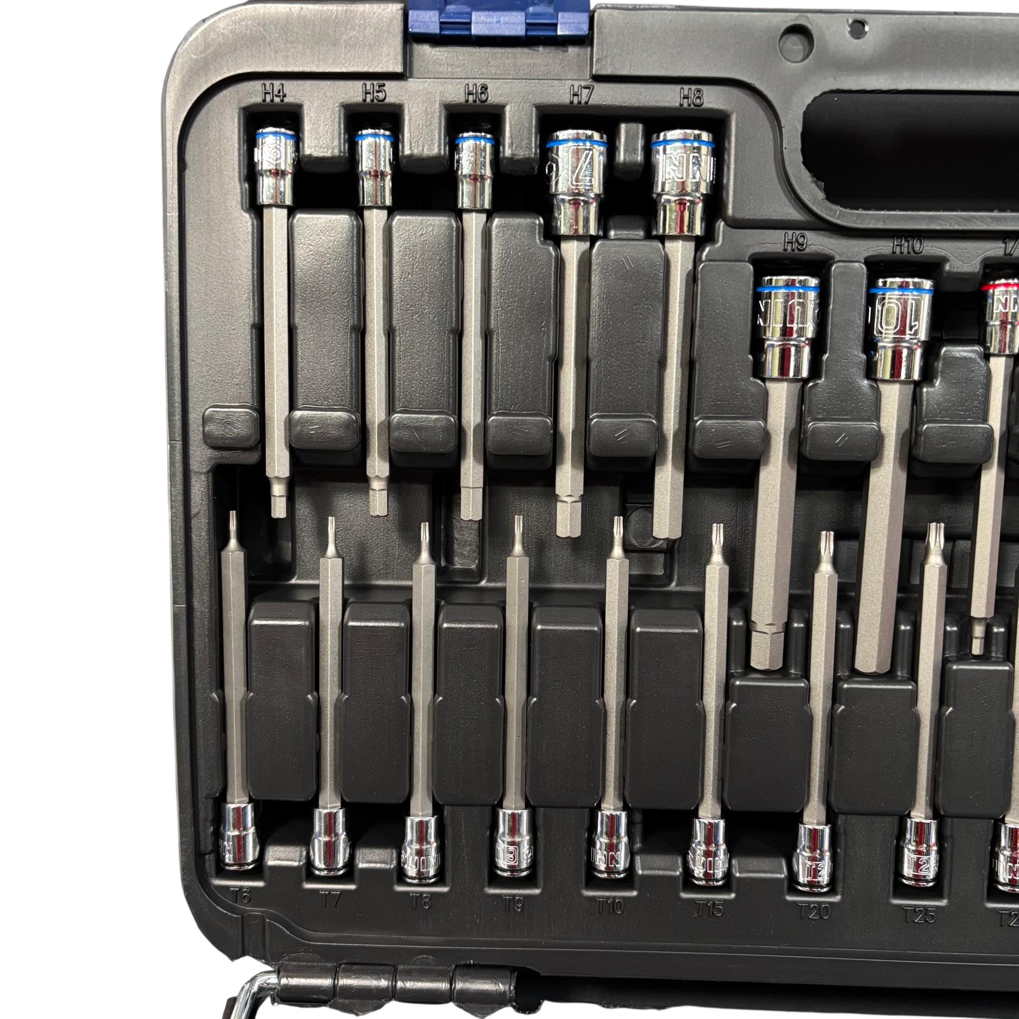 QUINN 87-Piece Master Bit Socket Set (Item 70347) offers a comprehensive collection of SAE and metric bits designed for versatility and durability. This set features a wide range of TORX, hex, and external bit sockets in multiple drive sizes, making it ideal for professional mechanics and DIY enthusiasts seeking precise fitting tools.