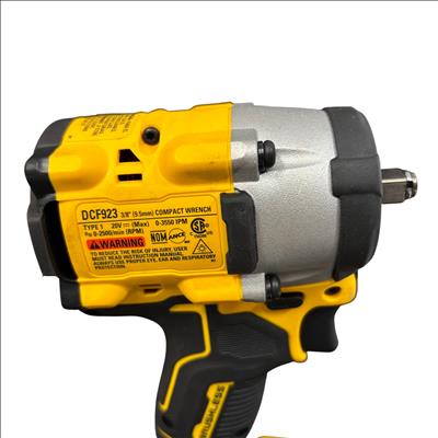 DeWalt DCF923 20V MAX XR Brushless 3/8" Compact Impact Wrench delivers high performance with a brushless motor designed for increased runtime and durability. This compact tool offers variable speed control up to 2500 RPM and an impact rate up to 3550 IPM, making it ideal for fastening applications in tight spaces. Its ergonomic design ensures comfortable use, while the 3/8 inch drive enhances versatility for various tasks.