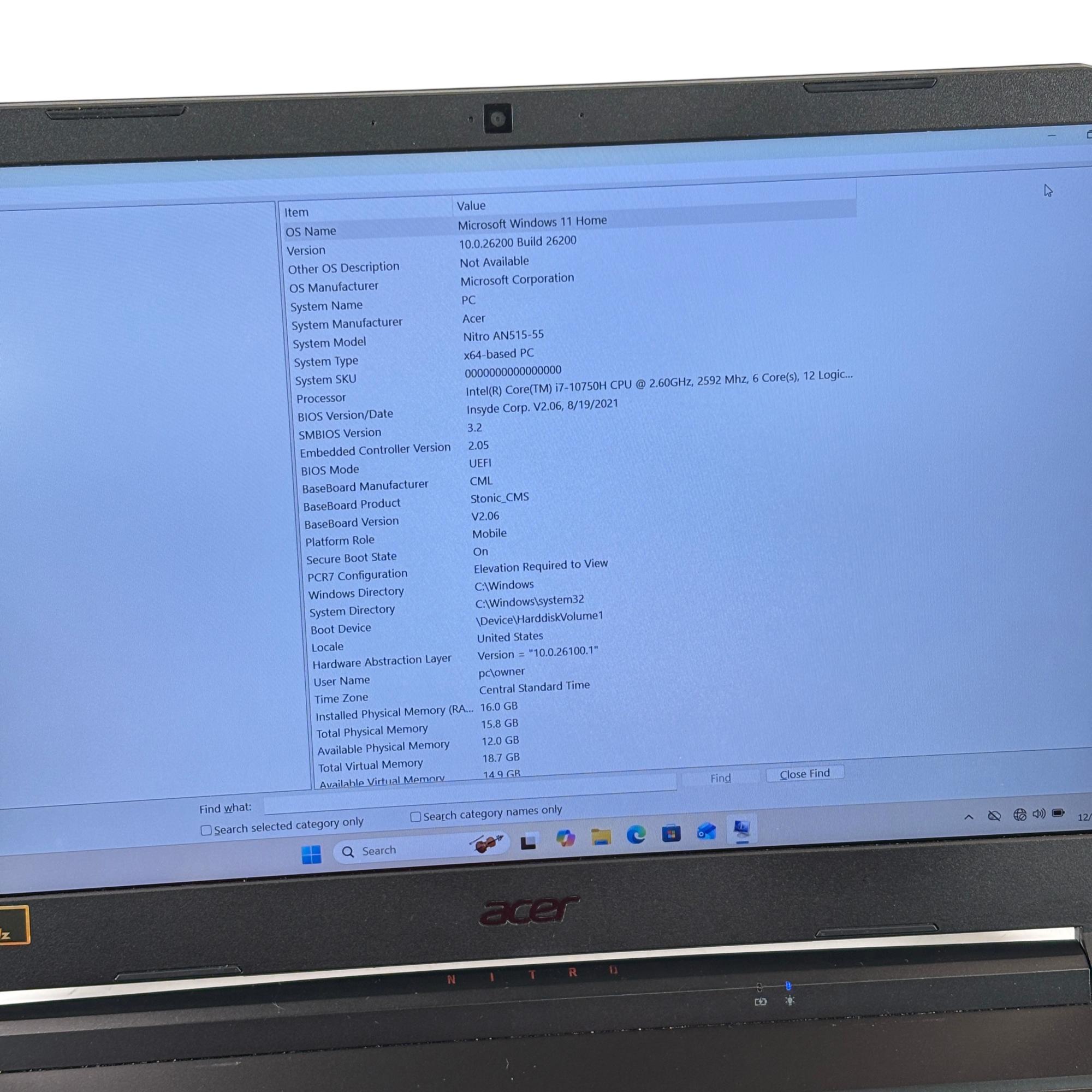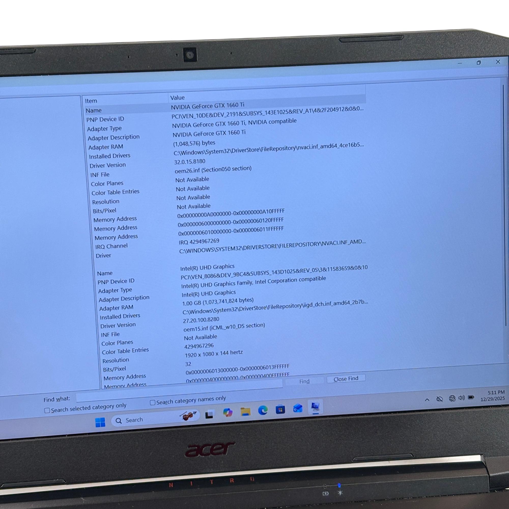 Acer Nitro 5 AN515-55-77U1 laptop running Windows 11 with an Intel Core i7-10750H 2.6GHz processor, GTX 1660 Ti graphics, 16GB of RAM, and a 1TB hard drive paired with a 256GB solid state drive. Features a 15.6-inch display and includes Wi-Fi, Bluetooth, Ethernet, AUX, HDMI, and USB-C connectivity for gaming, work, and everyday use.