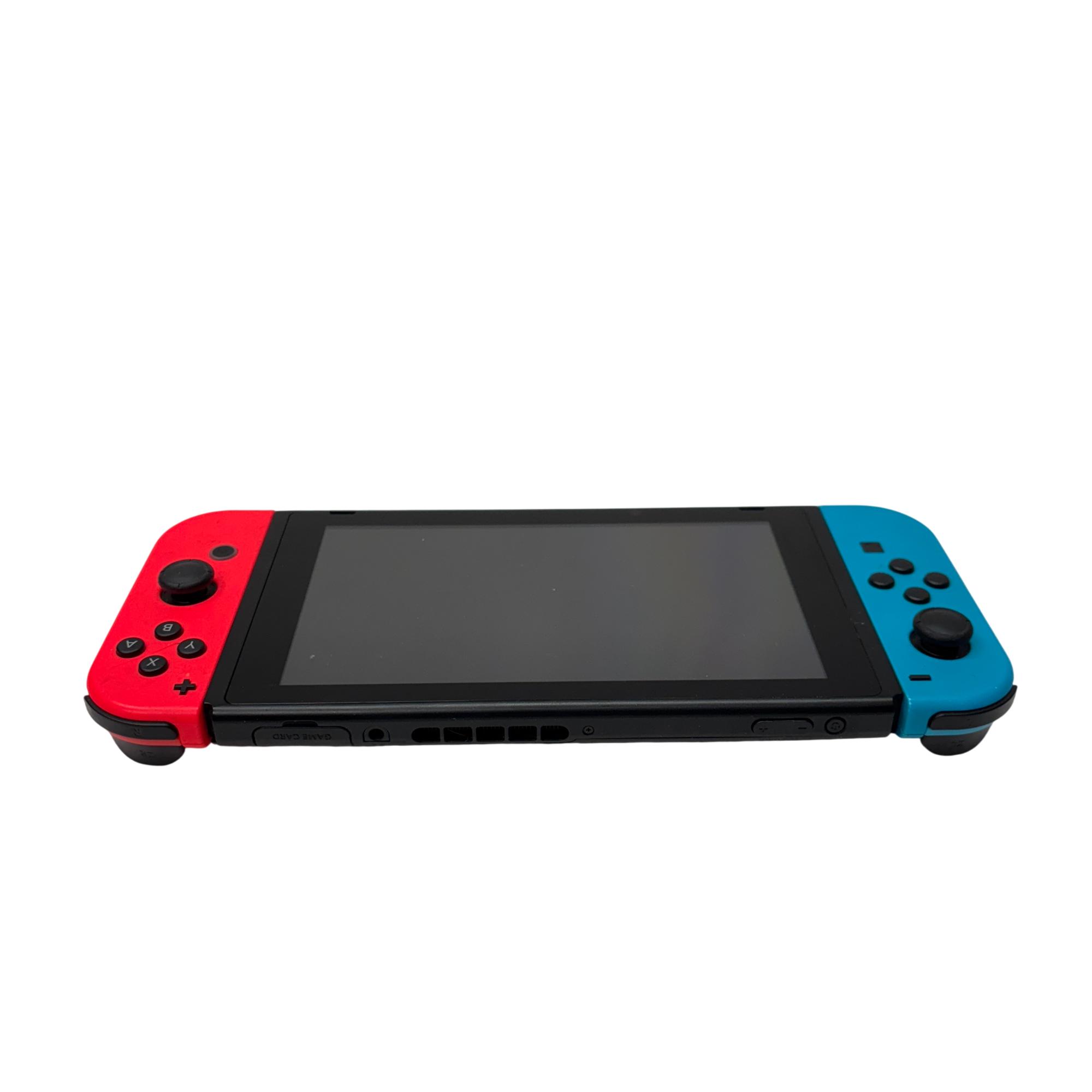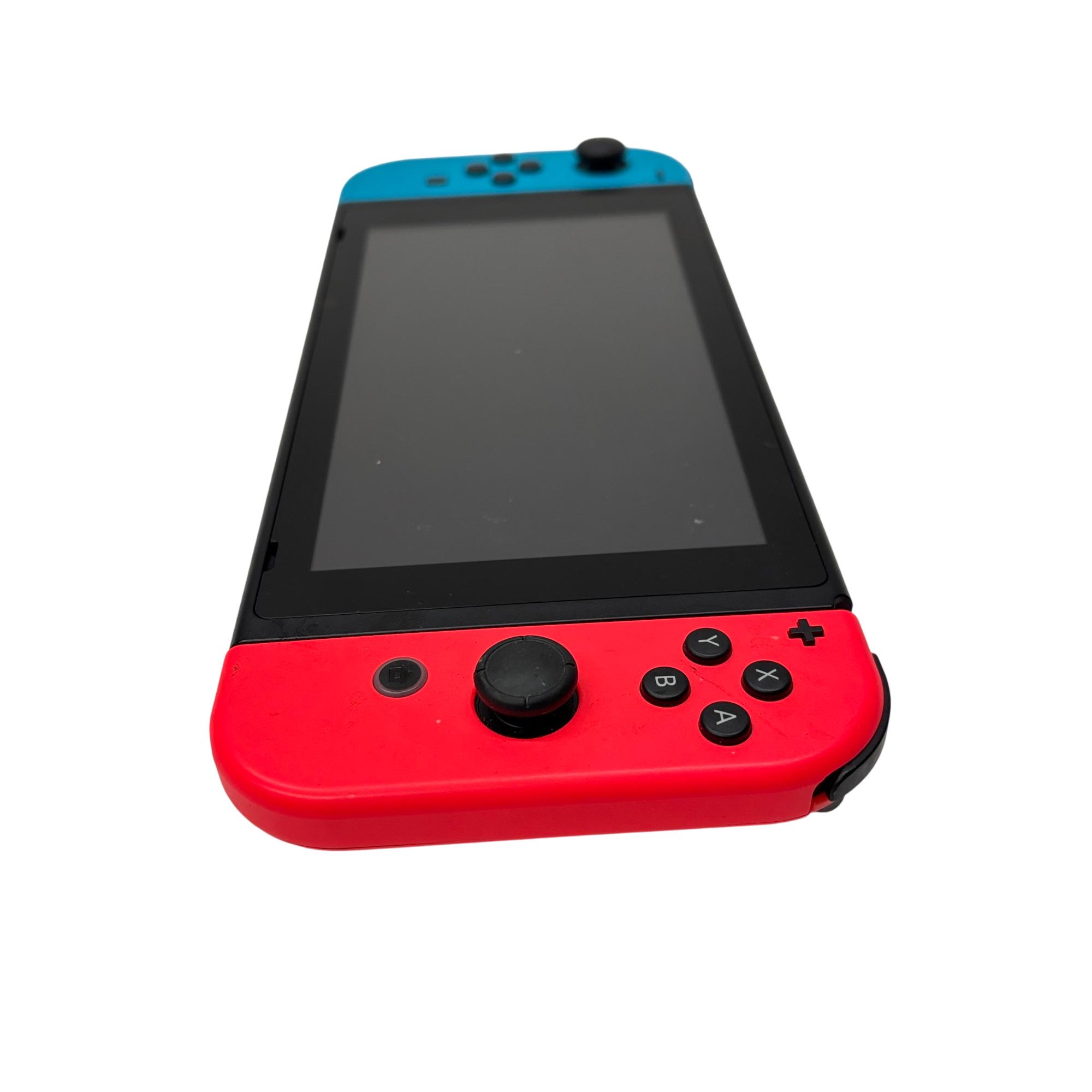 Nintendo Switch HAC-001(-01) Neon Blue and Neon Red Joy-Con 32GB Console features a versatile handheld gaming design with vibrant neon blue and red controllers. This mobile video game console offers an immersive gaming experience with a 32GB internal storage capacity and seamless connectivity options, making it ideal for gaming on the go or docked play.