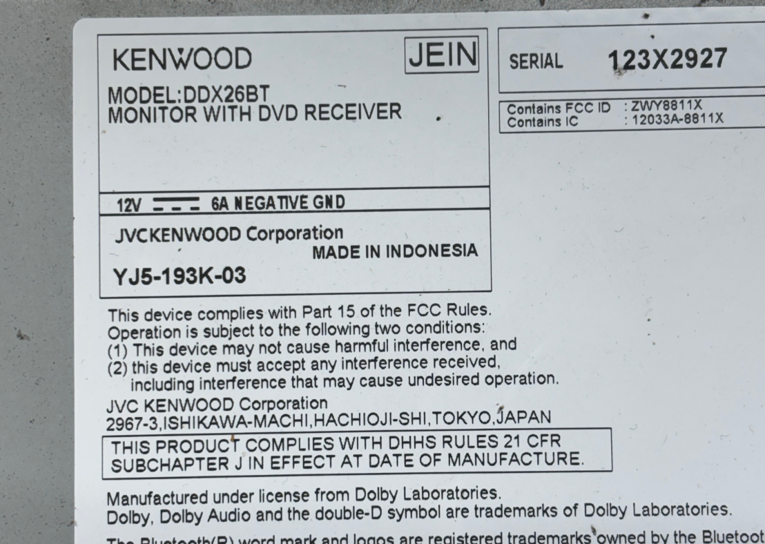 Kenwood DDX26BT 6.2" 2-DIN In-Dash Car DVD Receiver