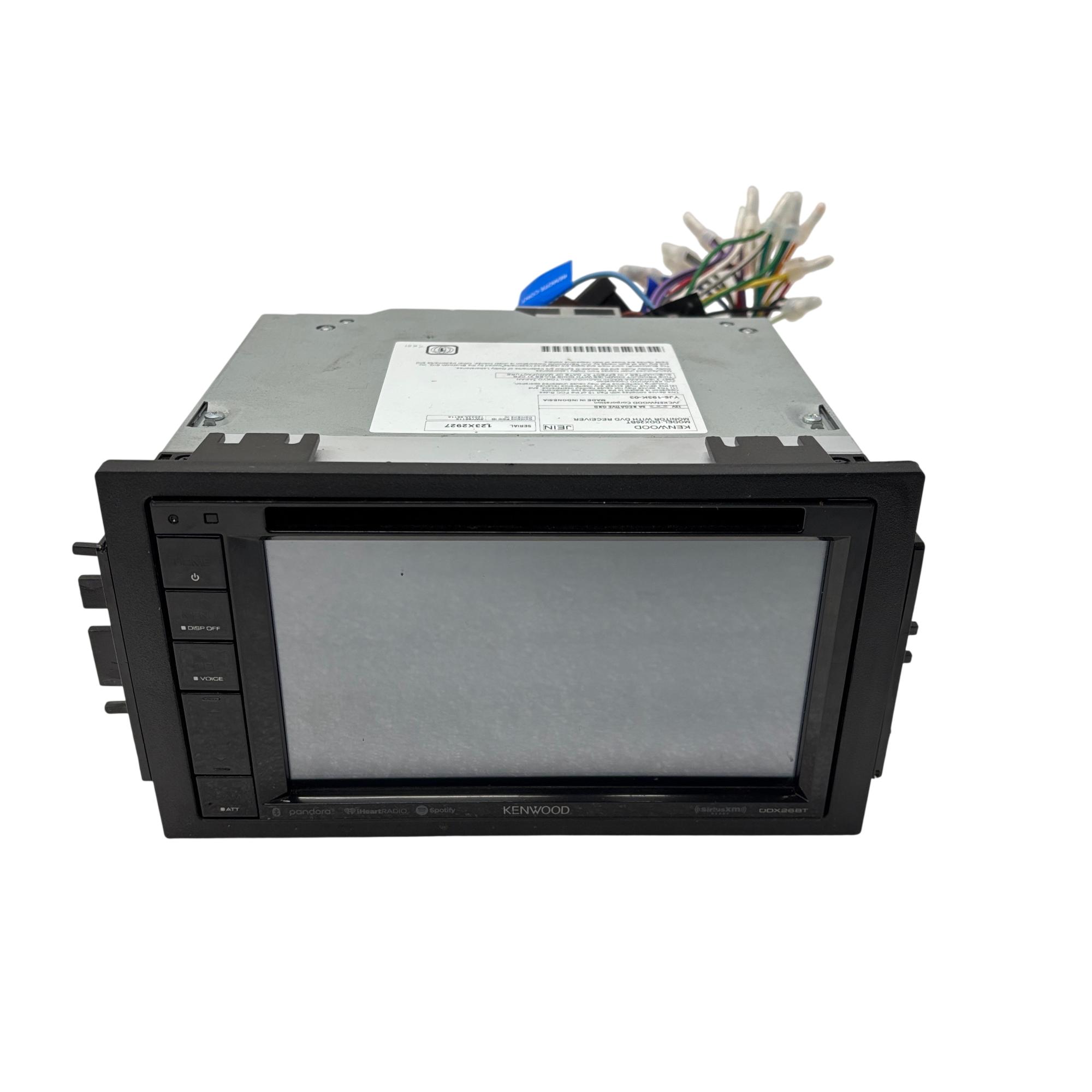 Kenwood DDX26BT 6.2" 2-DIN In-Dash Car DVD Receiver with Bluetooth features a clear resistive touchscreen display designed for easy control and multimedia playback. This car stereo supports DVD playback and Bluetooth connectivity, enabling wireless audio streaming and hands-free calling. It includes a built-in AM/FM tuner and integrates with popular music apps for an enhanced in-car entertainment experience.