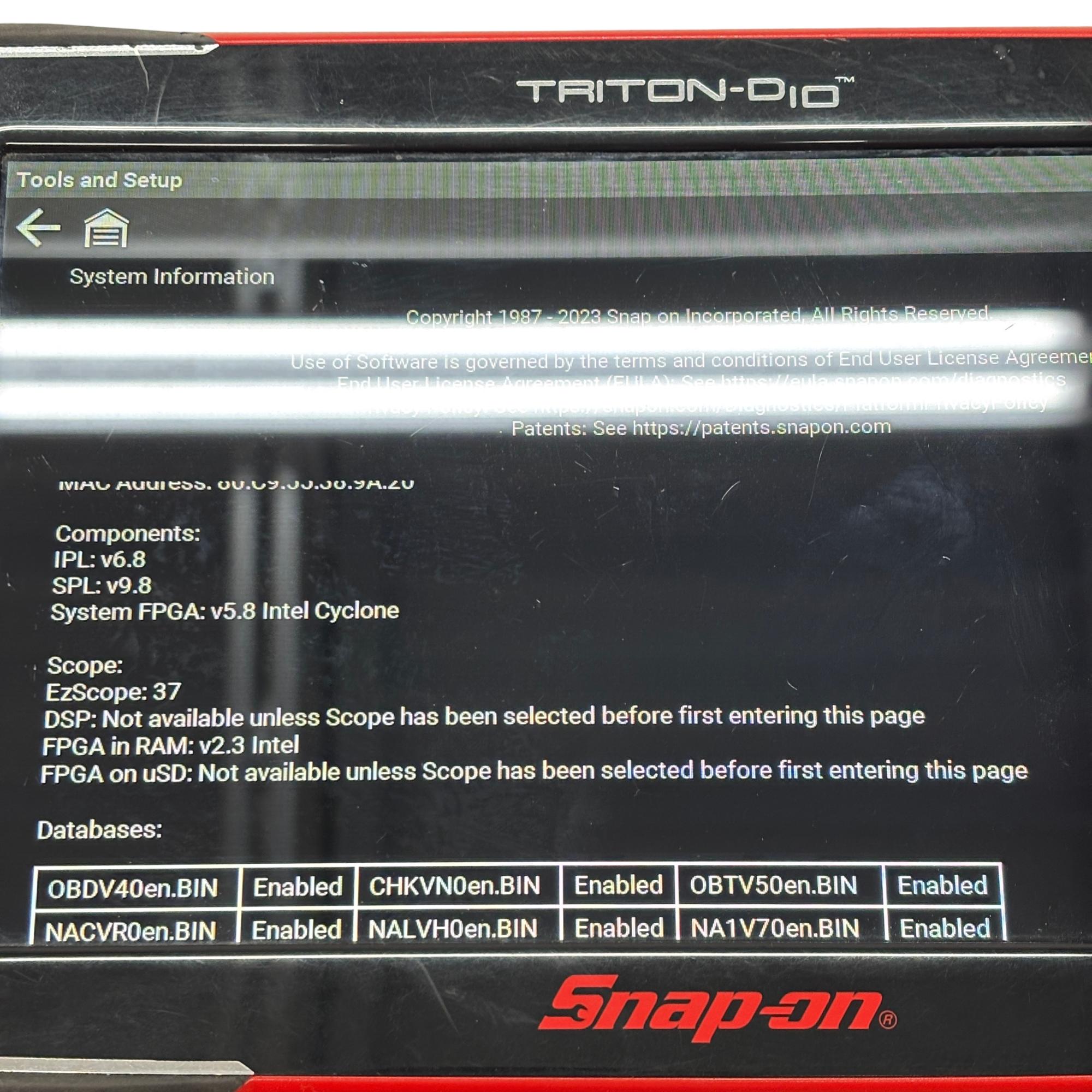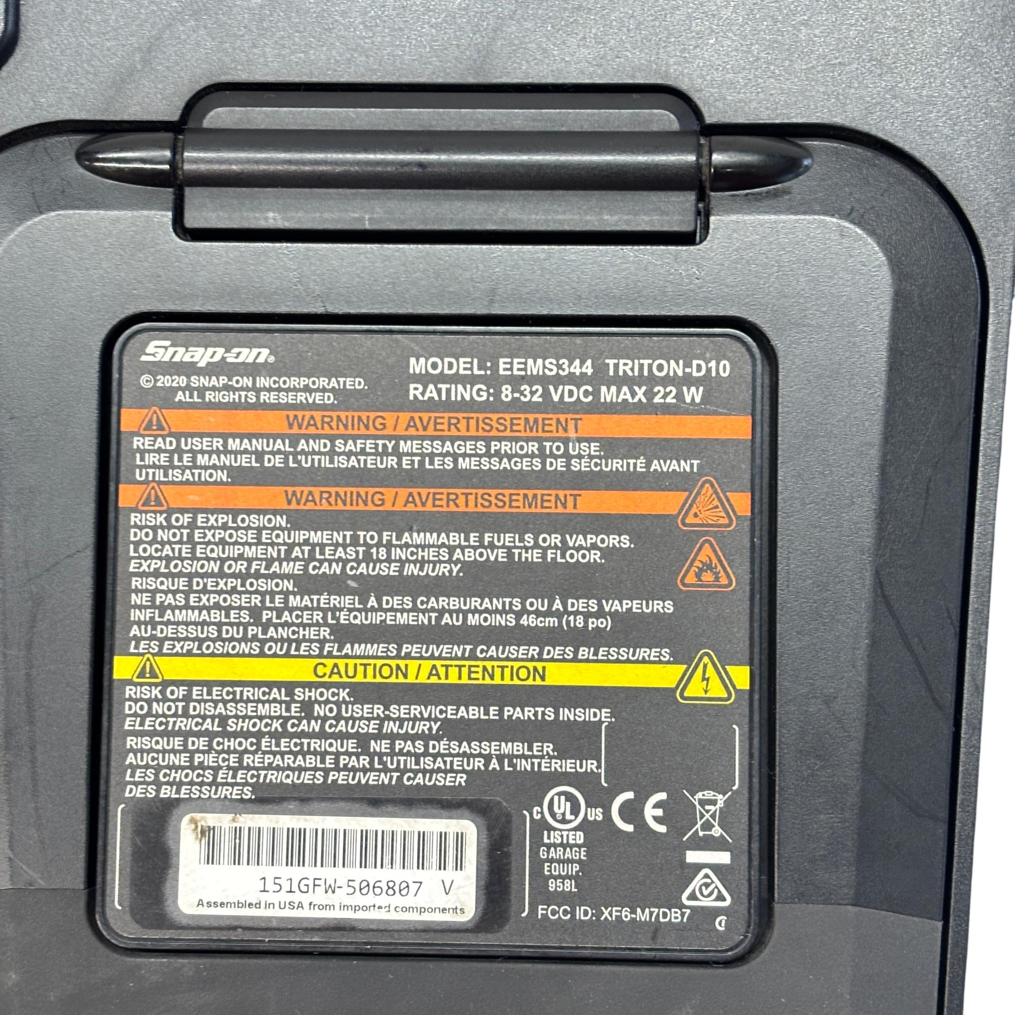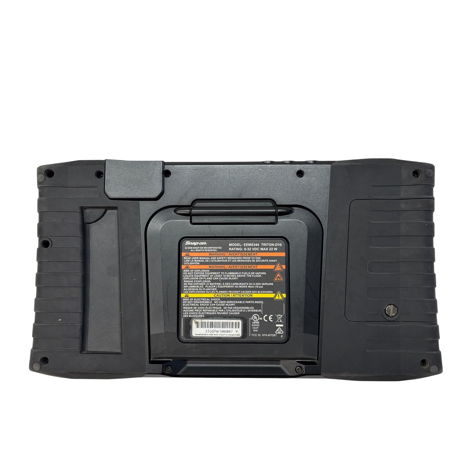 Snap-on TRITON-D10 EEMS344 Automotive Diagnostic Scanner & Scope is a professional-grade diagnostic device designed for comprehensive vehicle system analysis. Featuring an integrated scope and guided component tests, it supports OBD-II/EOBD protocols to quickly identify and diagnose automotive issues with precise data and intuitive interface.