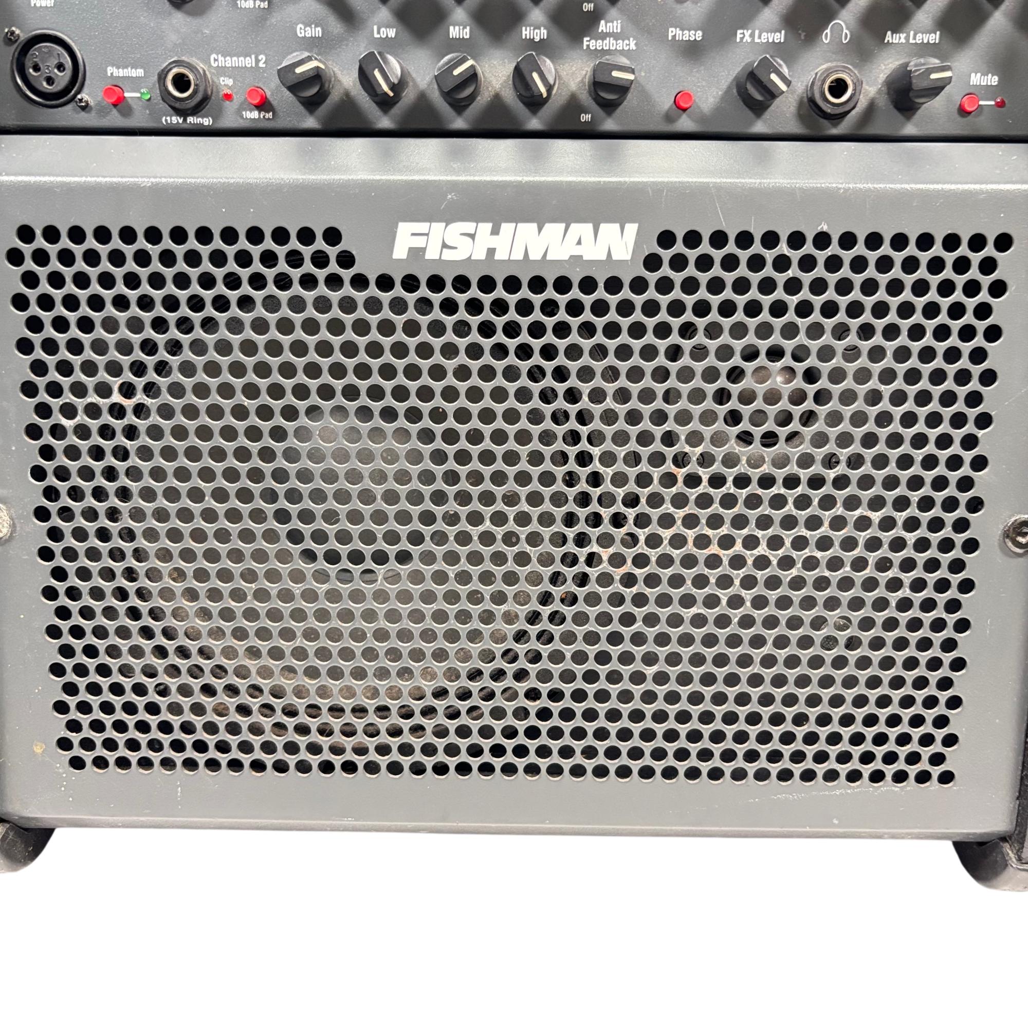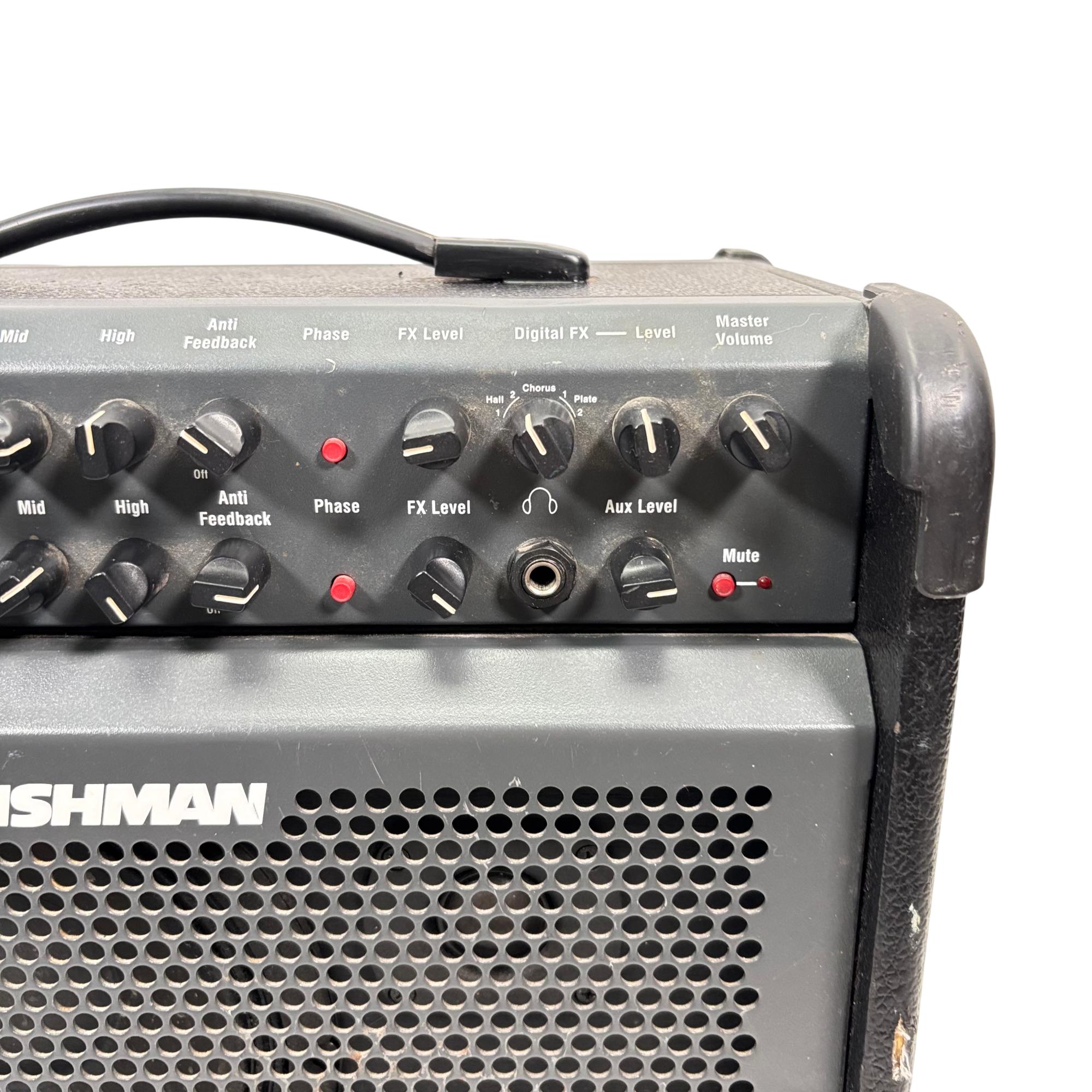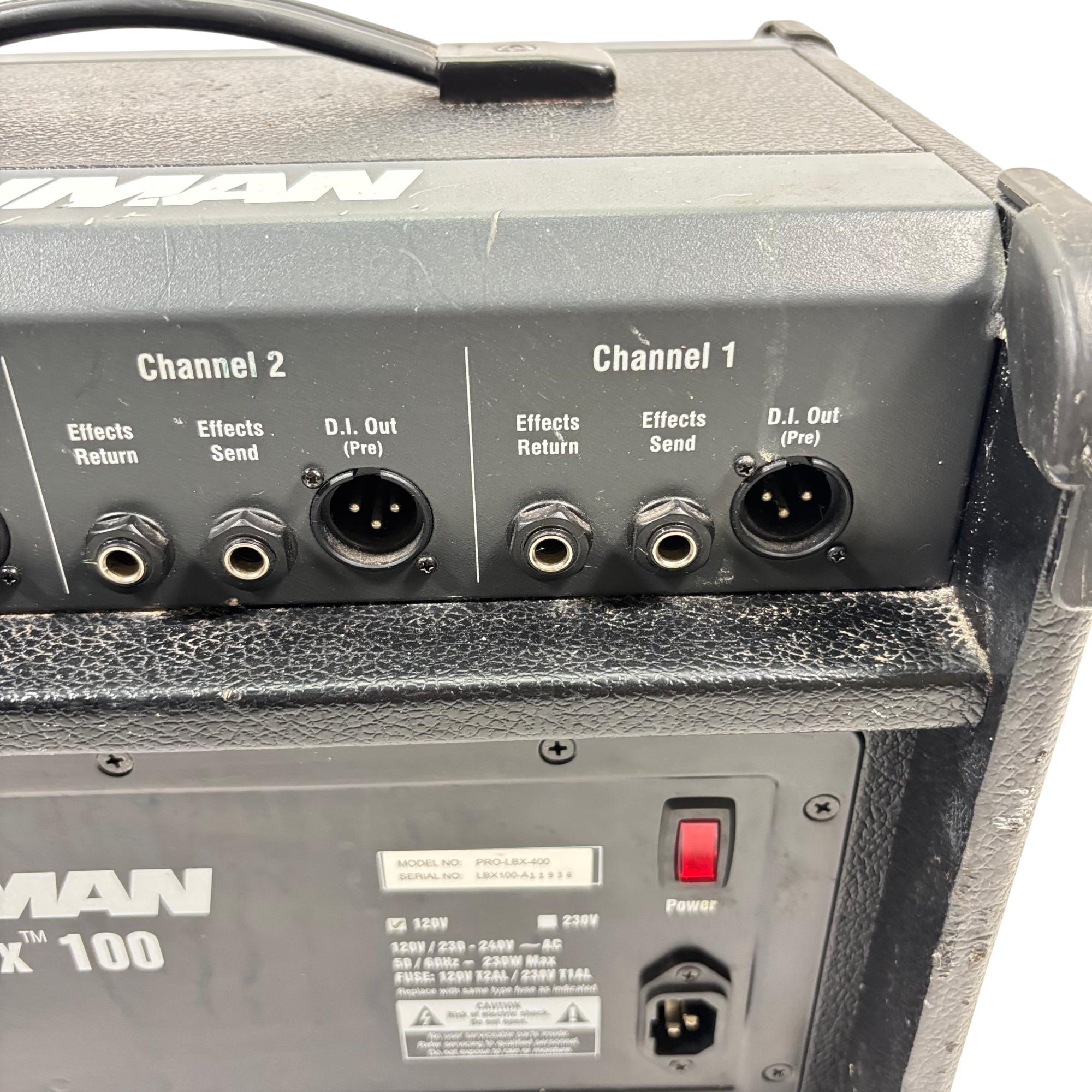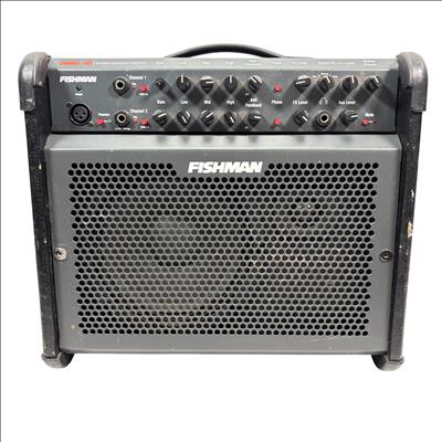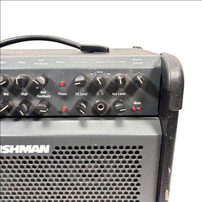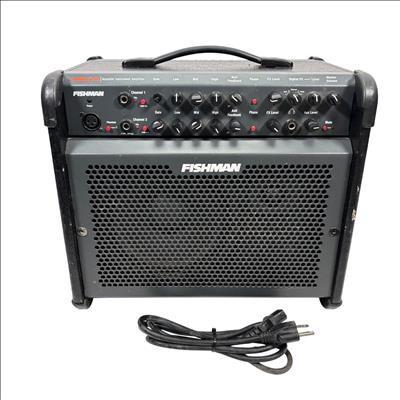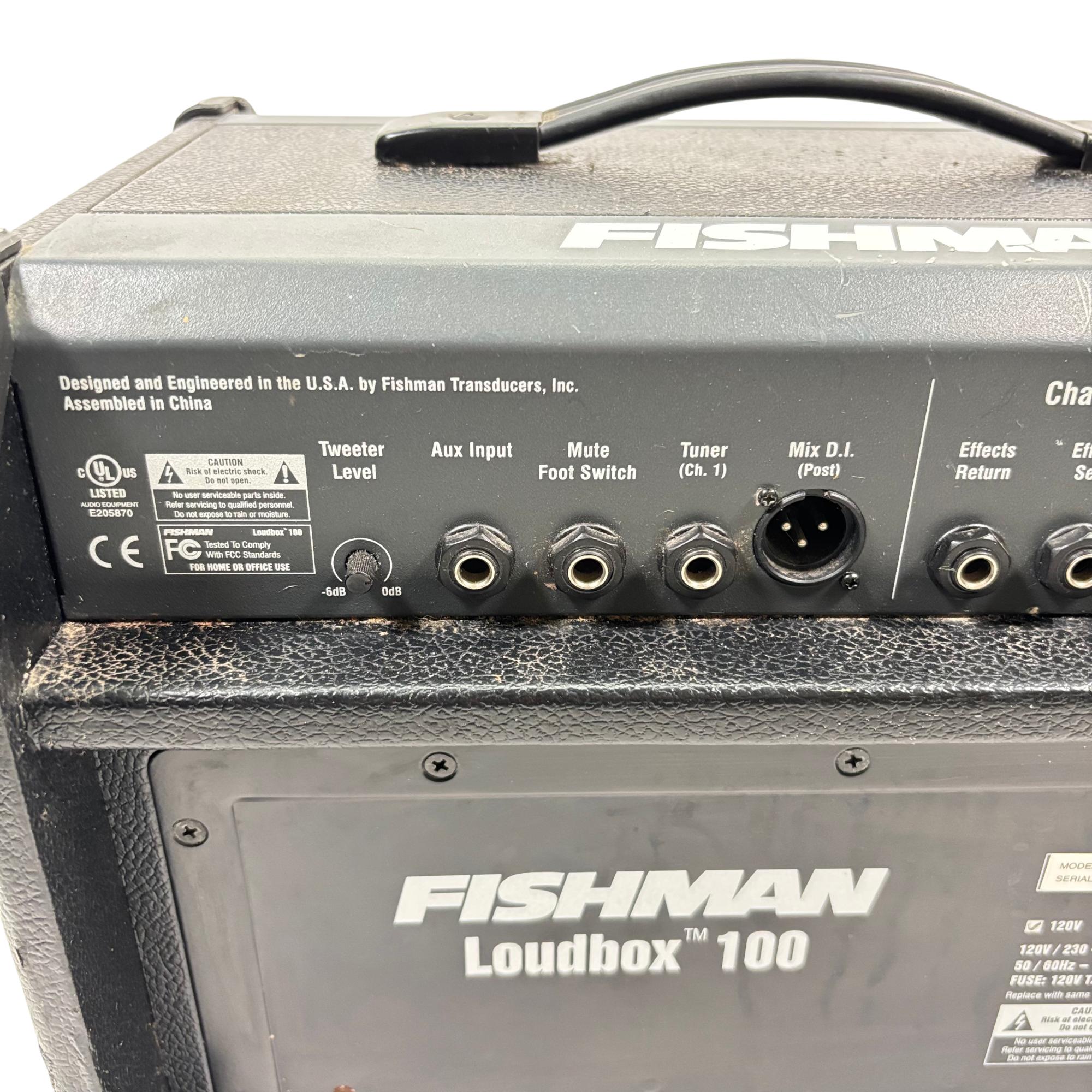 Fishman Loudbox 100 Acoustic Instrument Amplifier, Model PRO-LBX-400 delivers 100 watts of clear, powerful sound tailored for acoustic instruments and vocals. It features a detailed control panel with gain, EQ, feedback suppression, and digital effects, providing versatile tone-shaping in a compact, rugged design ideal for live performances and studio use.