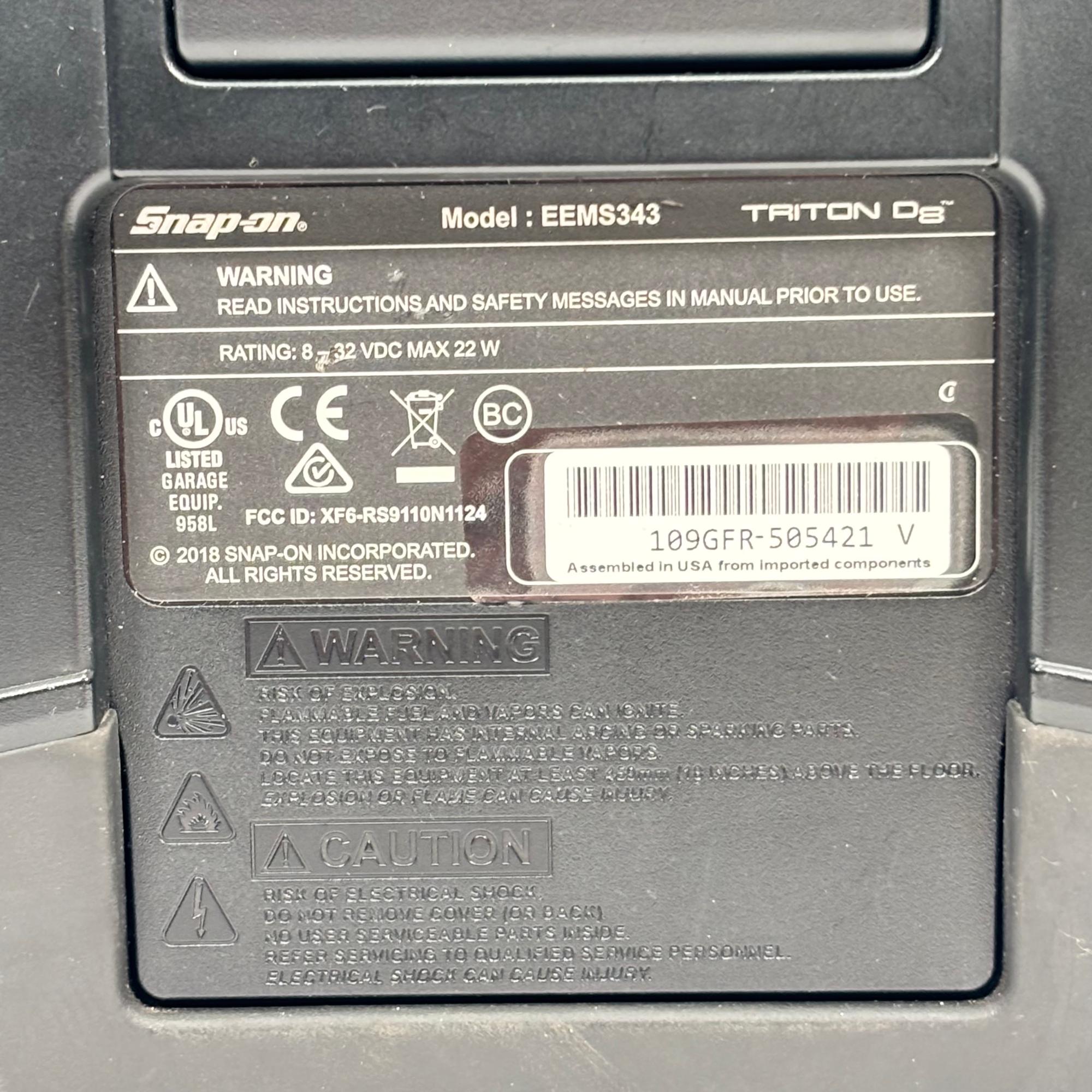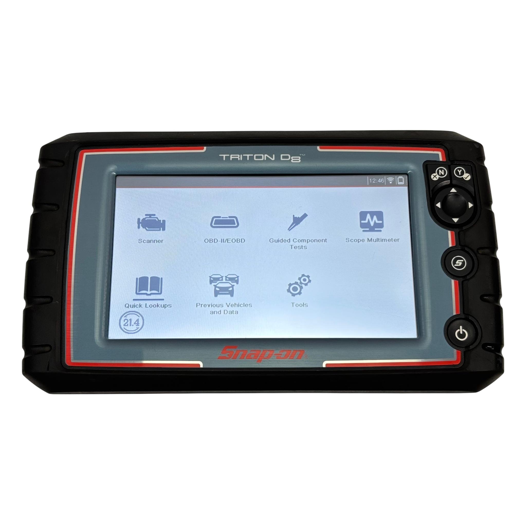 Snap-on TRITON D8 Diagnostic Scanner Model EEMS343 is a professional-grade automotive diagnostic tool designed for quick and accurate vehicle troubleshooting. Featuring guided component tests, multimeter functions, and OBD II/EOBD compatibility, this device supports in-depth diagnostics across a wide range of vehicles with an intuitive interface and durable black casing. Its advanced scanning capabilities streamline data retrieval and analysis for mechanics and automotive technicians.
