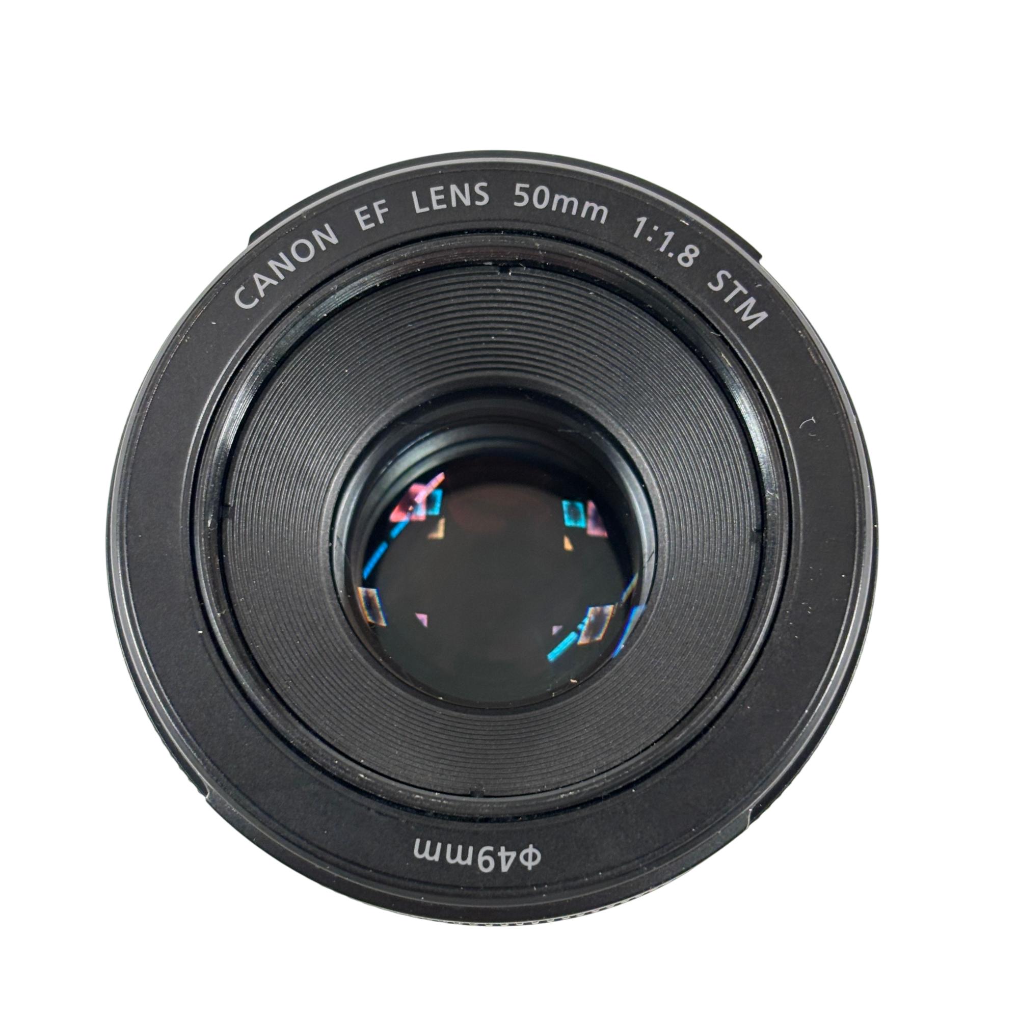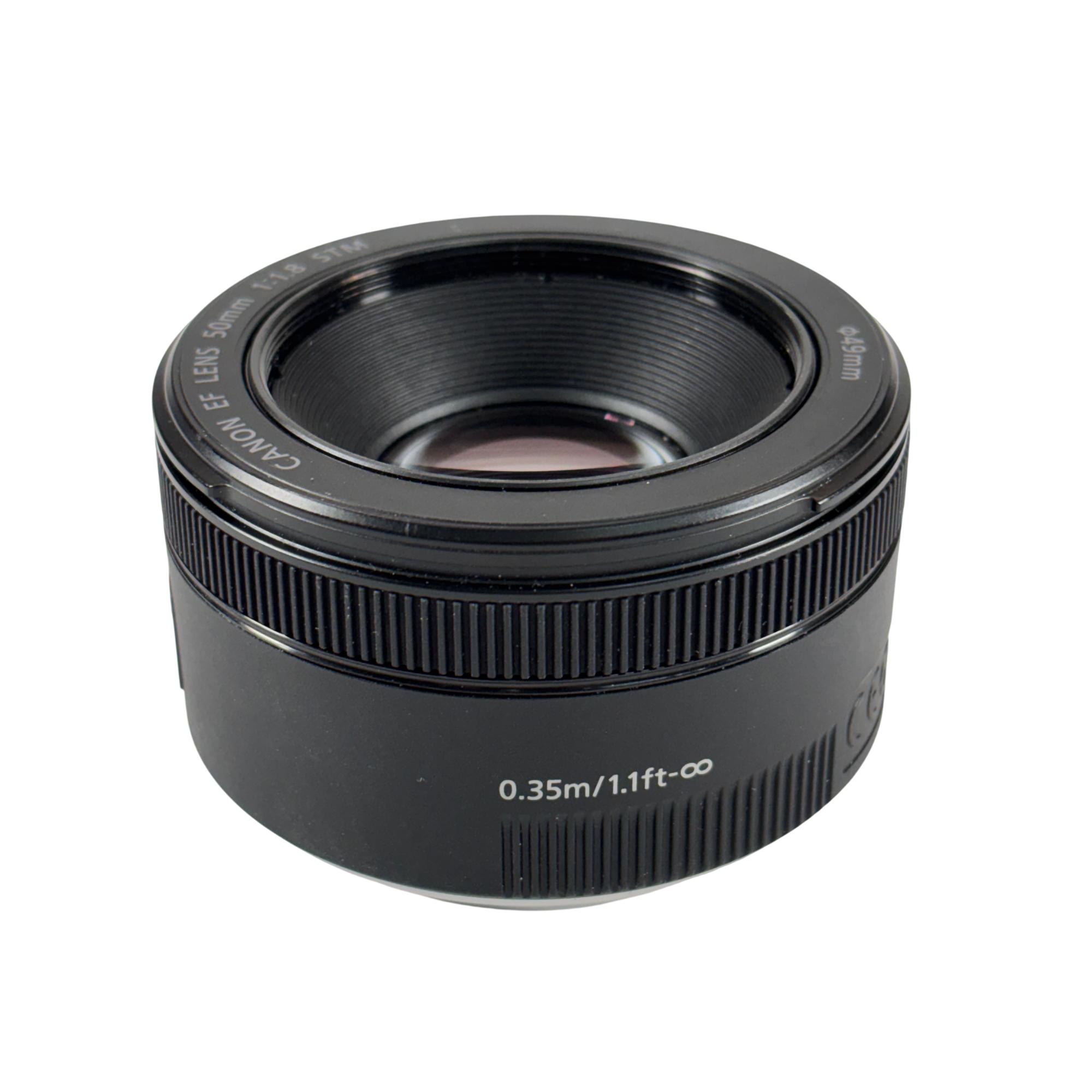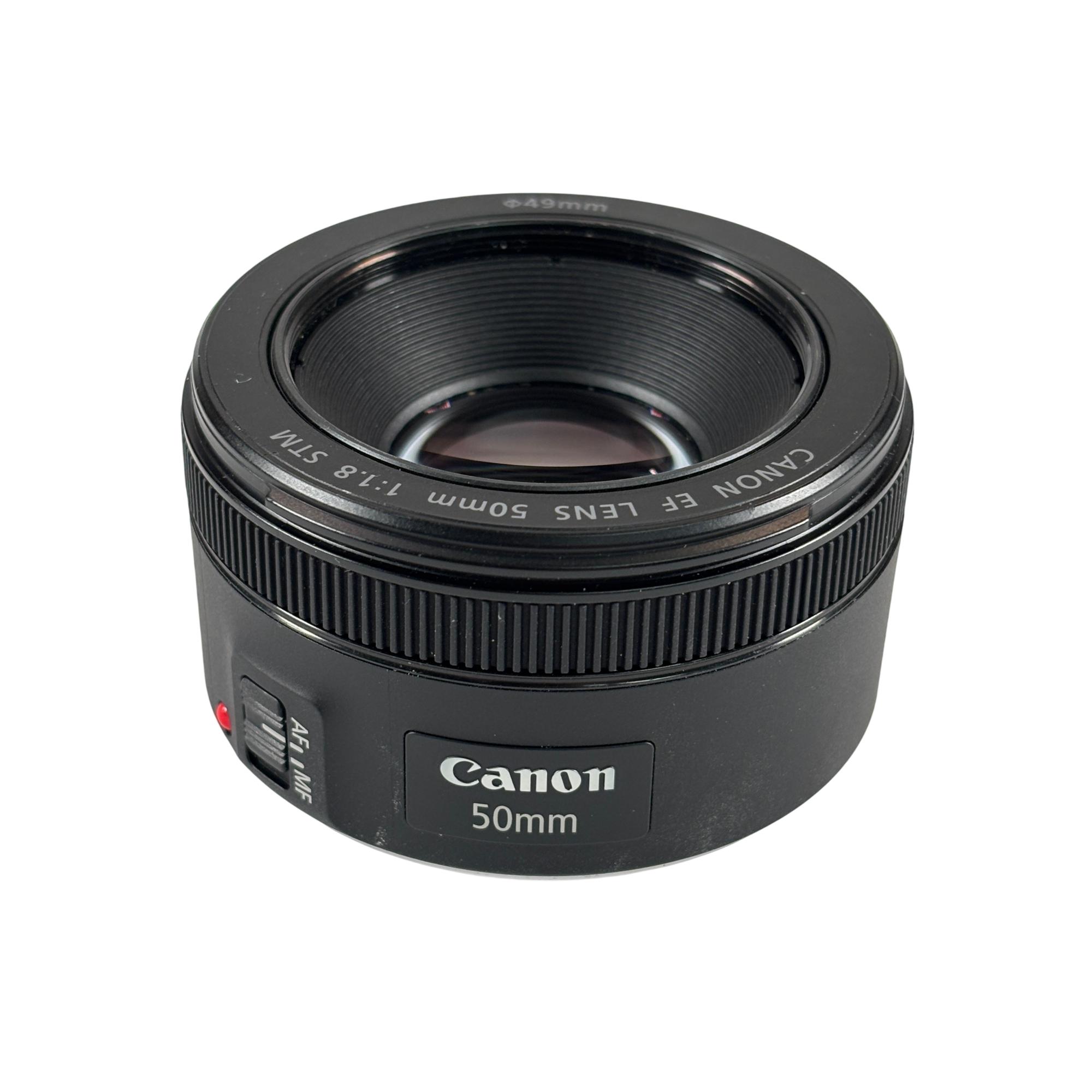 The Canon EF 50mm f/1.8 STM is a versatile prime lens with a bright f/1.8 aperture, ideal for portraits, low-light scenes, and everyday photography. It features smooth and quiet autofocus with a stepping motor, a minimum focusing distance of 1.15 feet, and a maximum magnification of 0.21x. On full-frame cameras it provides a standard 50mm view, while on APS-C models it offers an effective focal length of 80mm.