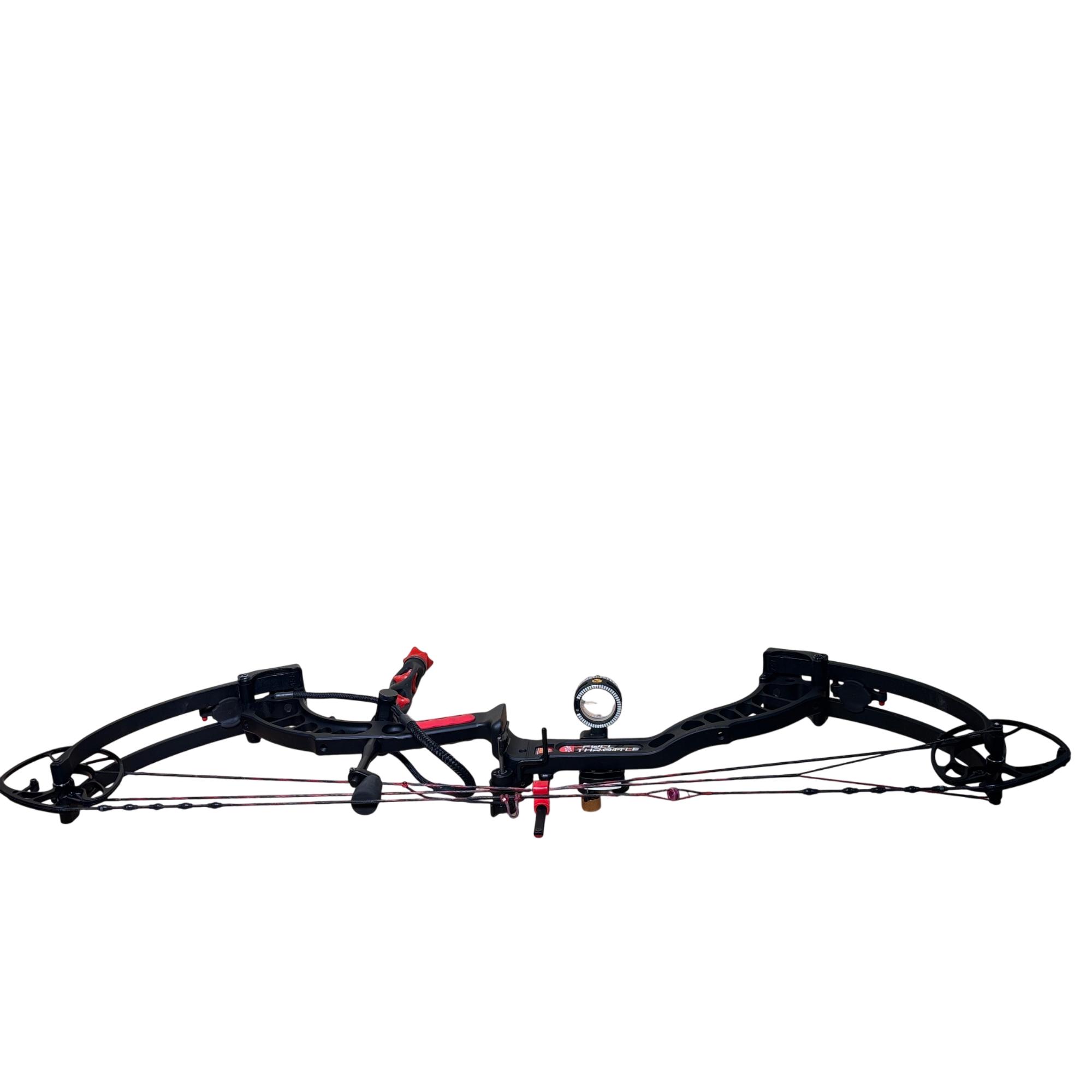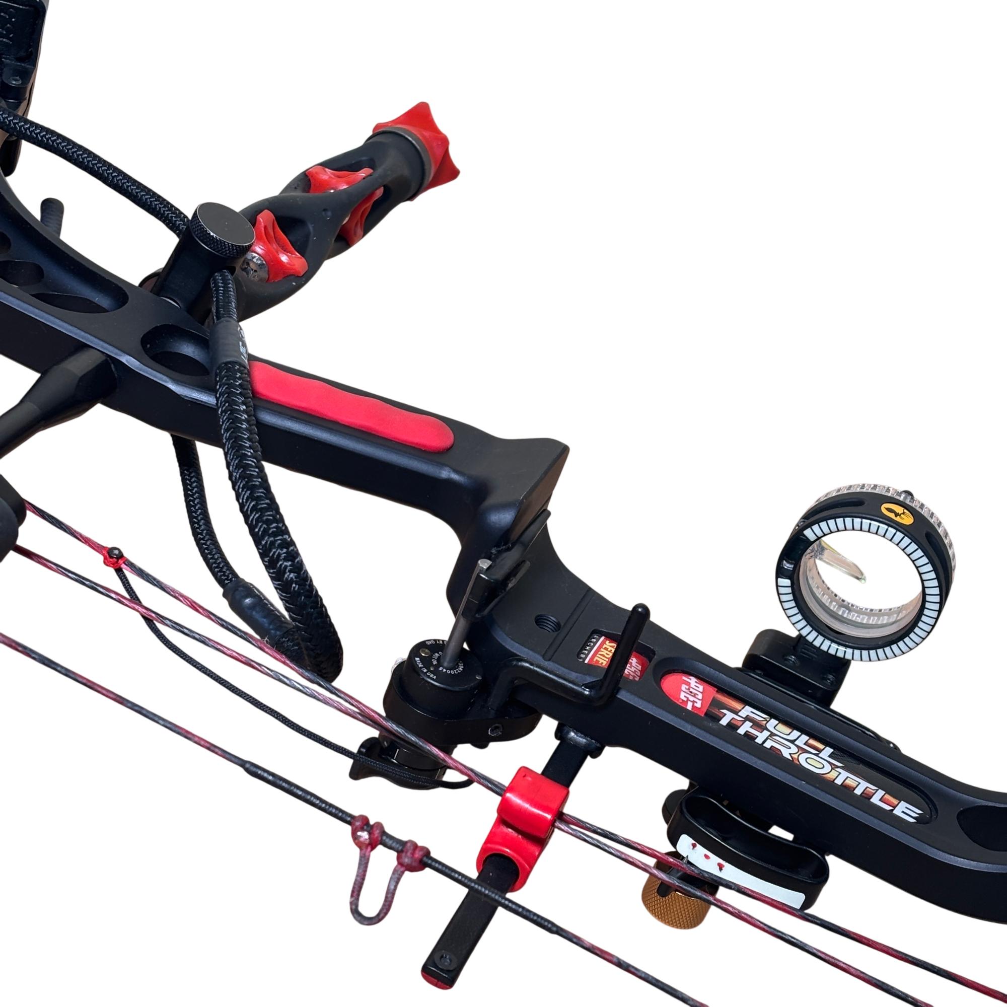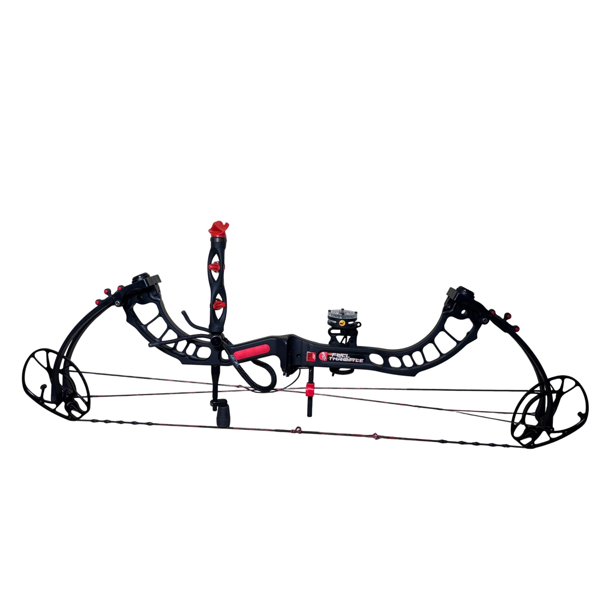 PSE Full Throttle Compound Bow Black/Red - Series 805348 features a sleek black and red design optimized for high performance in archery. This compound bow is engineered for precision and power, providing a smooth draw and reliable accuracy for hunting or target shooting purposes. Its durable build and advanced mechanics make it suitable for archers seeking a competitive edge.