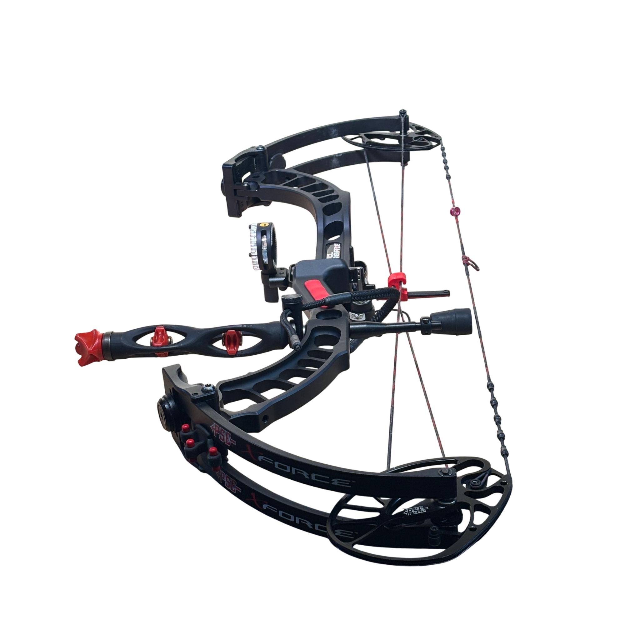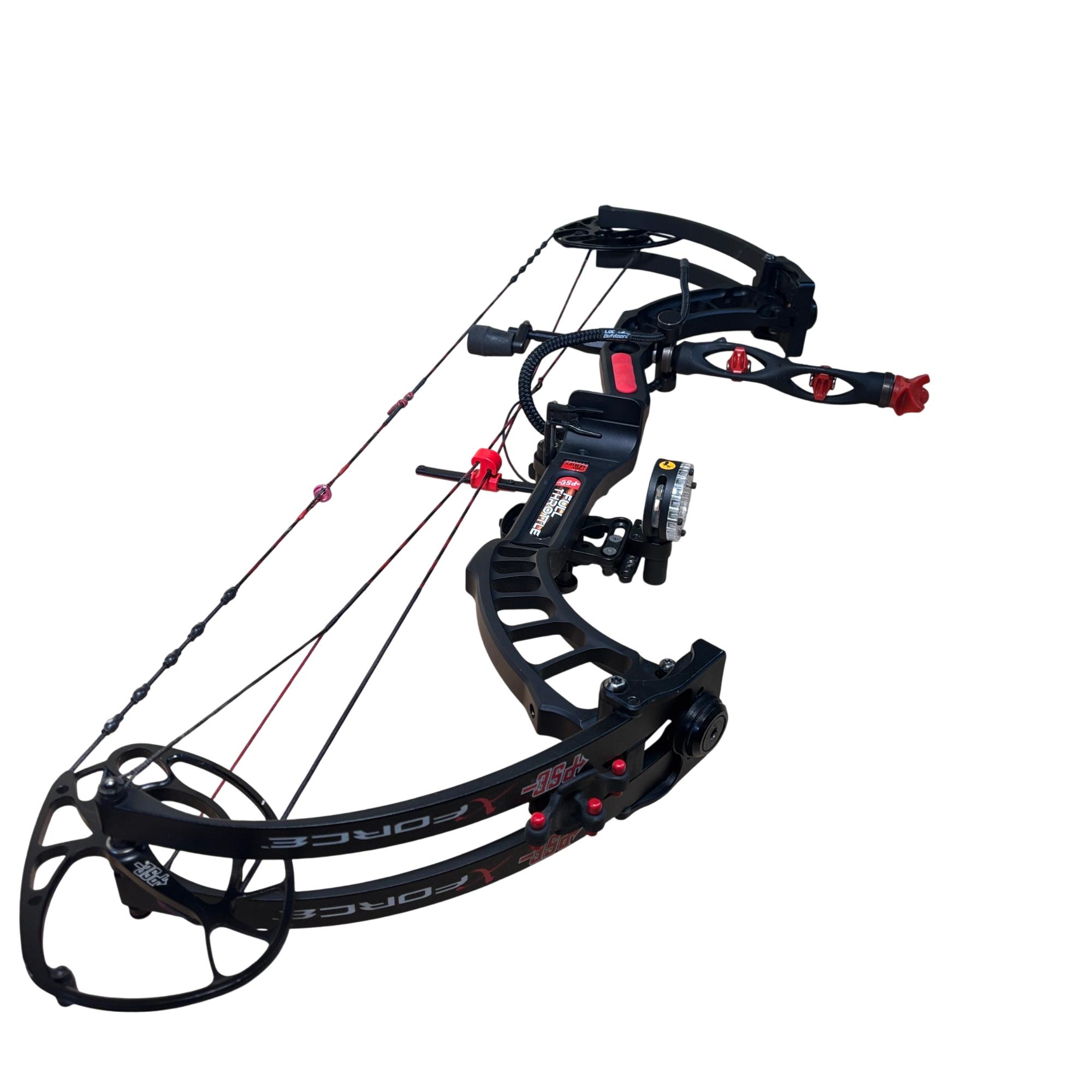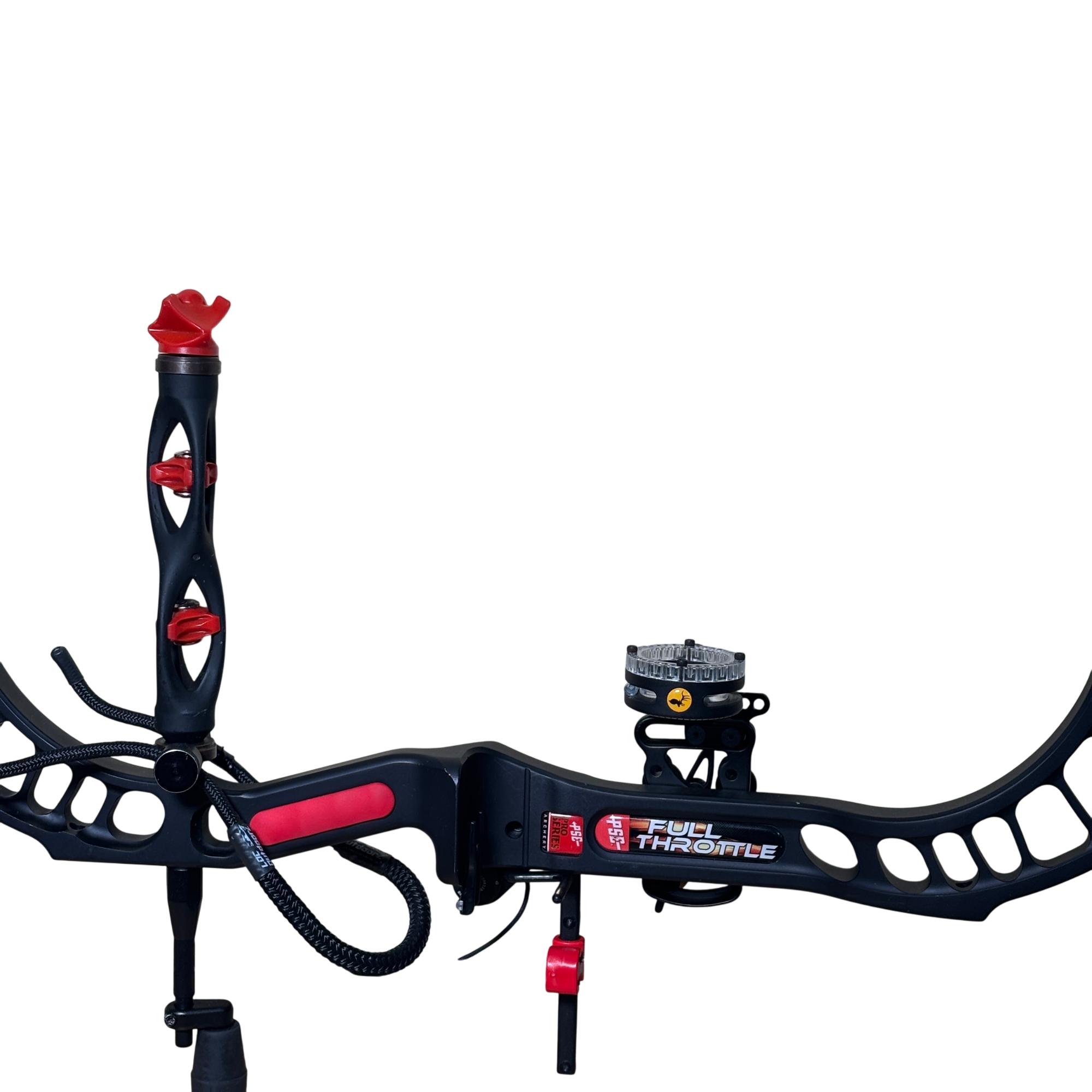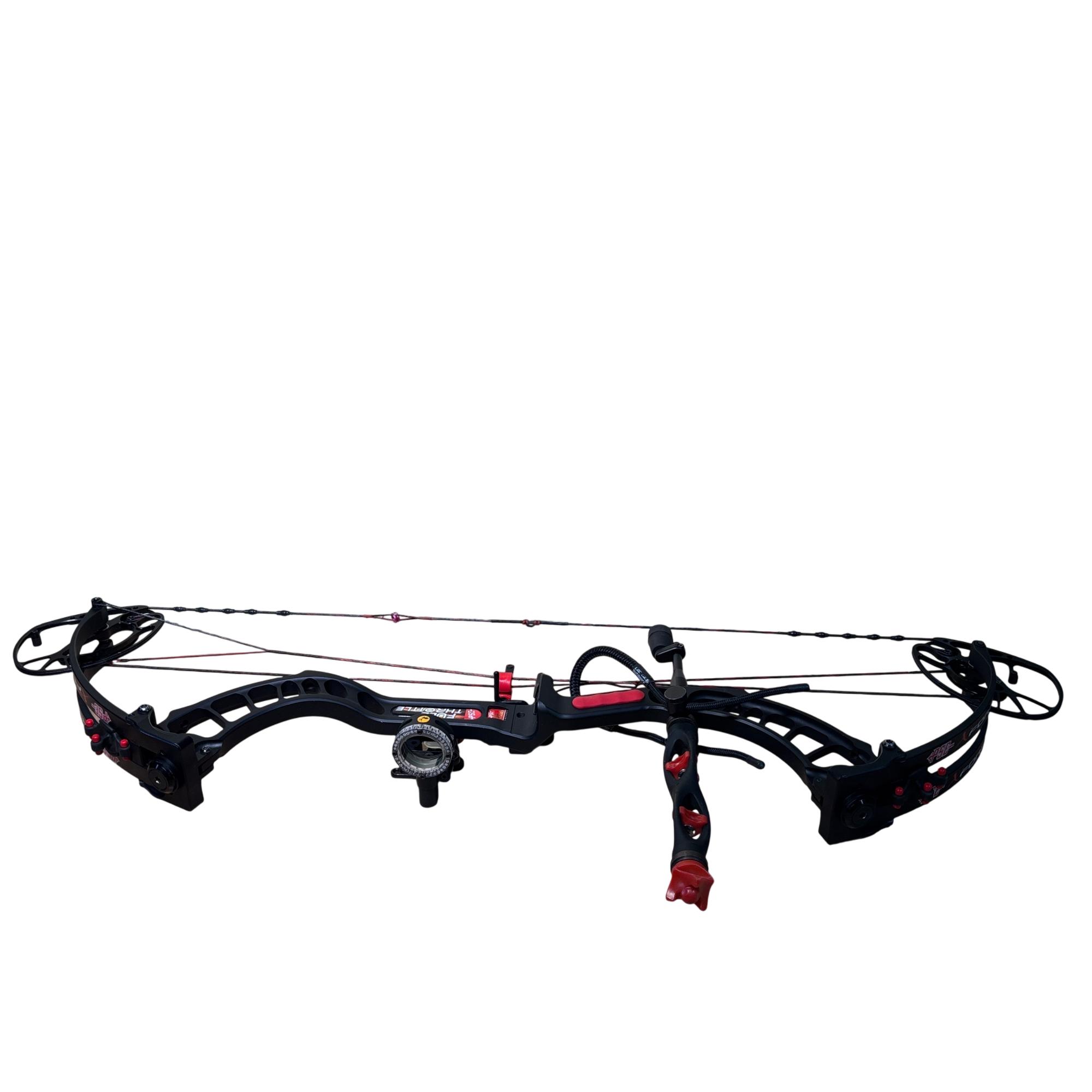 PSE Full Throttle Compound Bow Black/Red - Series 805348 features a sleek black and red design optimized for high performance in archery. This compound bow is engineered for precision and power, providing a smooth draw and reliable accuracy for hunting or target shooting purposes. Its durable build and advanced mechanics make it suitable for archers seeking a competitive edge.