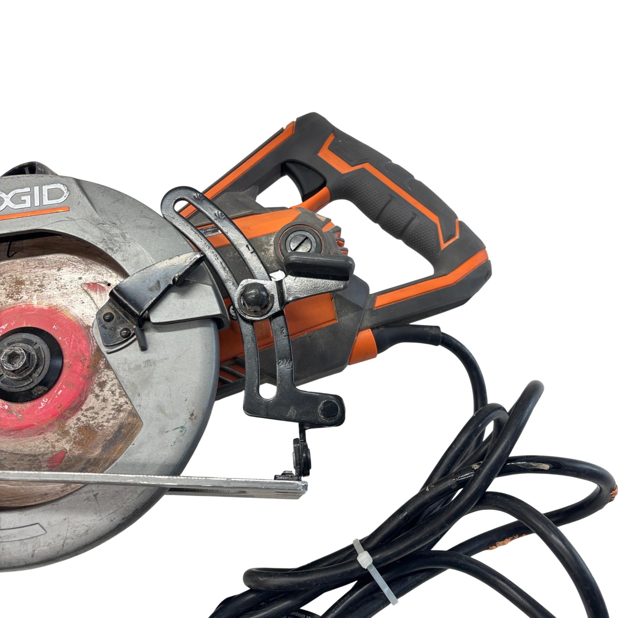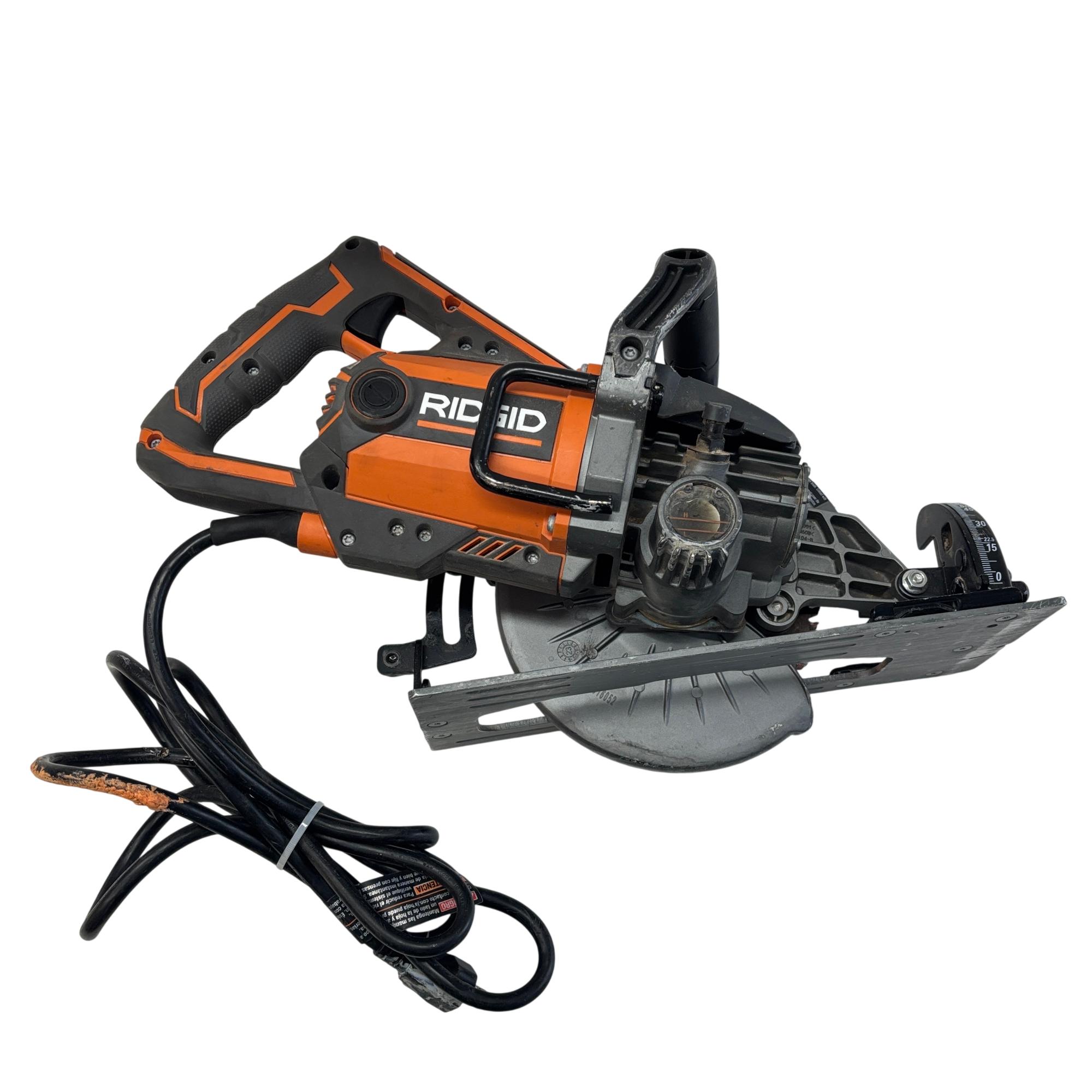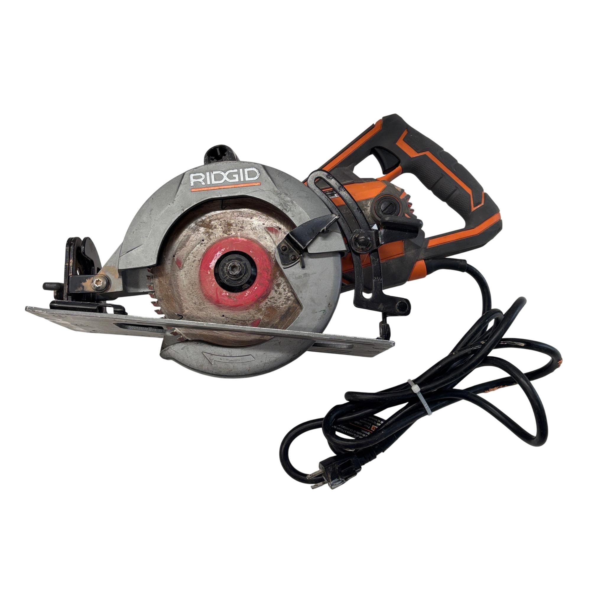 RIDGID R32104 THRUCOOL 15 Amp 7-1/4" Worm Drive Circular Saw is engineered for durability and precision, featuring a magnesium frame that ensures a lightweight yet robust build. This powerful circular saw includes a 15 amp motor and a 7-1/4 inch blade designed to deliver smooth, accurate cuts in a variety of materials. Its worm drive mechanism provides enhanced torque and control, making it ideal for professional and heavy-duty woodworking applications.