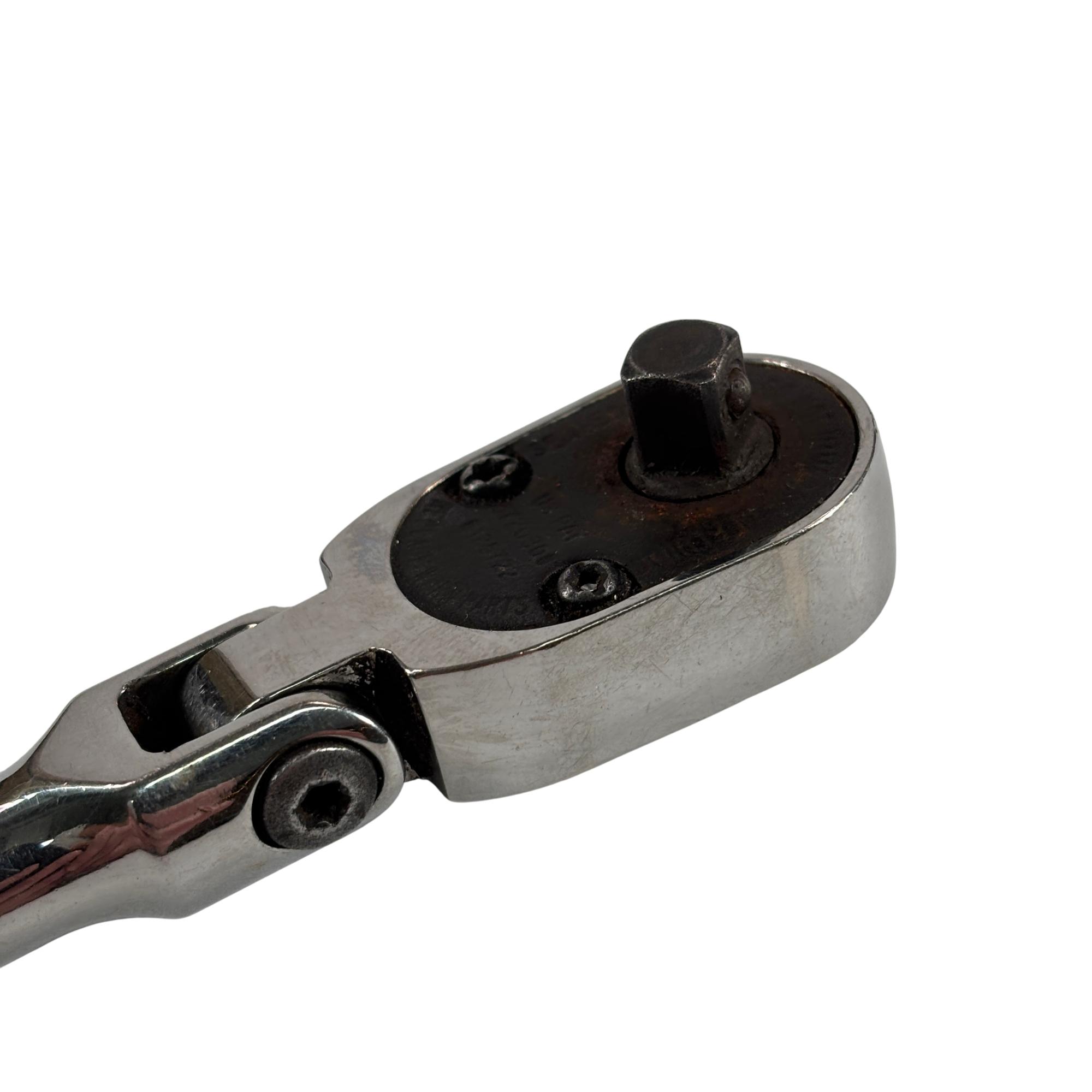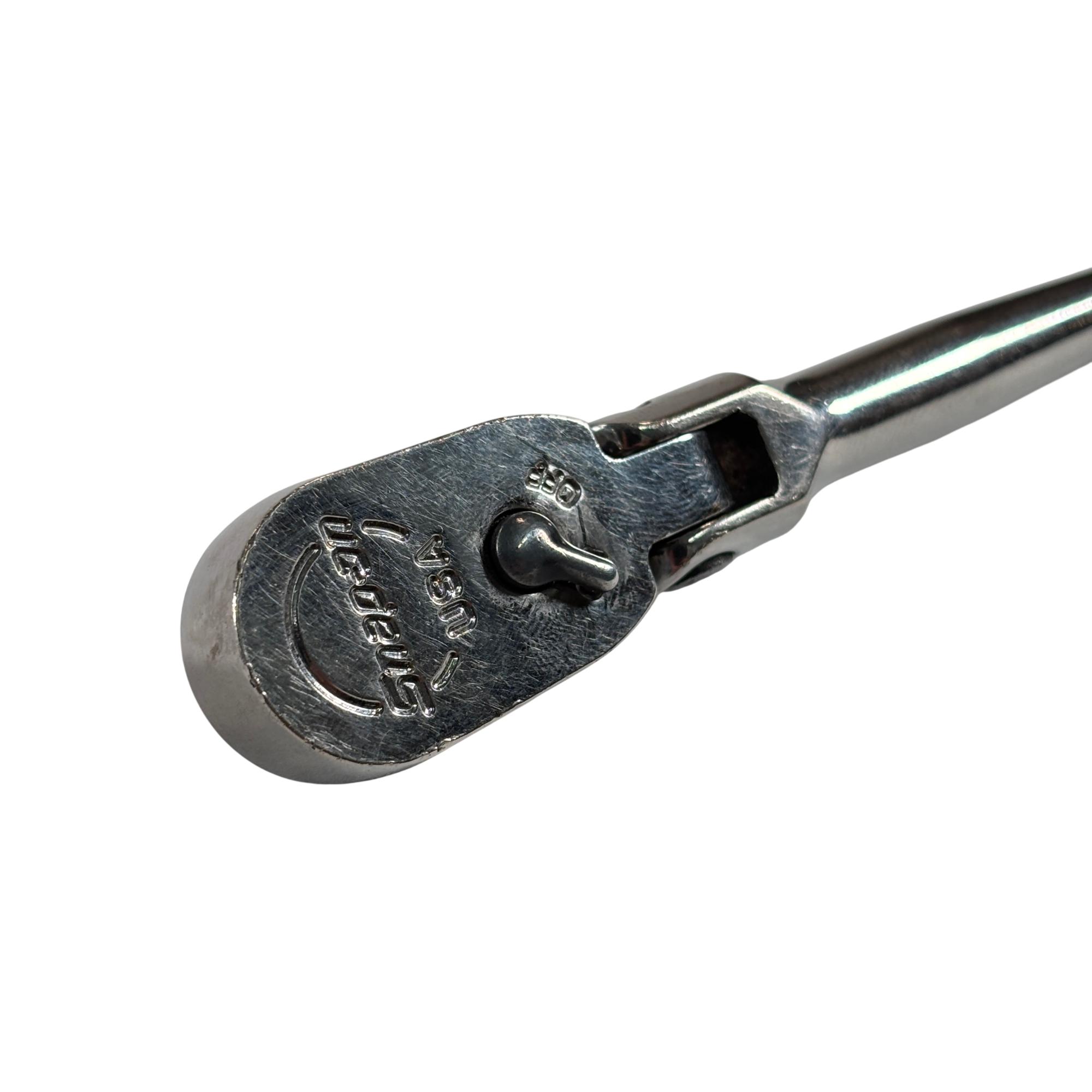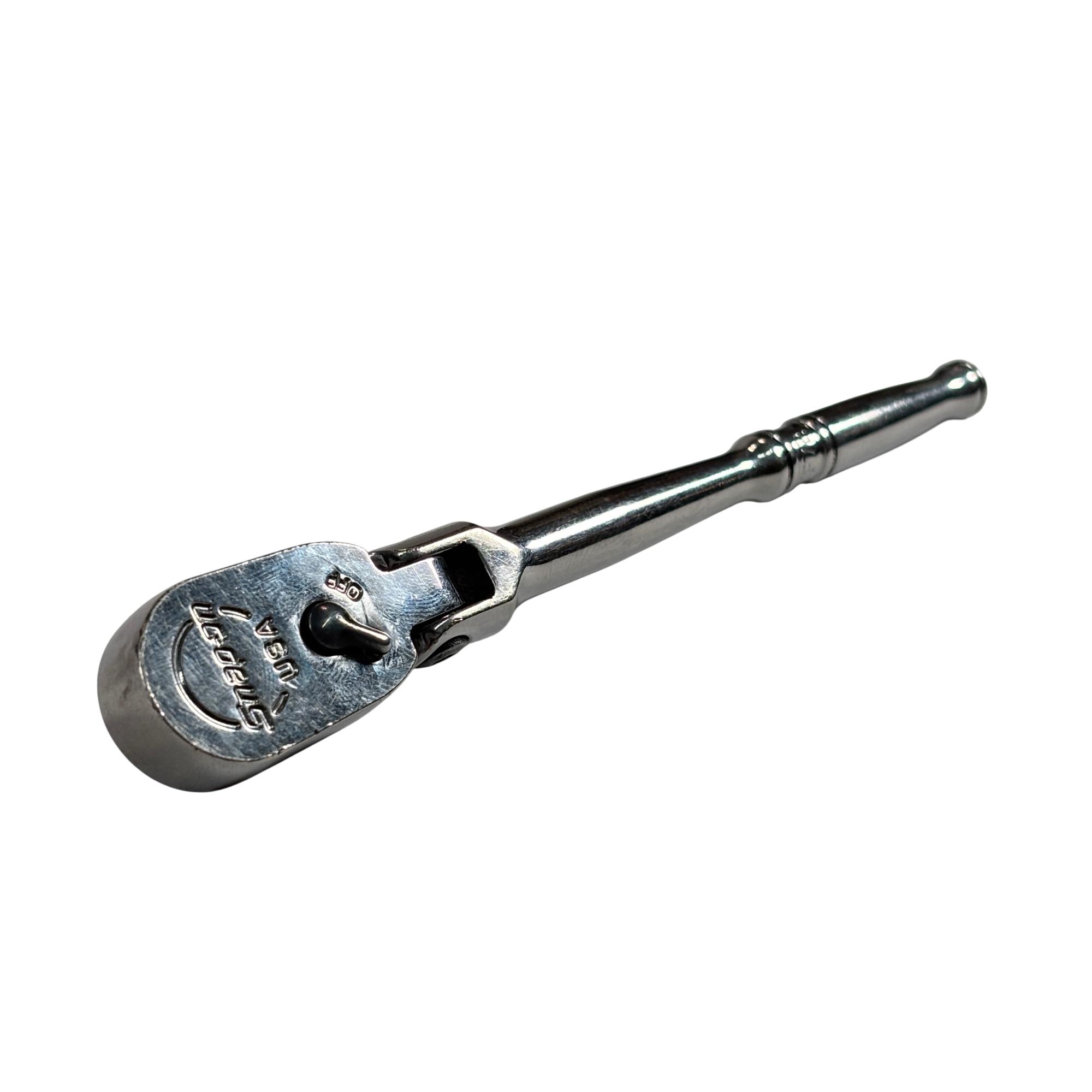 The Snap-on Tools TF72 1/4-inch drive dual 80 technology flex-head ratchet is designed for precision work in tight spaces. Its fine-tooth gear provides smooth operation with a short swing arc, while multiple flex-head positions offer added versatility and access around obstacles.
