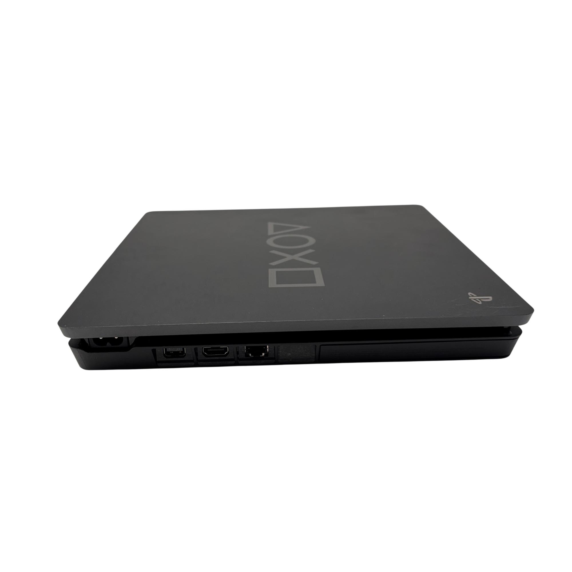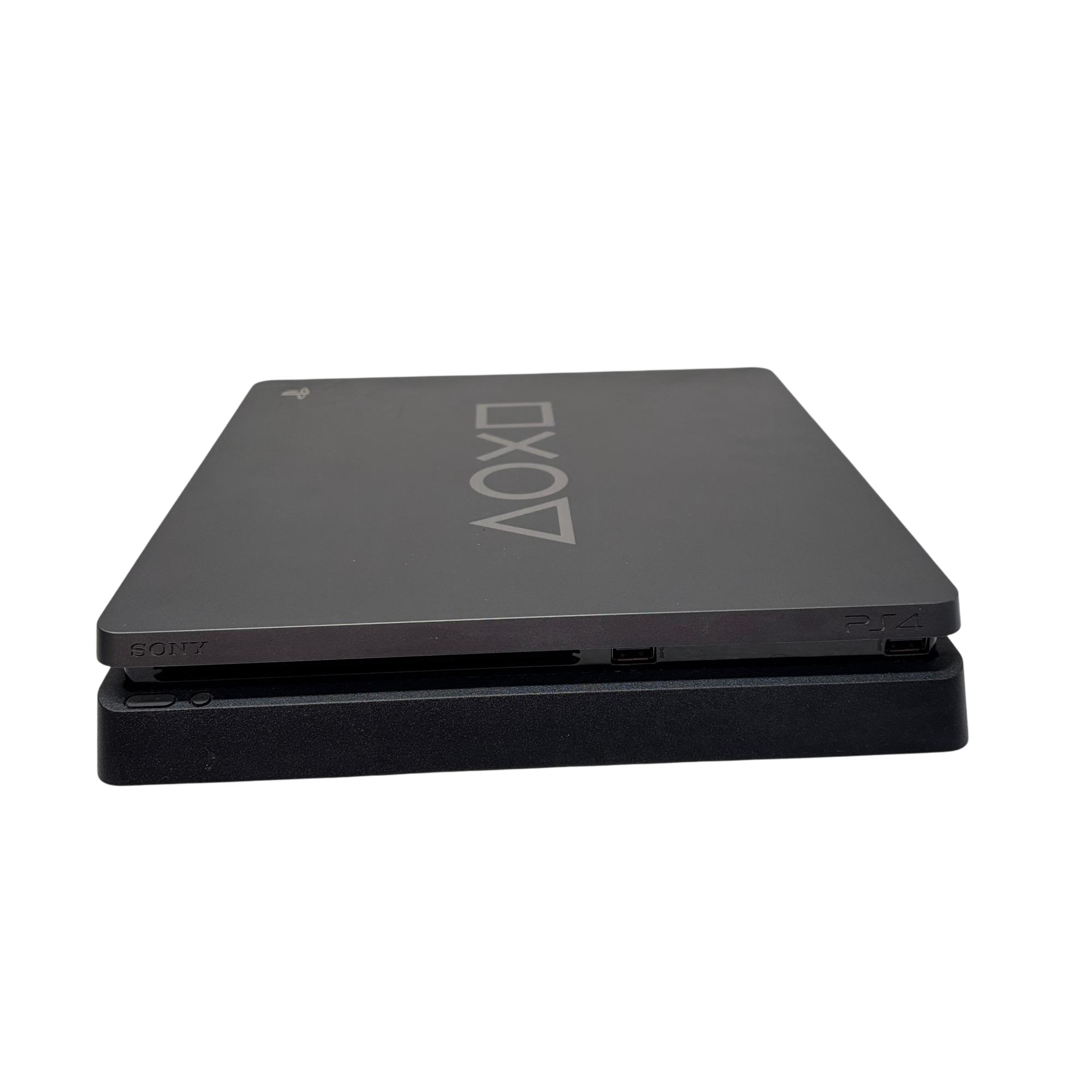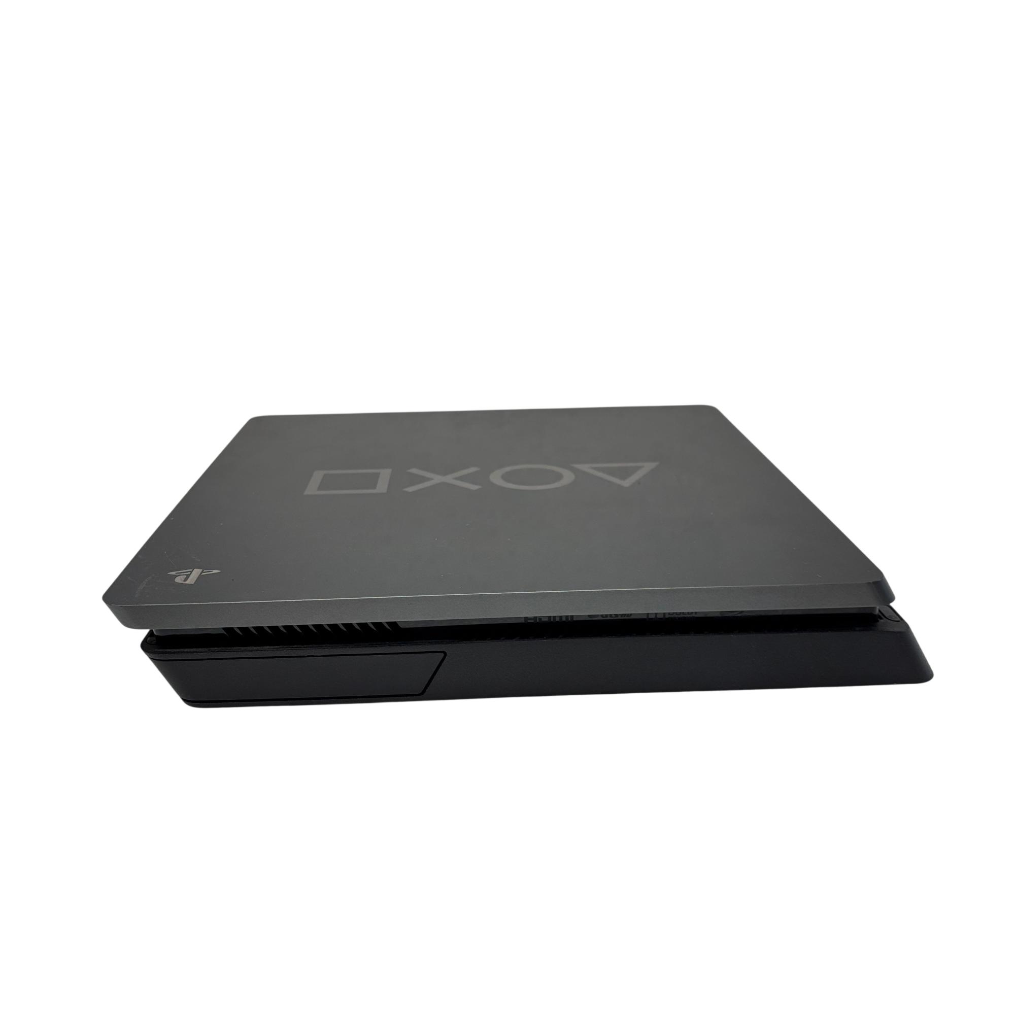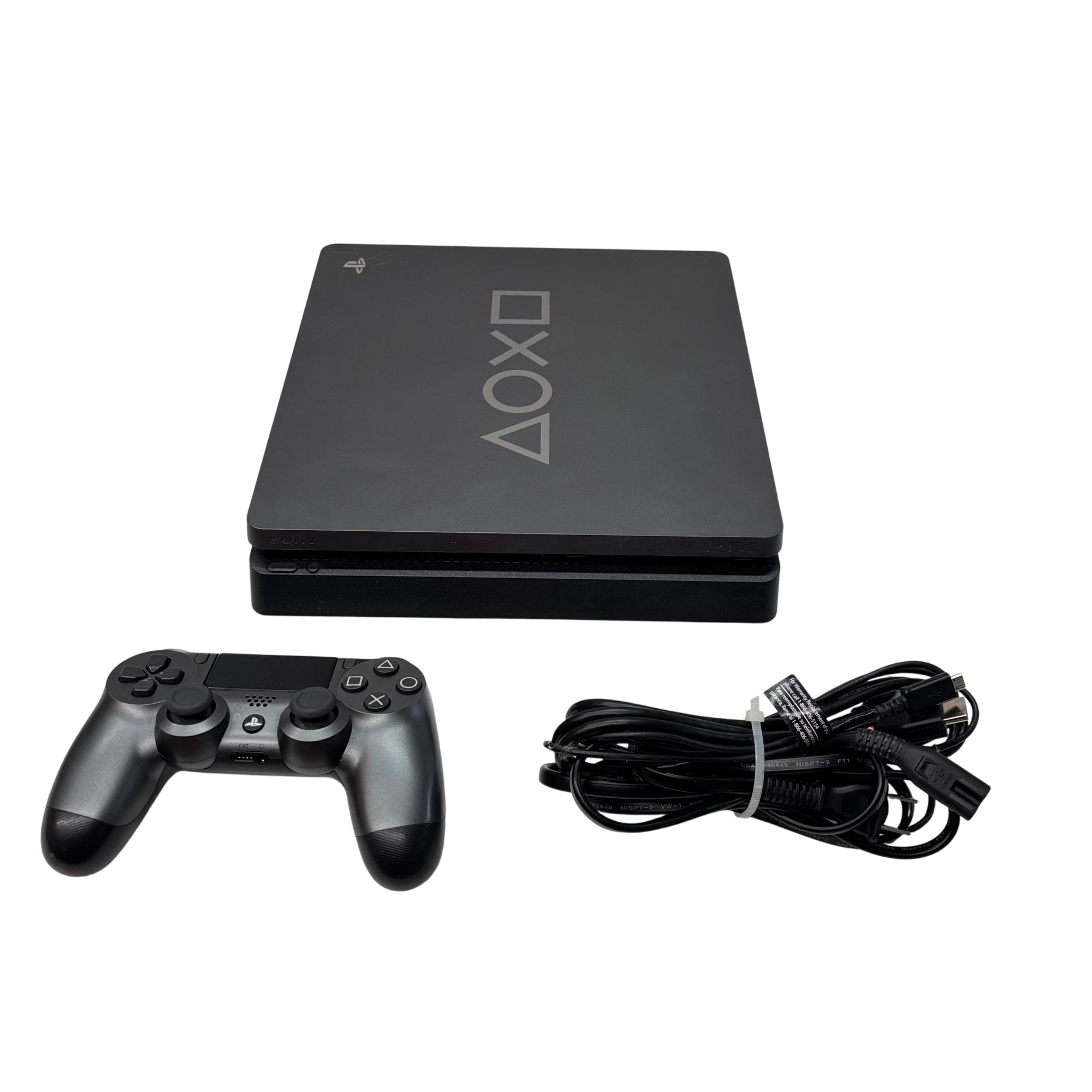 Sony PlayStation 4 Slim 1TB Days of Play Limited Edition Console (CUH-2215B) features a sleek black design with a compact rectangular body, optimized for high-performance gaming. This model offers a spacious 1TB hard drive to store numerous games and media, while its slim profile enhances portability and setup flexibility. Designed for immersive gameplay, it supports a wide range of titles and provides seamless connectivity with the DualShock 4 wireless controller.