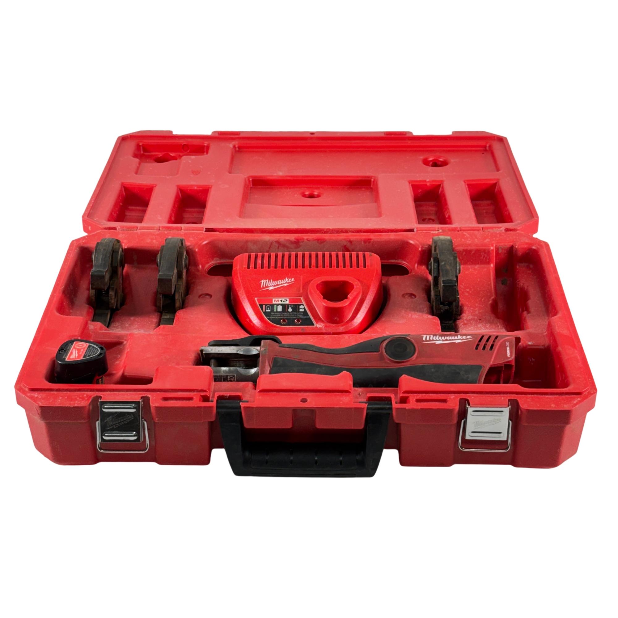 Milwaukee 2473-22 M12 cordless press tool kit delivers versatile performance for pressing and connecting copper, PEX, black iron, stainless steel, and other fittings. Designed with industry-leading calibration, it allows cutting, fastening, and connecting in a single tool. Engineered for durability, it can perform up to 32,000 crimps between service inspections, making it ideal for professional plumbing and mechanical applications.