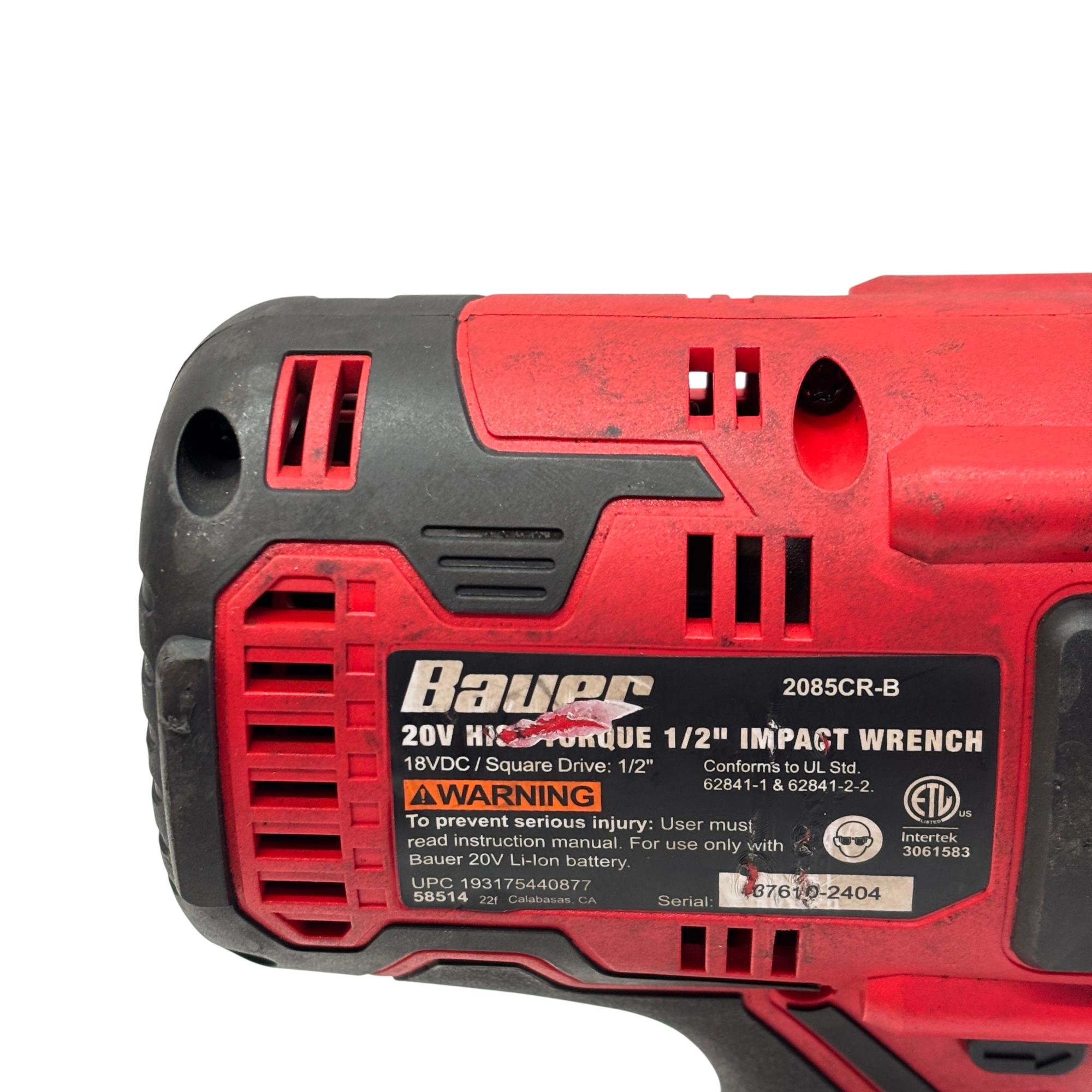 Bauer 2085CRB 20V Brushless Cordless 1/2 in. High-Torque Impact Wrench delivers powerful performance with its brushless motor and high torque capacity for demanding fastening applications. Designed for cordless convenience, this impact wrench features a durable build ideal for professional and DIY use. Its advanced lithium-ion battery technology ensures efficient energy output and long-lasting power during operation.