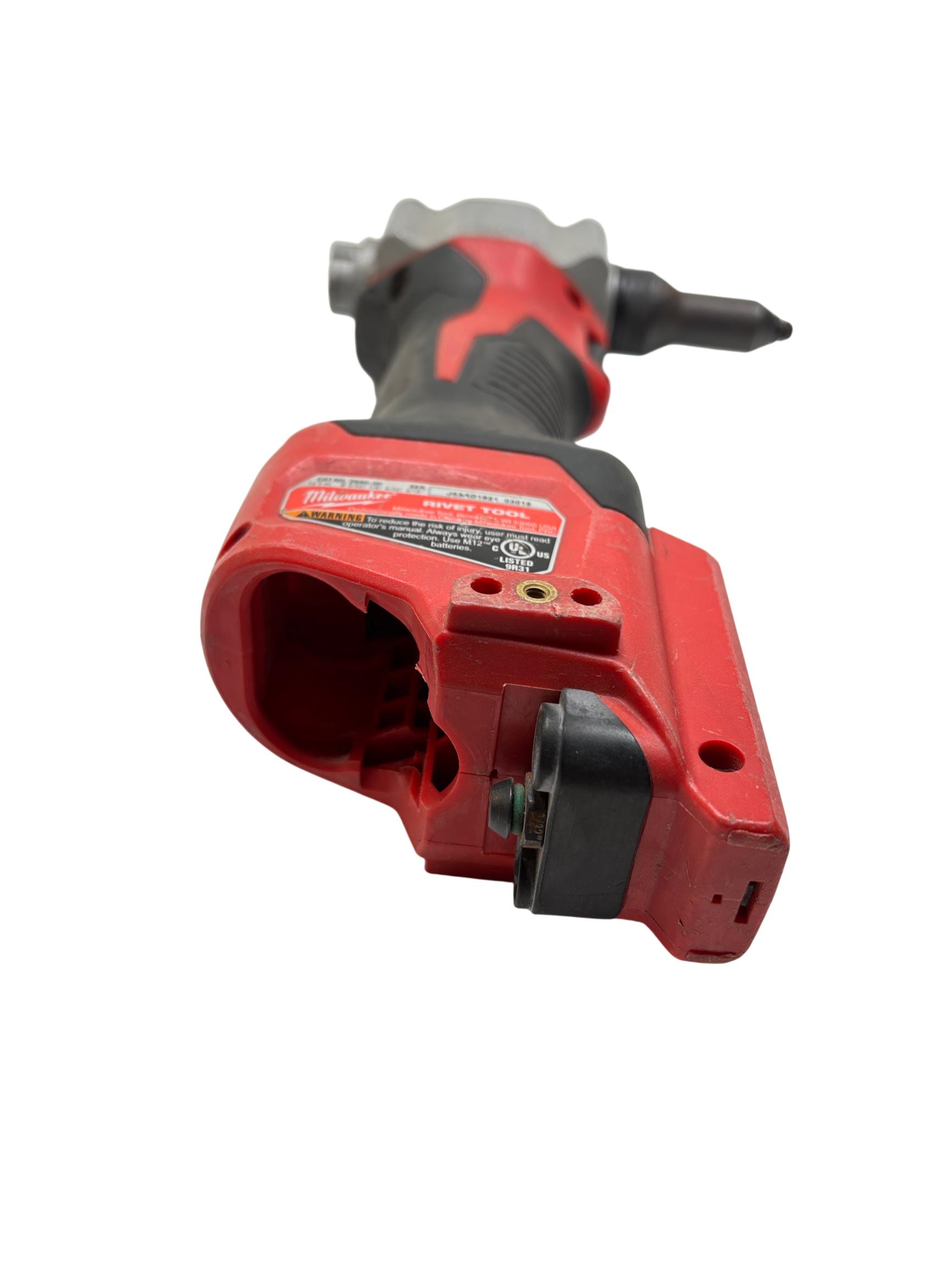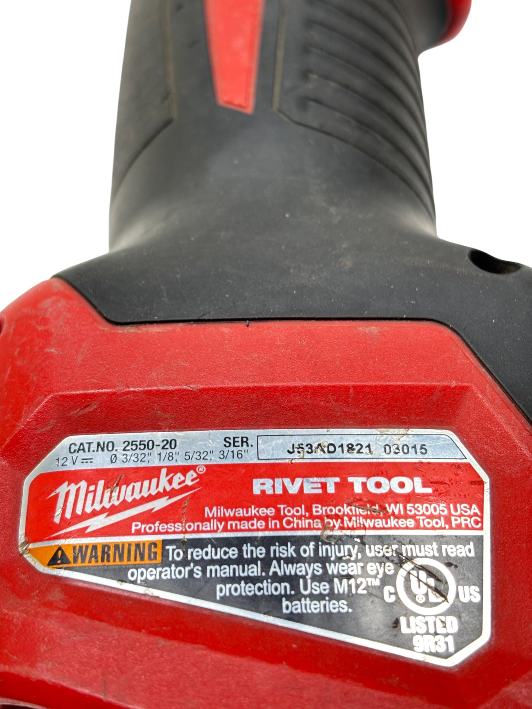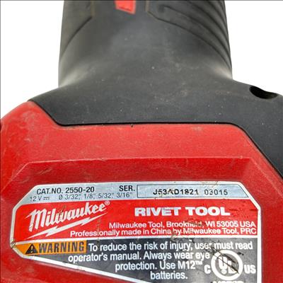 Milwaukee M12 2550-20 12V Lithium-Ion Cordless Rivet Tool offers powerful cordless performance for efficient riveting applications. Designed with a compact and ergonomic build, this tool provides precision and ease of use for fastening tasks in tight spaces. Its durable construction and advanced battery technology ensure reliable operation on various job sites.