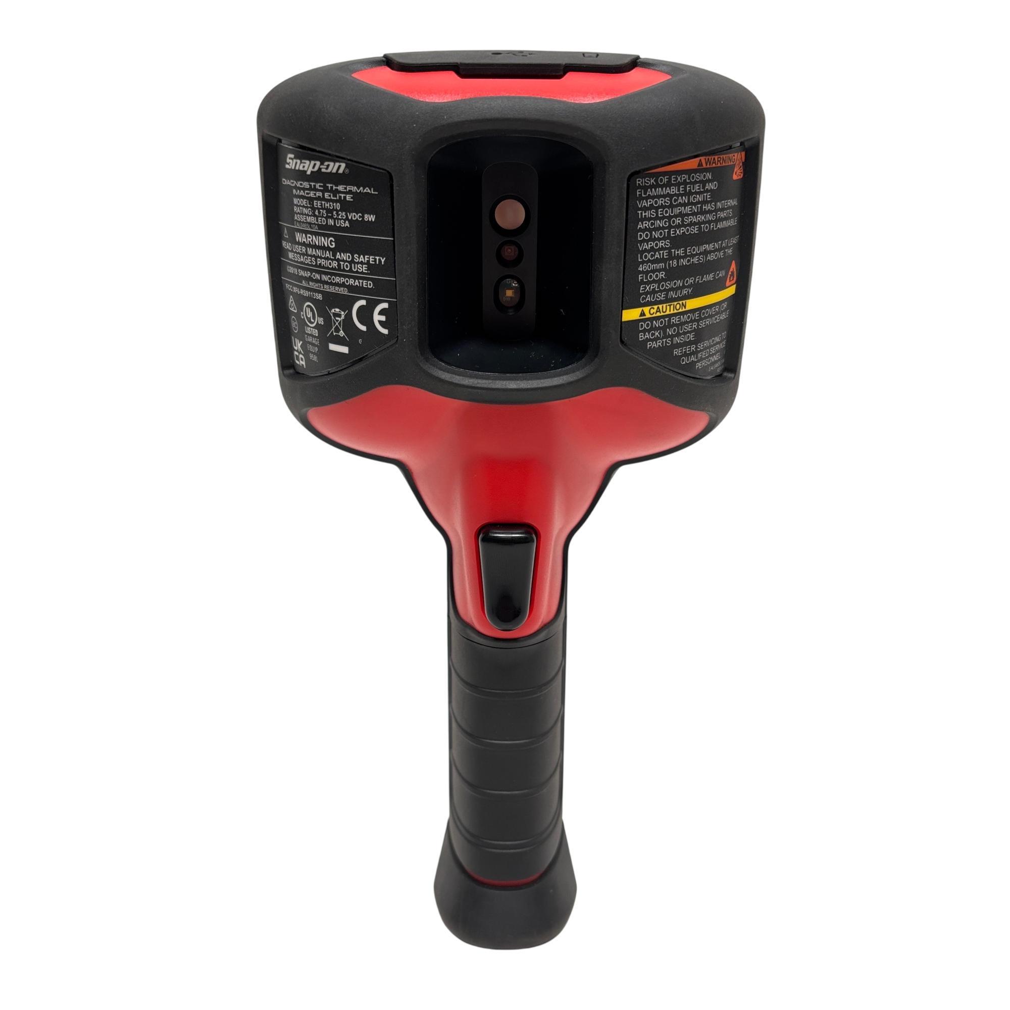 Introducing the Snap-on EETH310 Diagnostic Thermal Imager Elite, a top-of-the-line thermal imaging device ideal for professionals. This powerful tool features a sleek black handheld design with an easy-to-read screen, perfectly suited for capturing detailed thermal images. Enhance your diagnostic capabilities with this elite imager, a must-have for any serious toolkit.