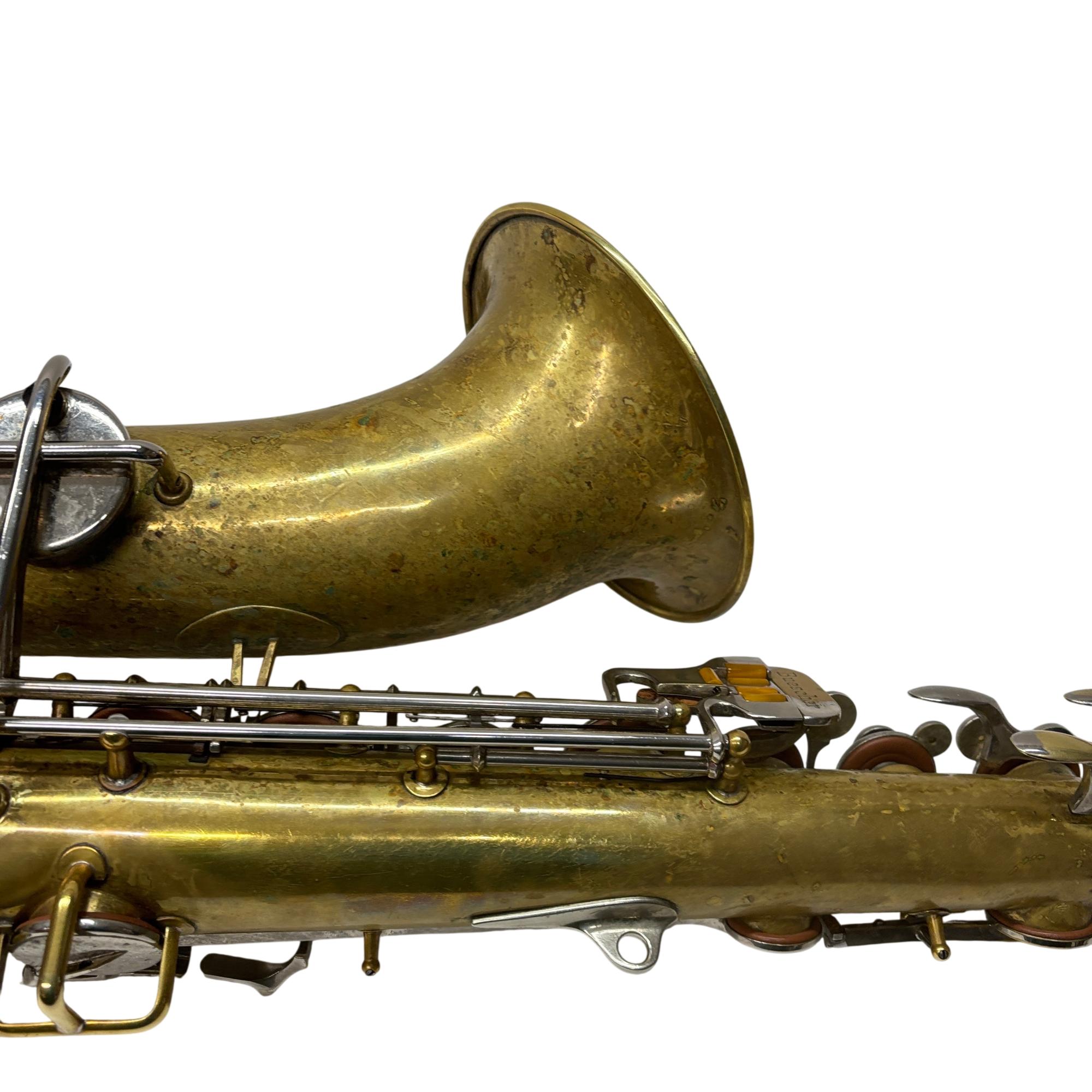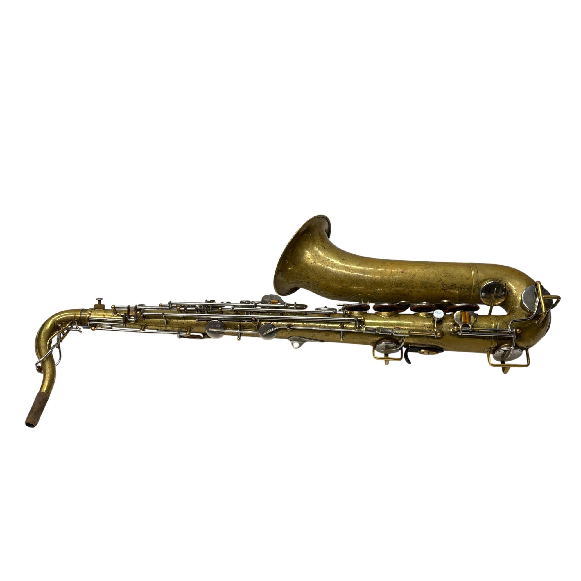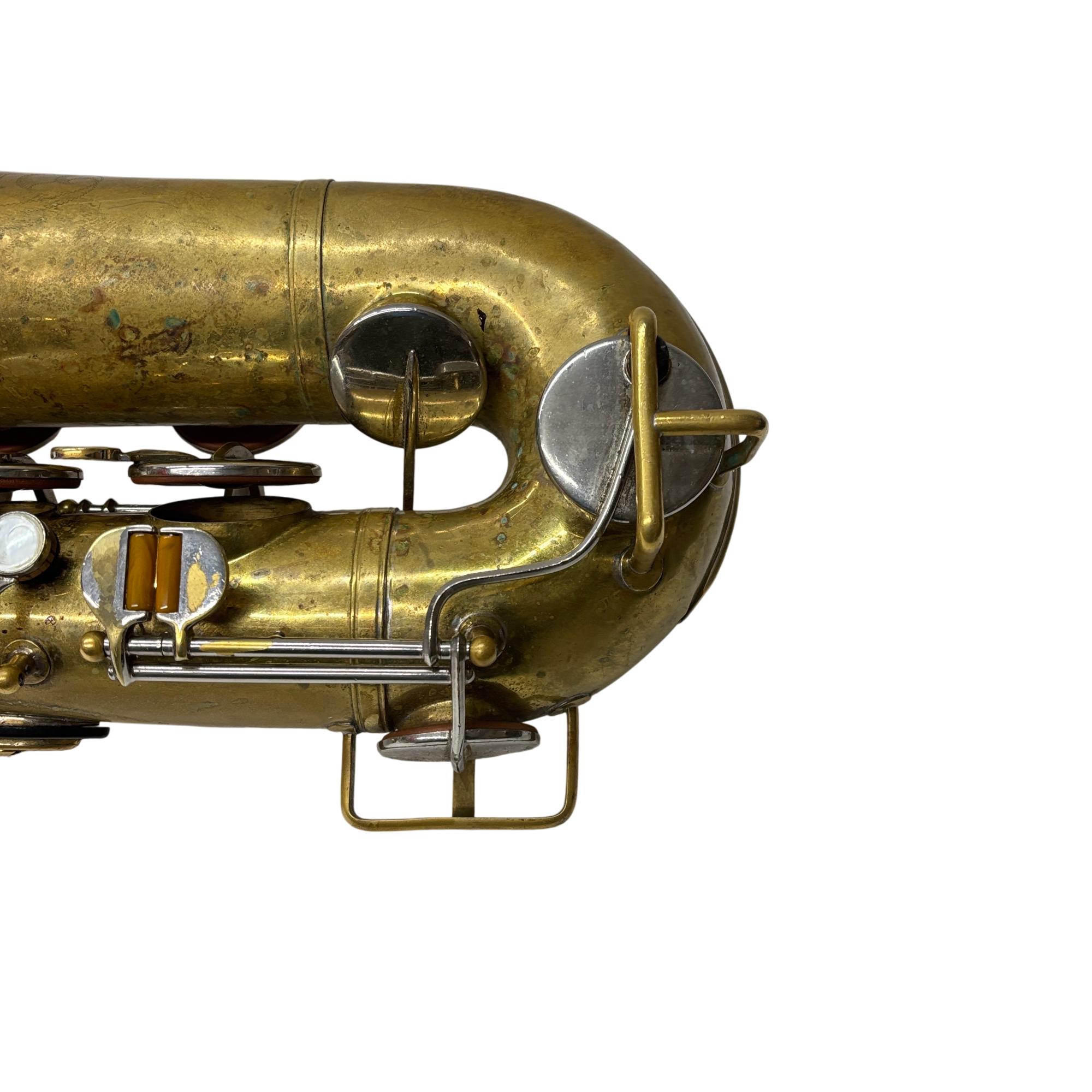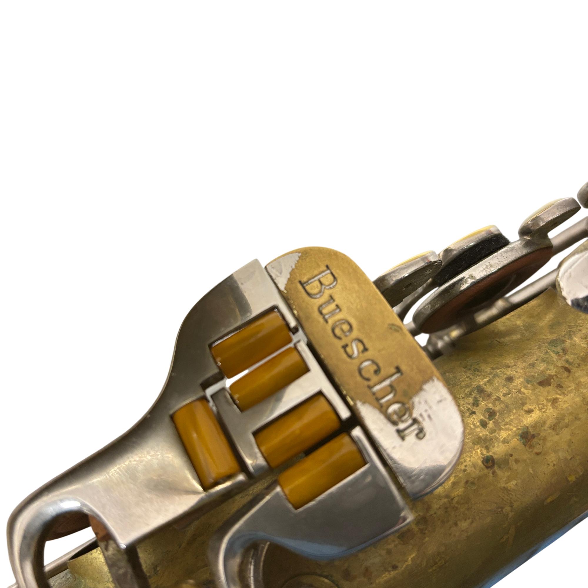 Buescher 400 Tenor Saxophone is a finely crafted brass instrument known for its rich, warm tone and reliable performance favored by jazz musicians. This vintage model features detailed metalwork and keys designed to deliver smooth playability and classic sound characteristic of mid-20th century saxophones.