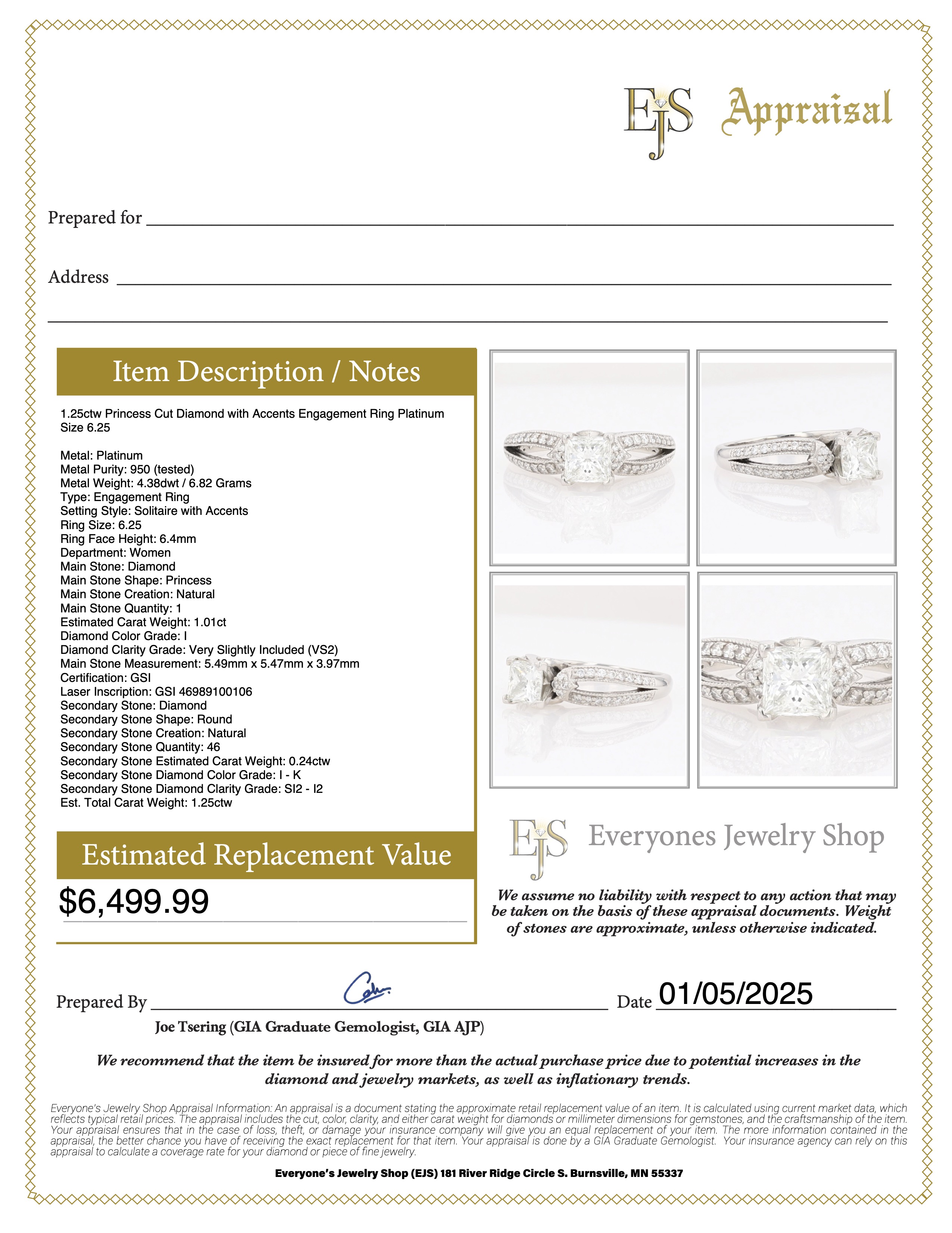 The primary diamond is laserscribed with GSI 46989100106 on the girdle.