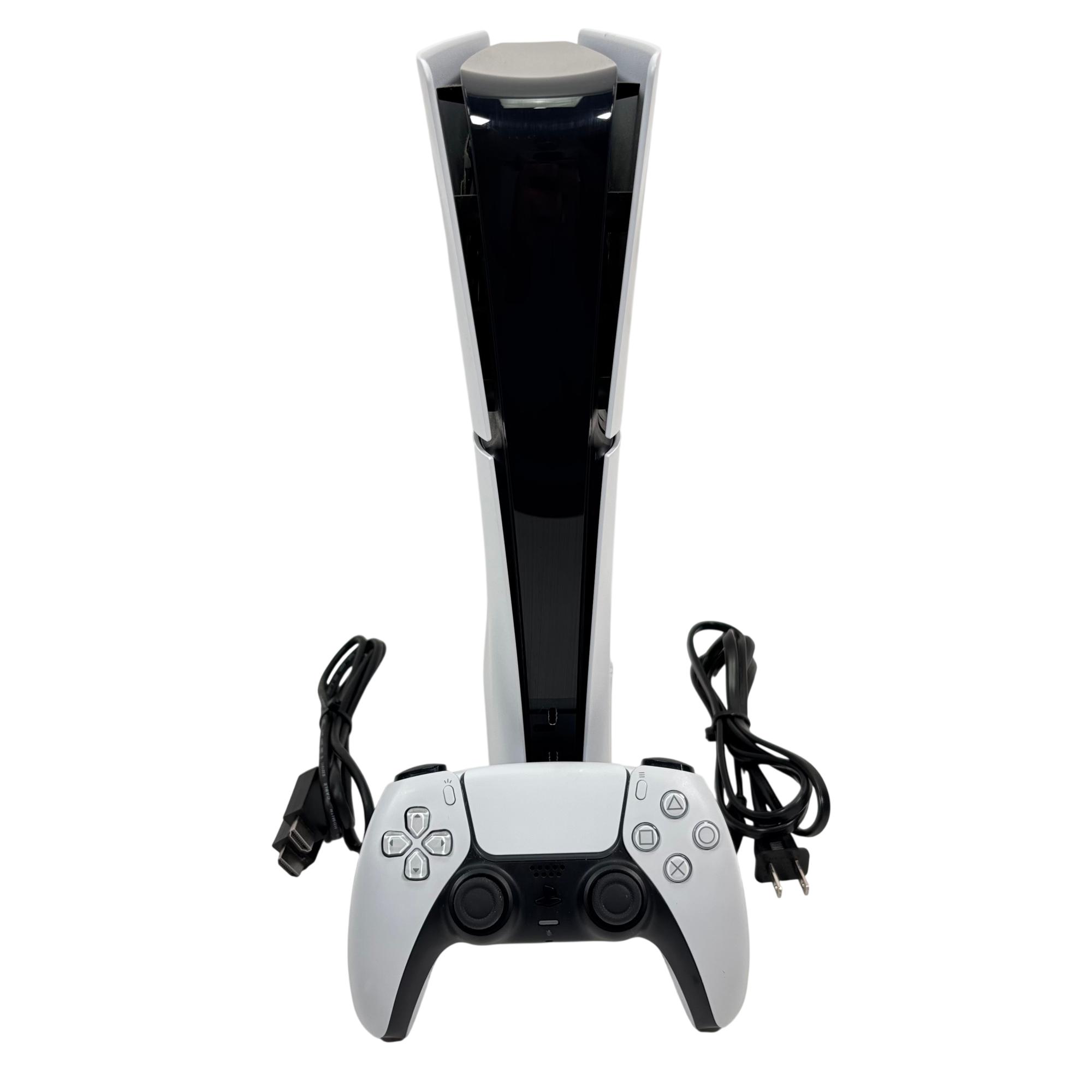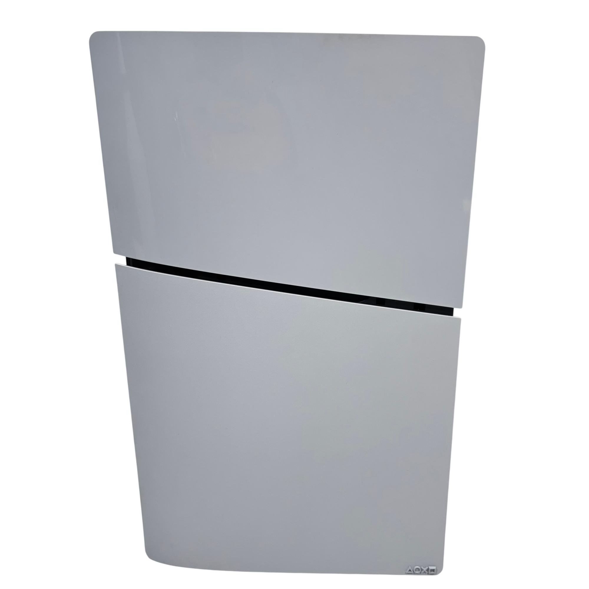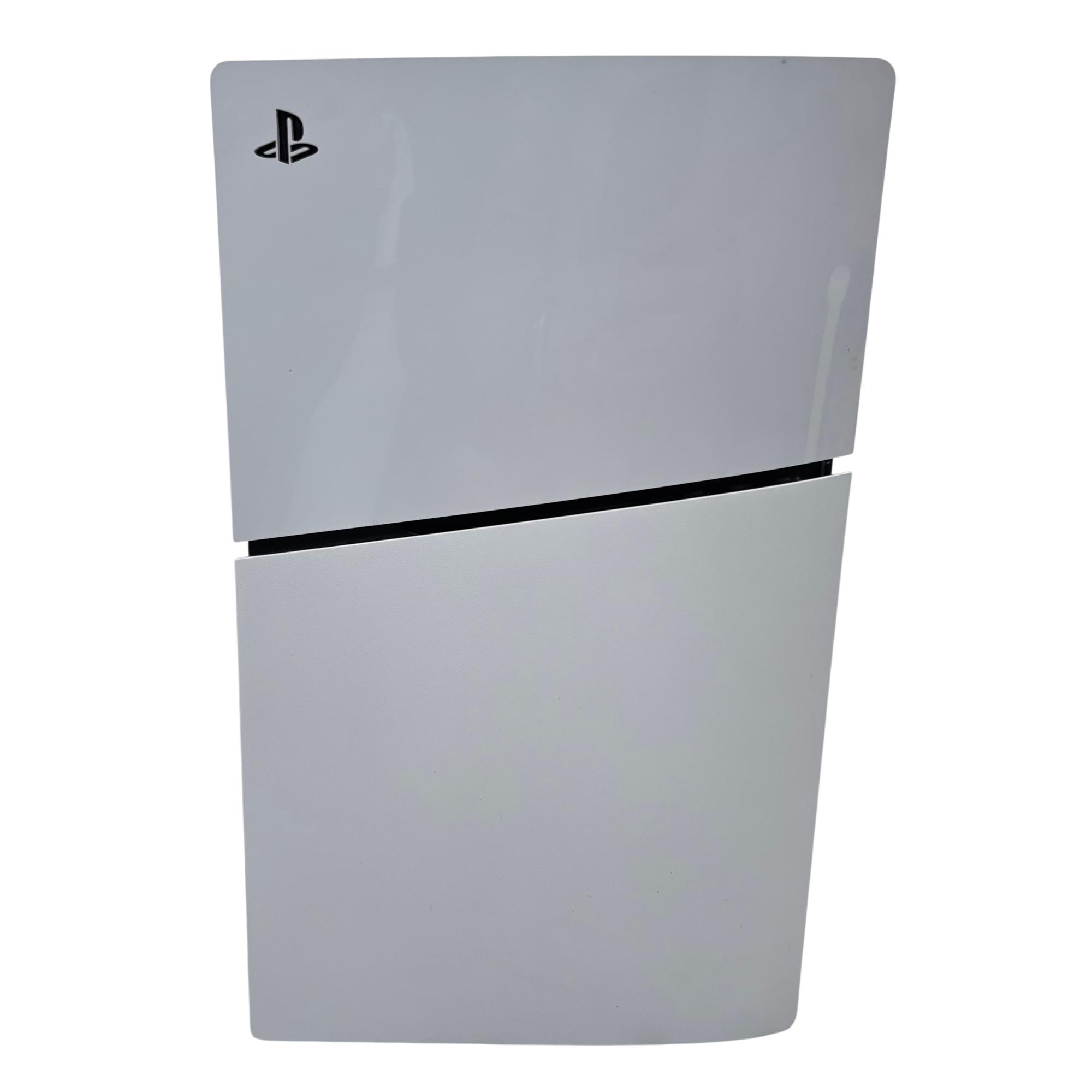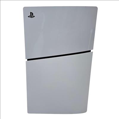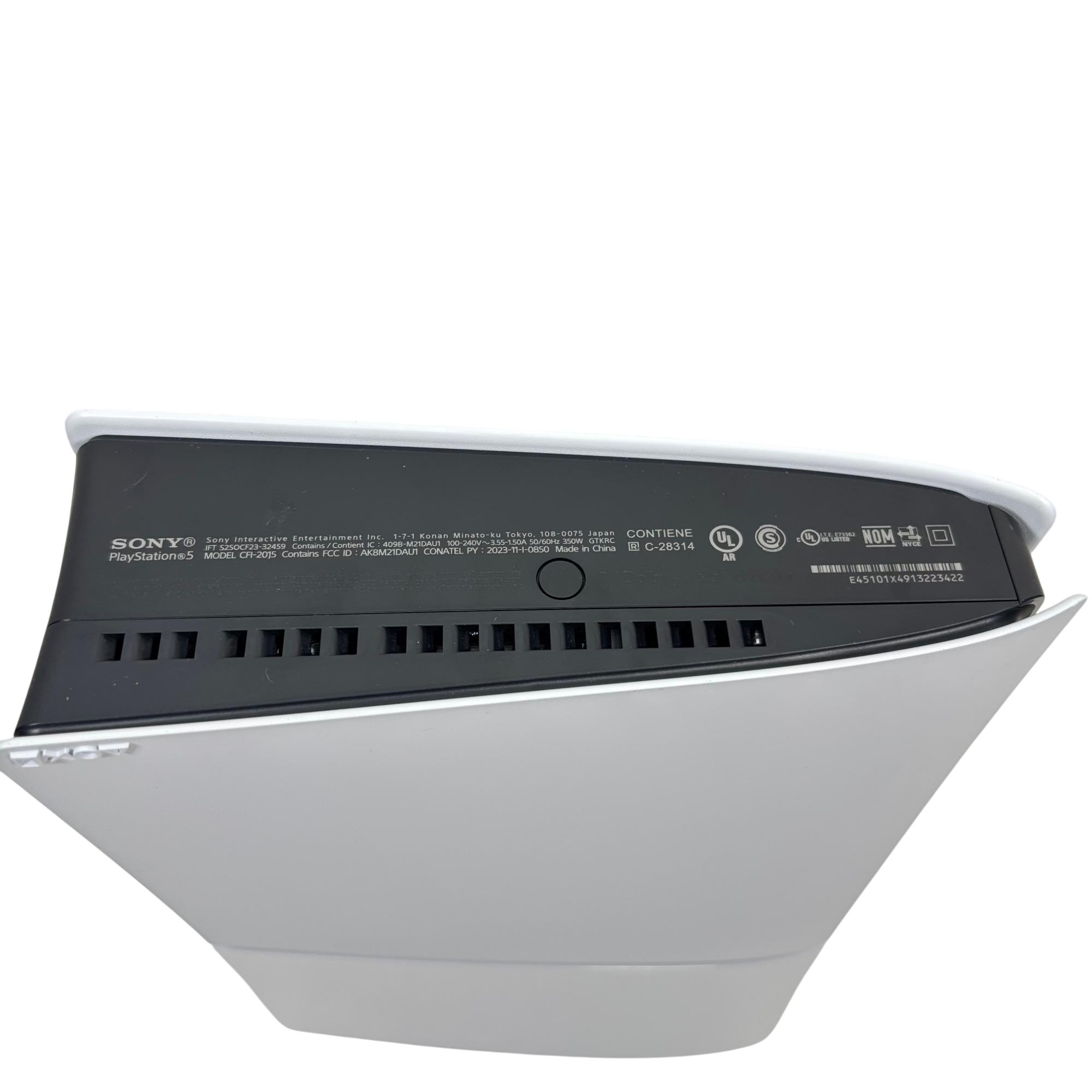 Sony PlayStation 5 Slim Digital Edition Console features a sleek black and white design with a compact slim profile optimized for vertical orientation. It offers multiple rear ports including HDMI, LAN, and USB connectors, ensuring seamless connectivity for high-definition gaming and online multiplayer experiences. This console delivers advanced performance tailored for immersive next-generation gaming with enhanced graphics and fast load times.