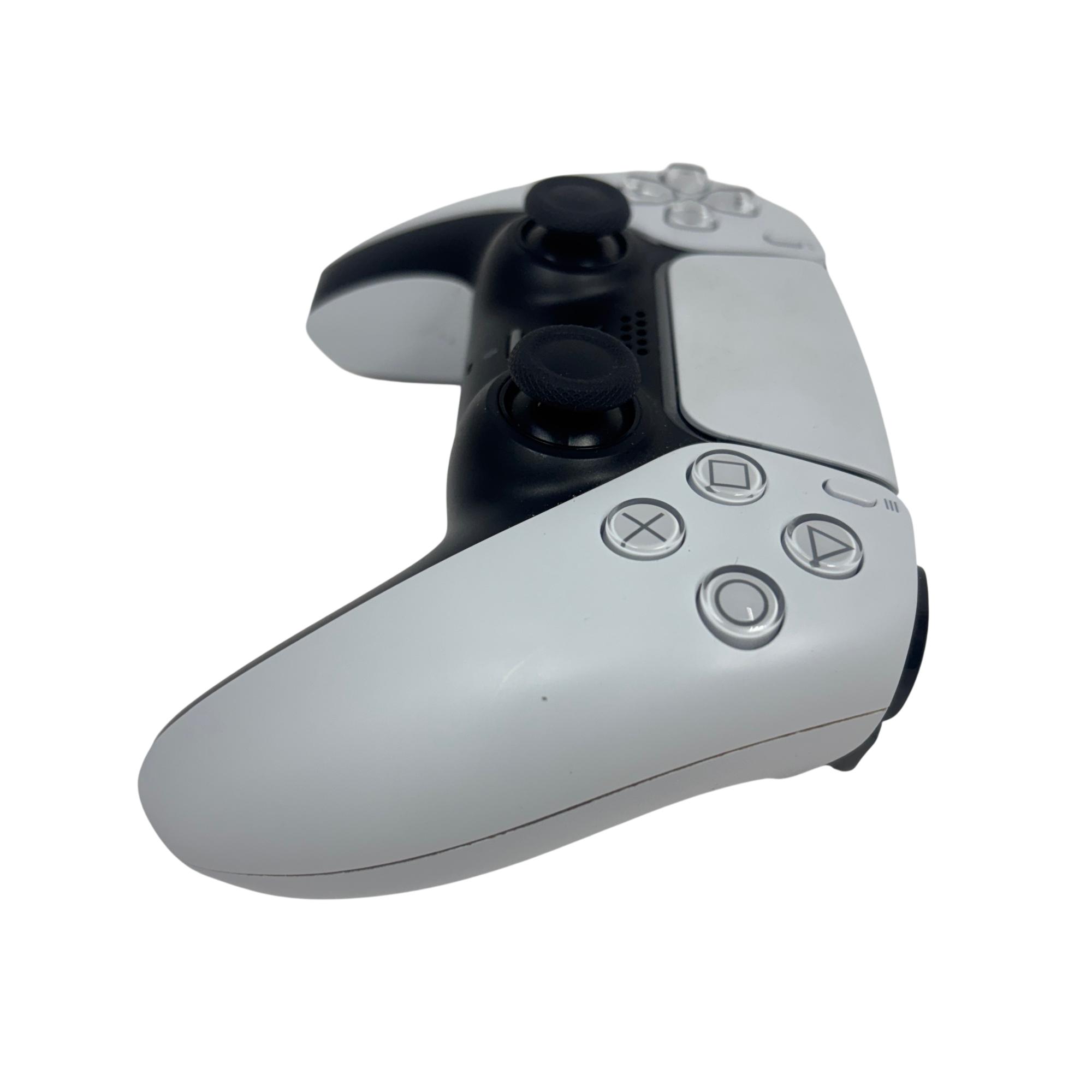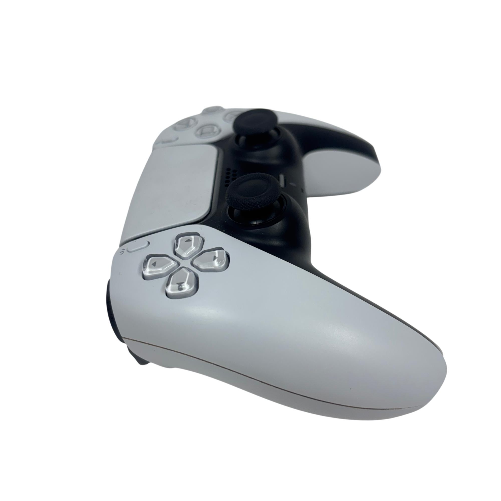 The Sony PlayStation 5 DualSense Wireless Controller offers advanced haptic feedback and adaptive triggers to deliver immersive gameplay experiences. Designed with ergonomic contours and a sleek white and black color scheme, this input device enhances control precision and comfort for extended gaming sessions.