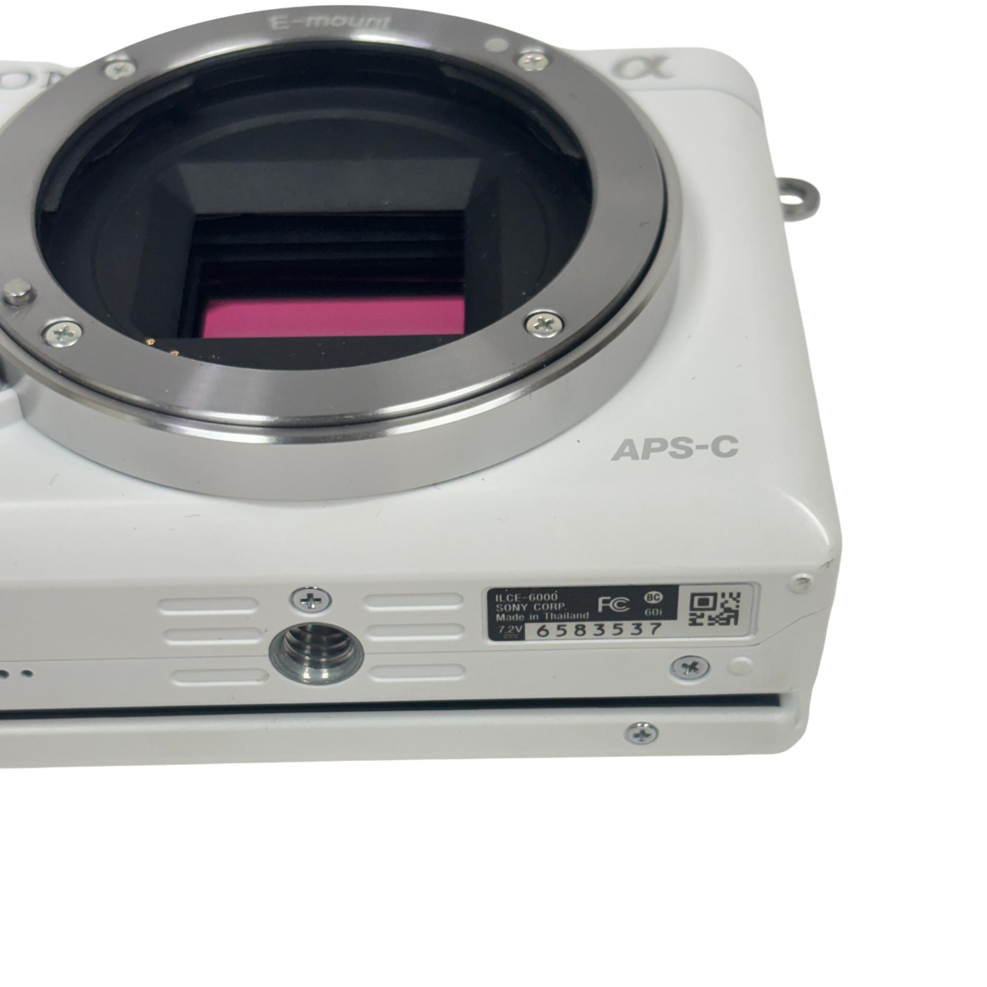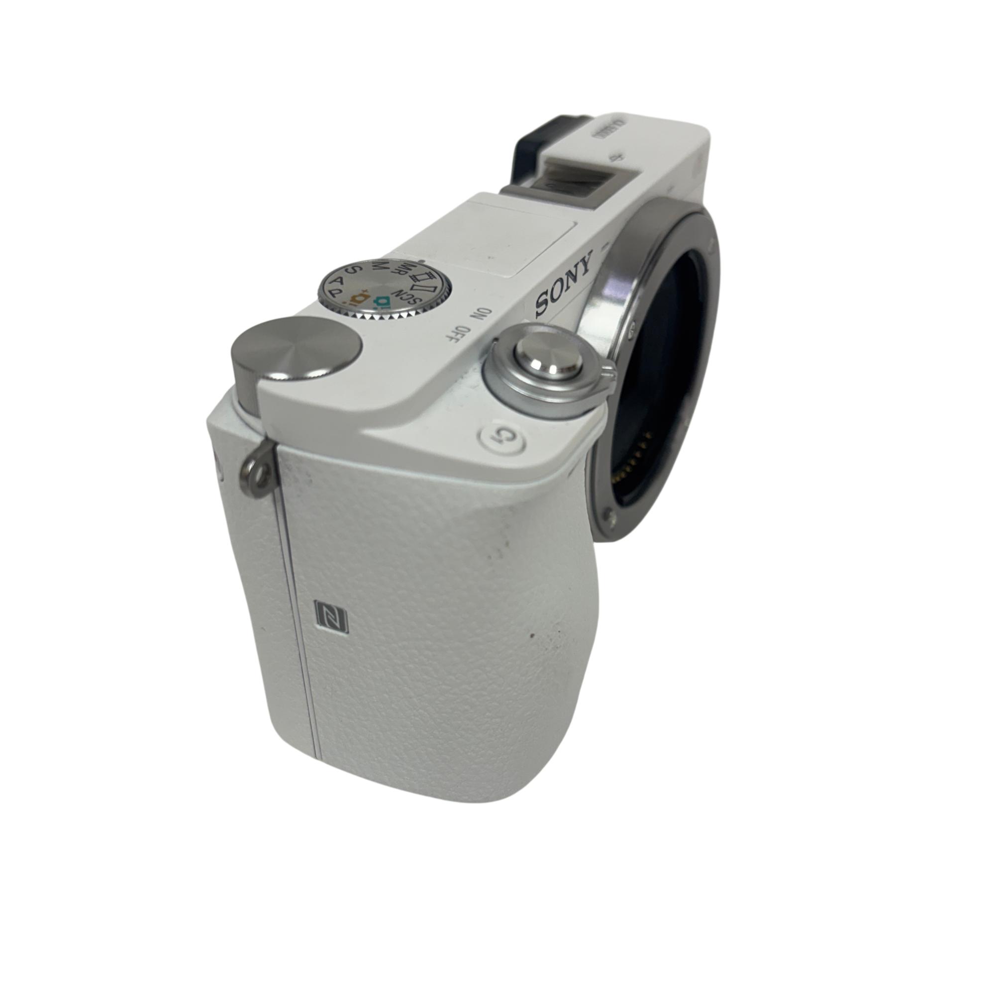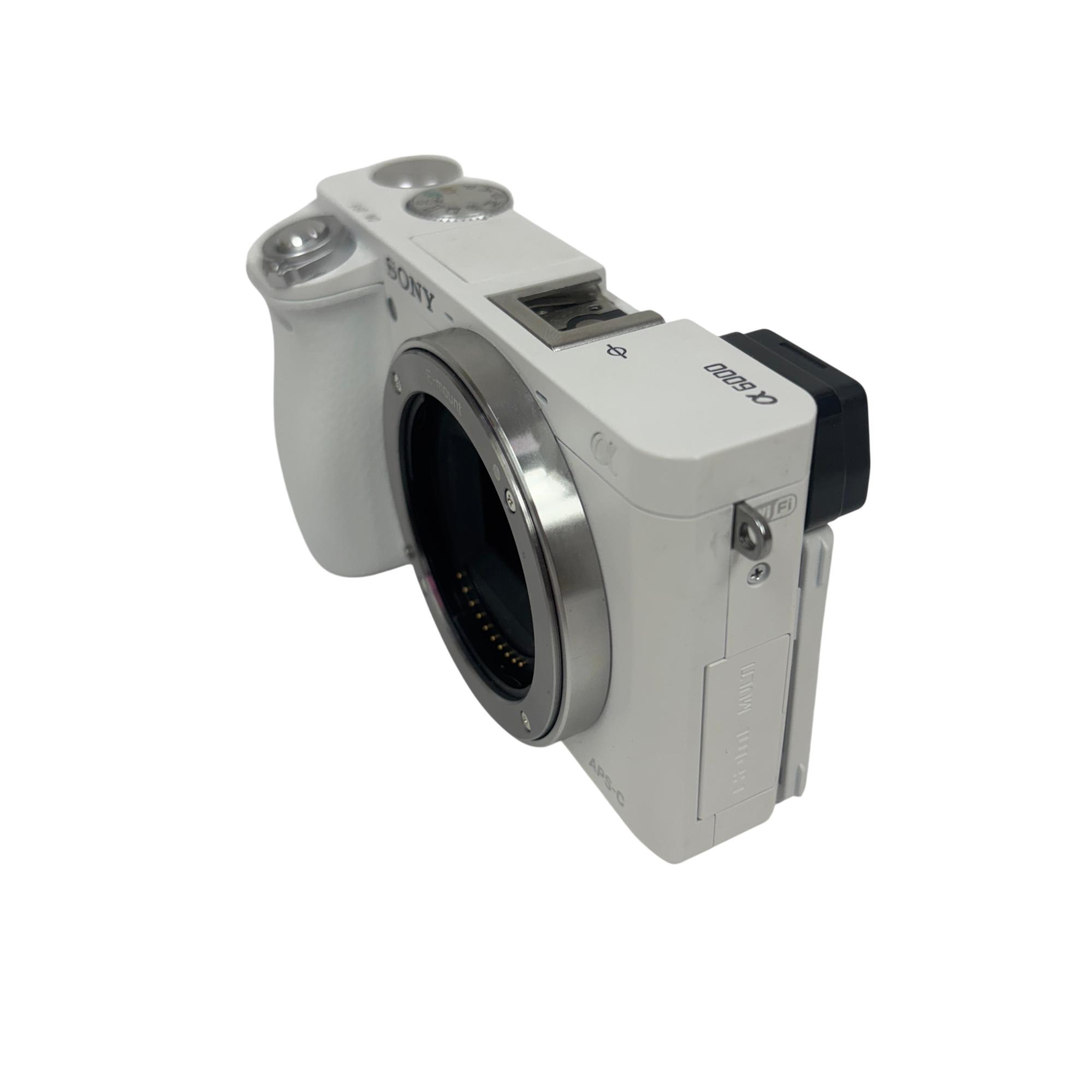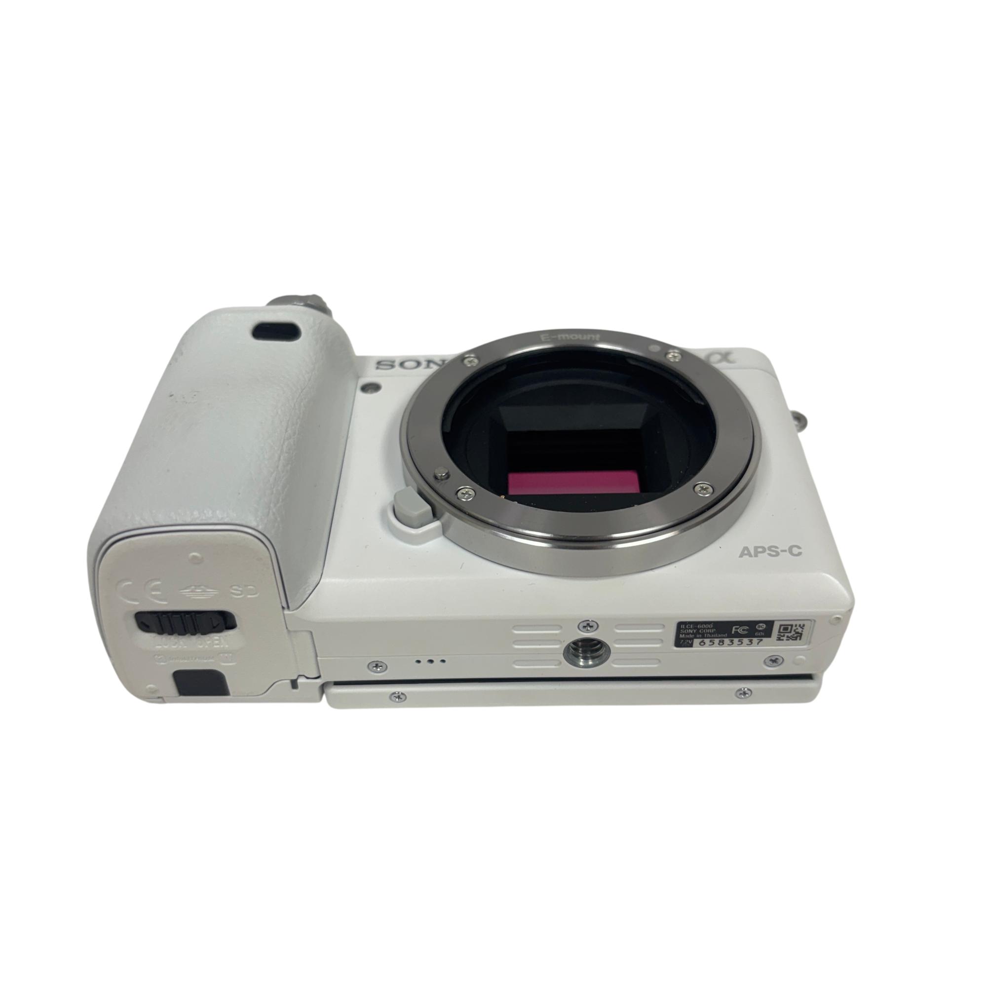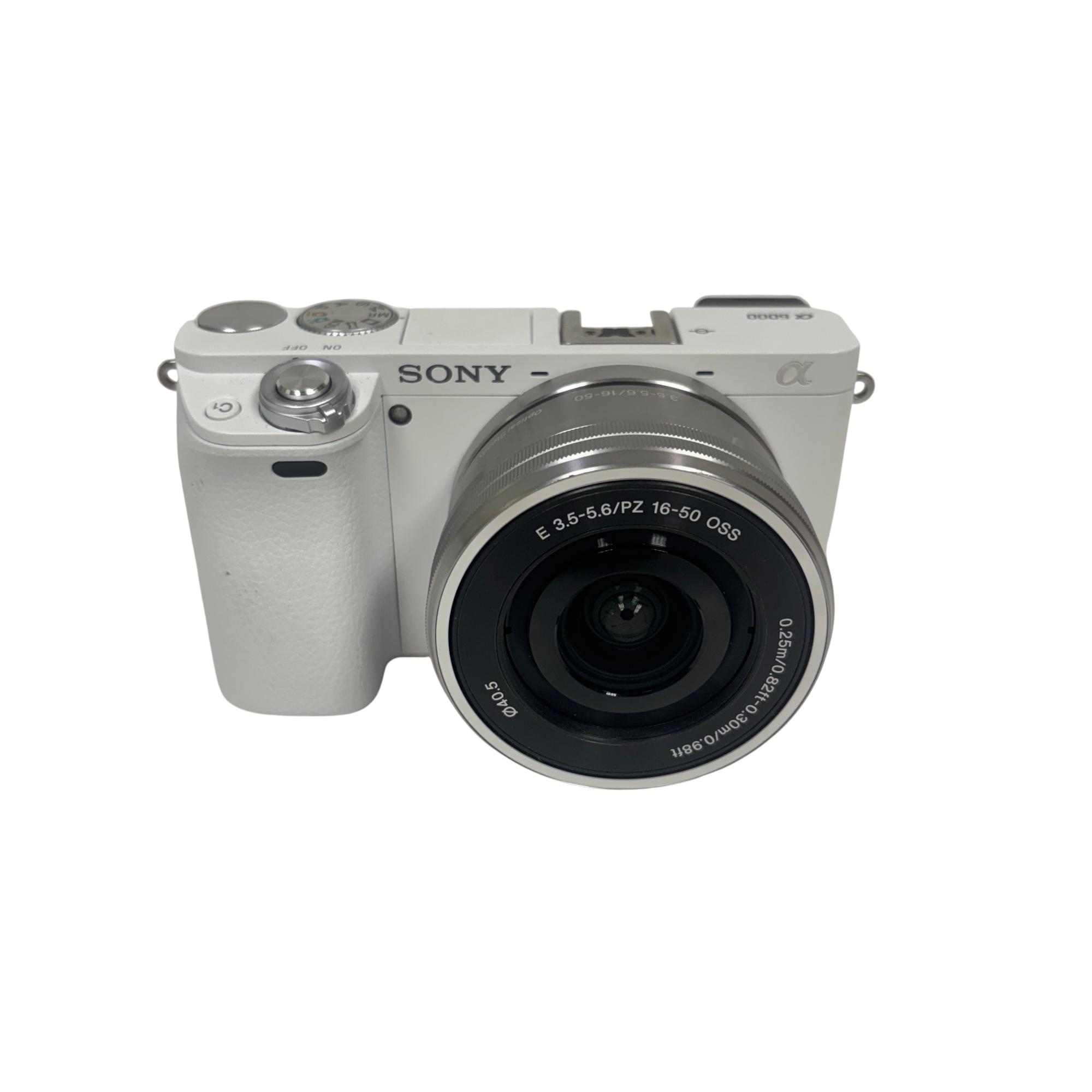 The Sony Alpha a6000 Mirrorless Digital Camera with 16-50mm Power Zoom Lens (White, Model ILCE-6000) features a compact mirrorless design with a 24.3MP APS-C sensor delivering high-resolution images with exceptional clarity. This versatile camera uses an E-mount system compatible with interchangeable lenses and includes a fast hybrid autofocus for sharp photos and smooth video performance in various shooting conditions.