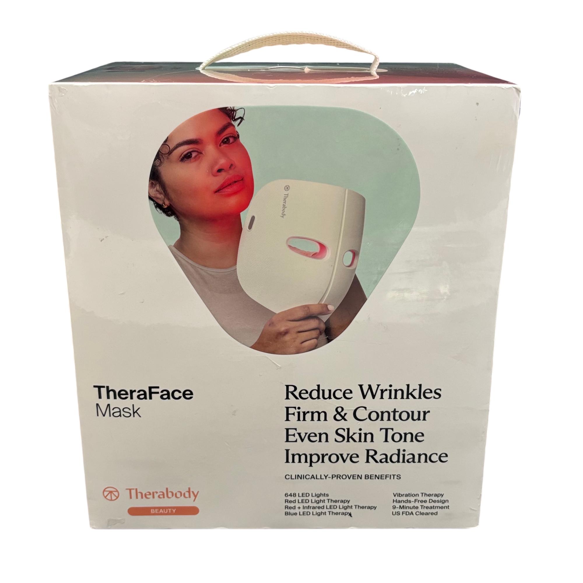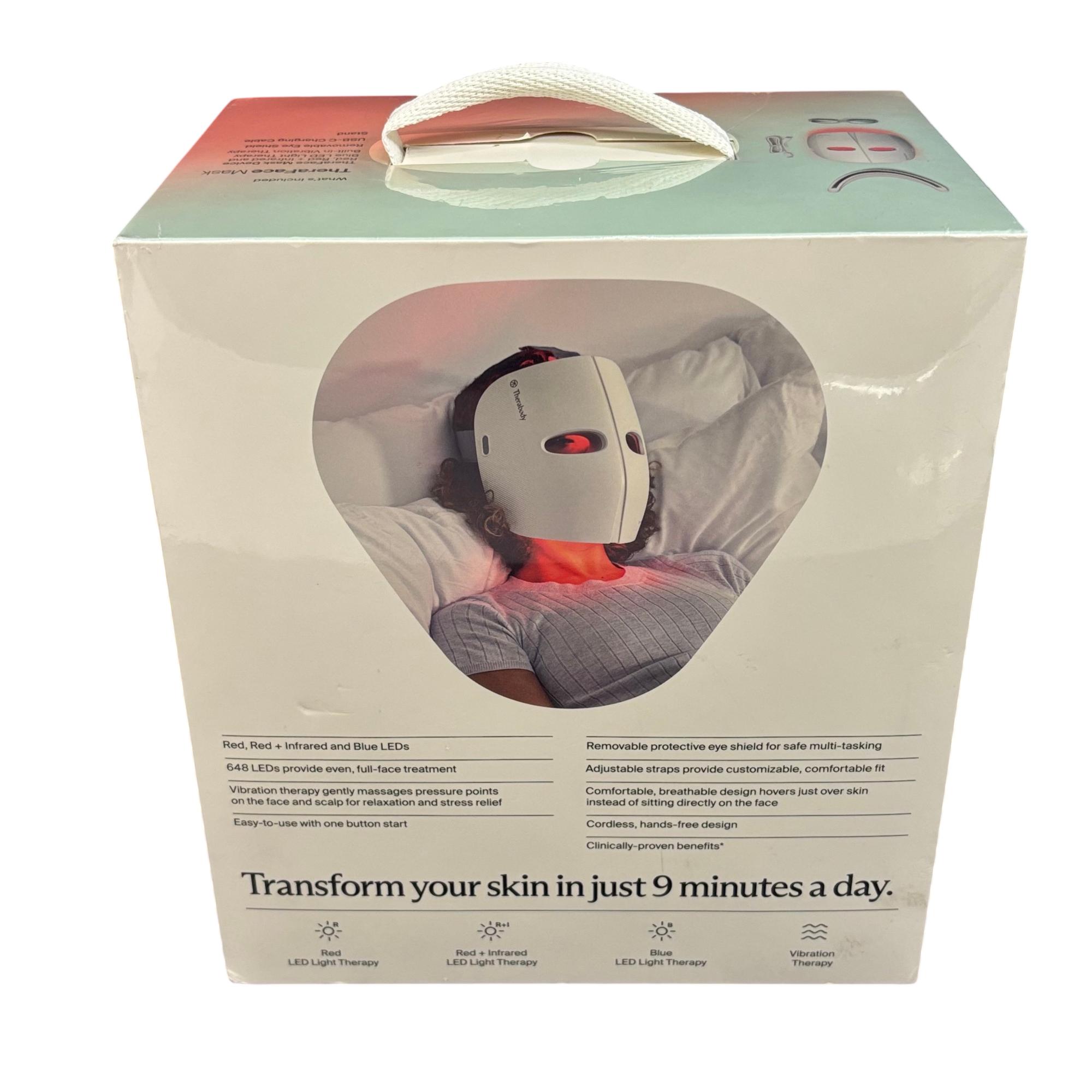 Therabody TheraFace Mask — LED Light Therapy Device with Vibration Therapy offers advanced skincare technology featuring 648 LEDs that deliver red, red plus infrared, and blue light treatments to reduce wrinkles, firm skin, and improve radiance. The mask includes built-in vibration therapy to gently massage pressure points, providing relaxation and enhancing the overall effectiveness of the multi-light therapy. Designed with adjustable straps and a breathable, hands-free fit, it hovers comfortably over the face and scalp for a customizable and soothing skincare experience.