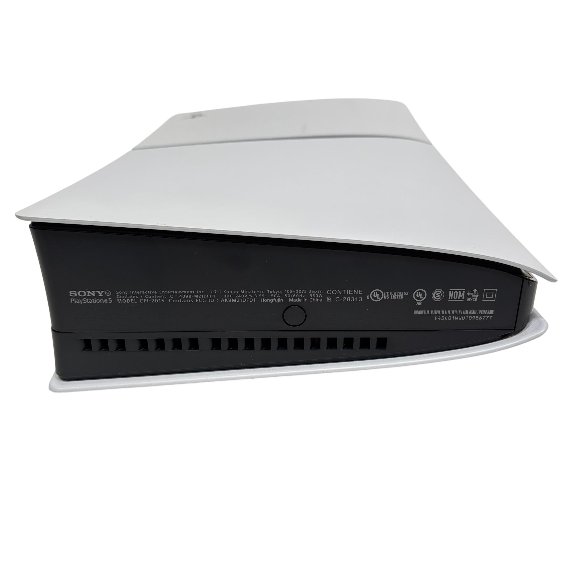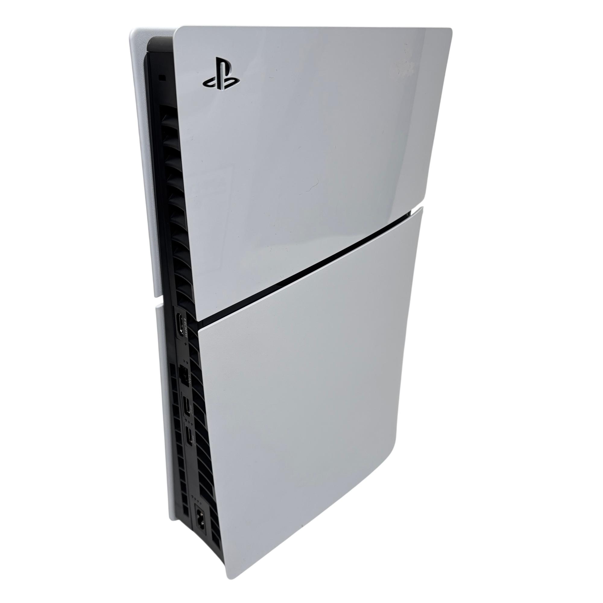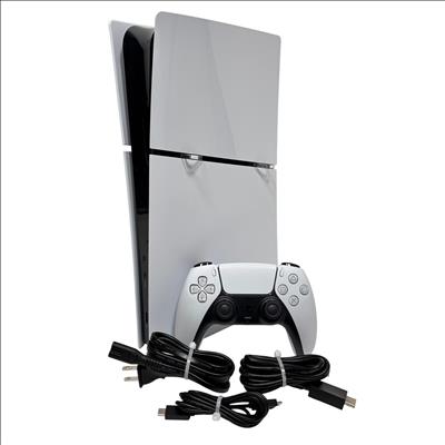 Sony PlayStation 5 Slim Digital Edition is previously owned. System is in good condition with some scuffs and marks. See photos for details.