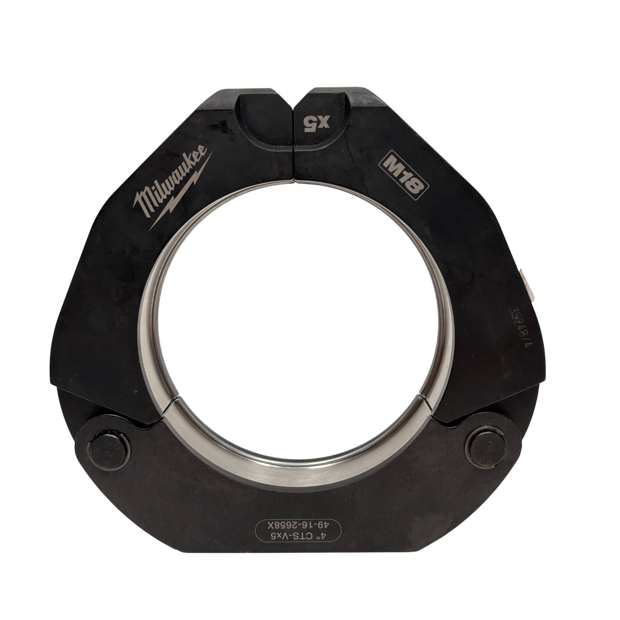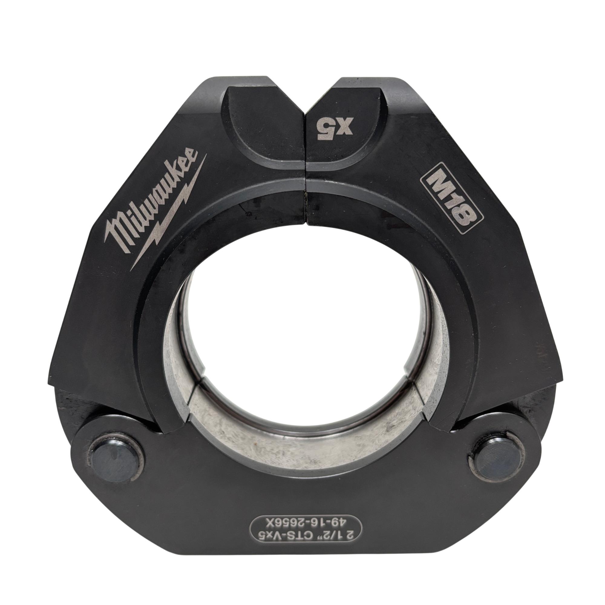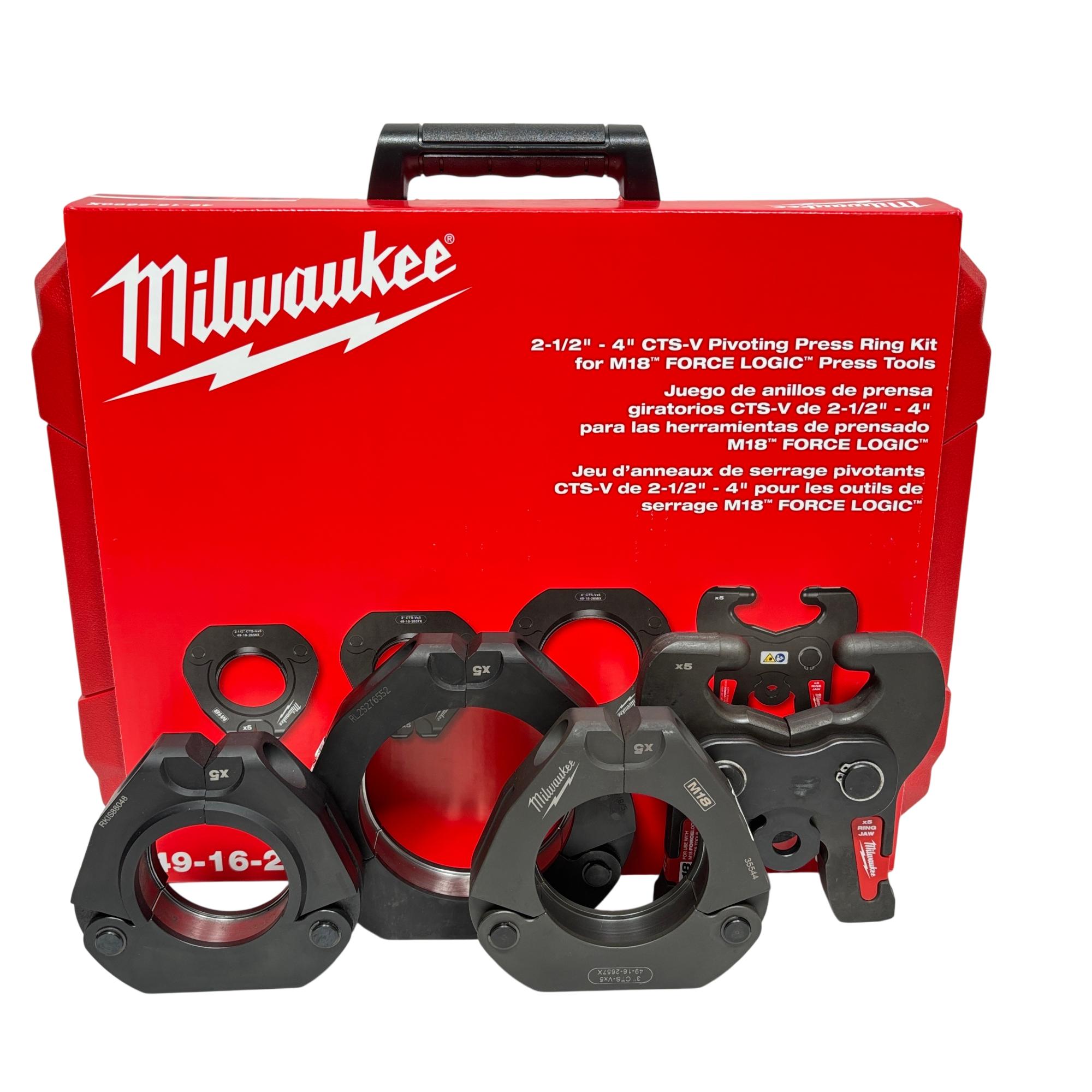 Milwaukee 49-16-2690X 2-1/2" - 4" CTS-V Pivoting Press Ring Kit for M18 FORCE LOGIC Press Tools offers a set of precision-engineered pivoting press rings designed to work seamlessly with M18 FORCE LOGIC pressing tools. These durable black metal rings enhance pressing capabilities by providing consistent, reliable performance for pipe sizes ranging from 2-1/2 to 4 inches, making them ideal for professional plumbing and mechanical applications.