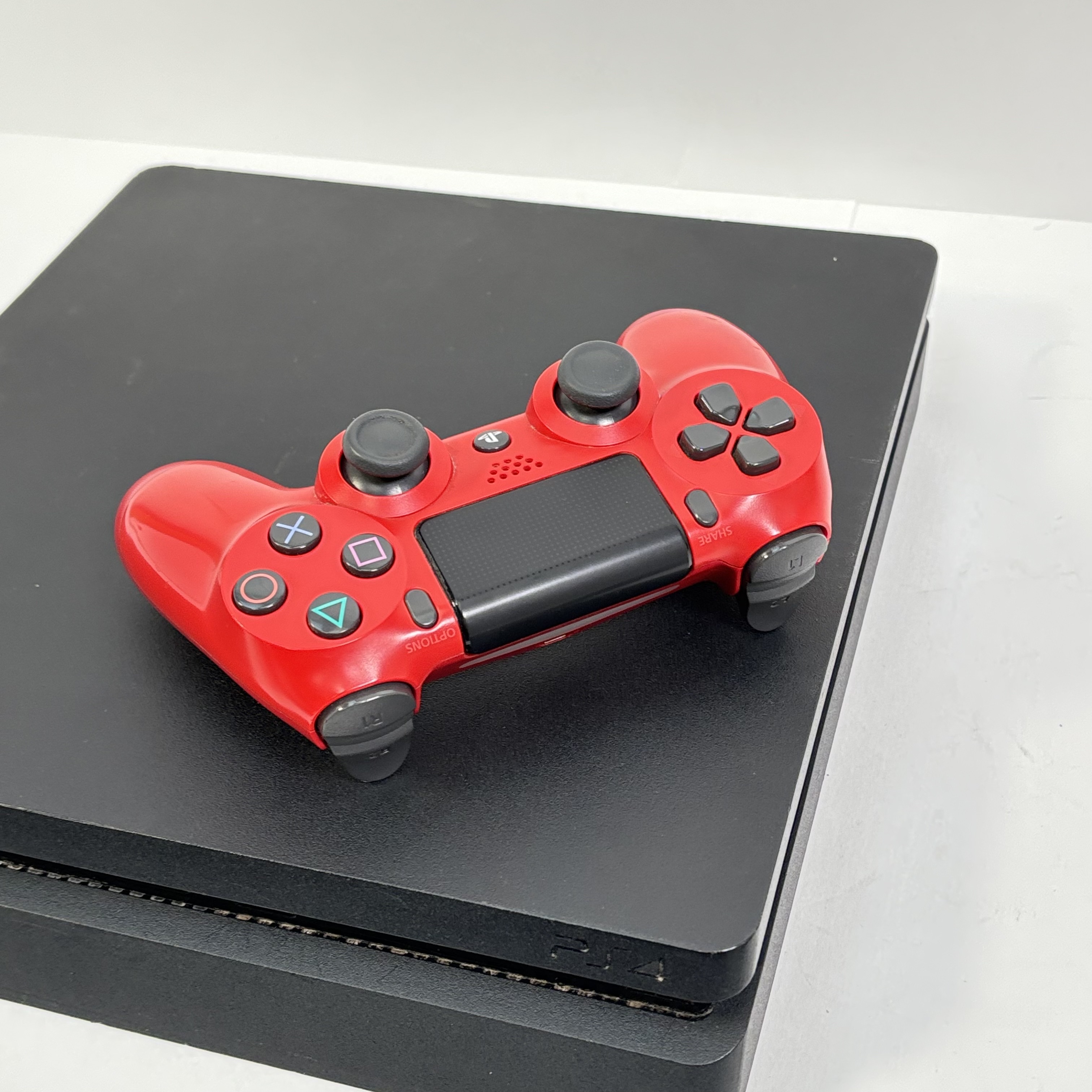 Sony PlayStation 4 Slim 1TB Console (CUH-2215B) features a sleek, compact design that delivers a powerful gaming experience with its spacious 1TB storage capacity. The console pairs seamlessly with a vibrant red DualShock 4 controller, offering precise controls and an ergonomic grip for extended gameplay. Designed for enhanced performance and connectivity, this system supports a wide range of popular games and multimedia applications.